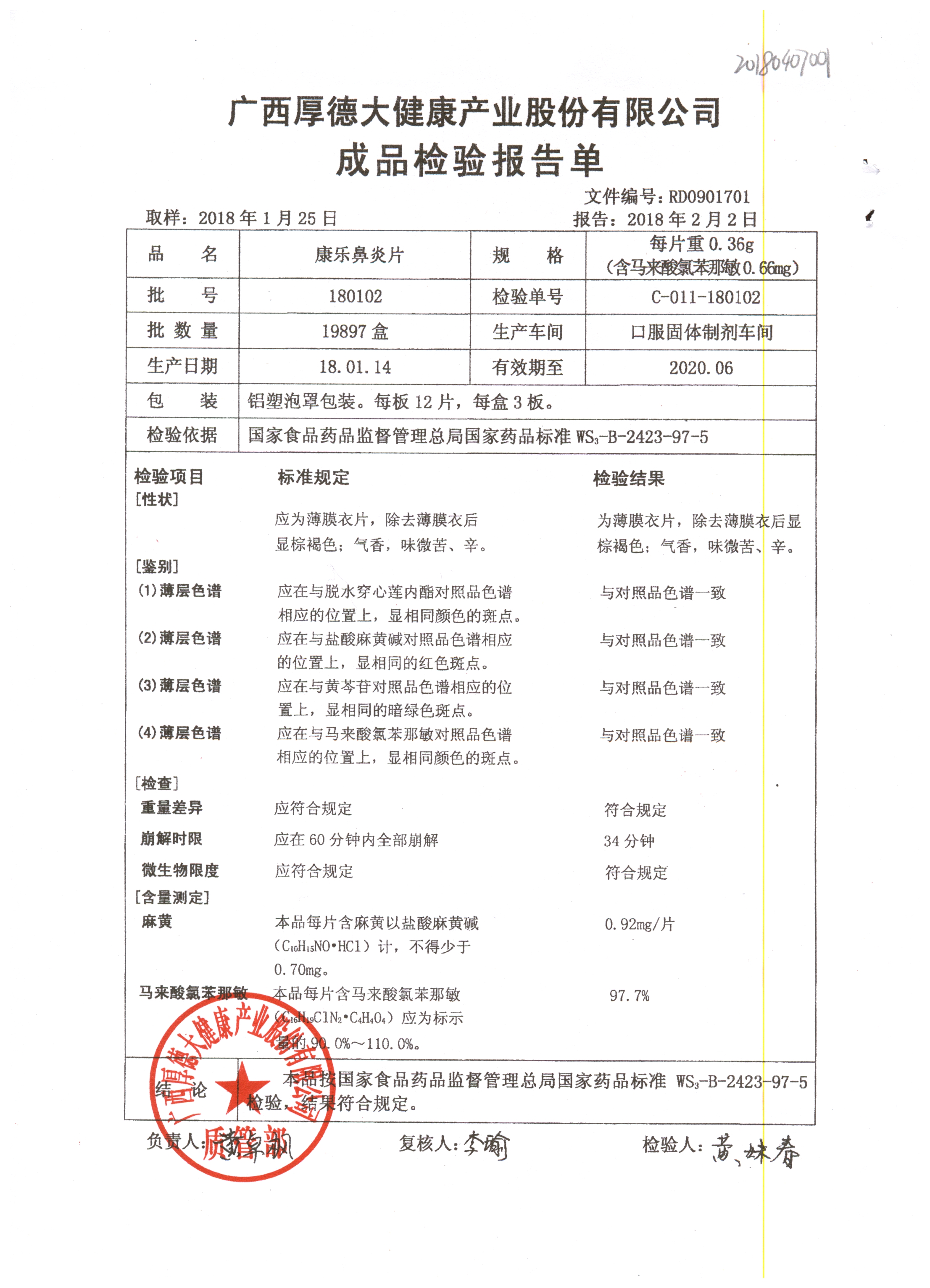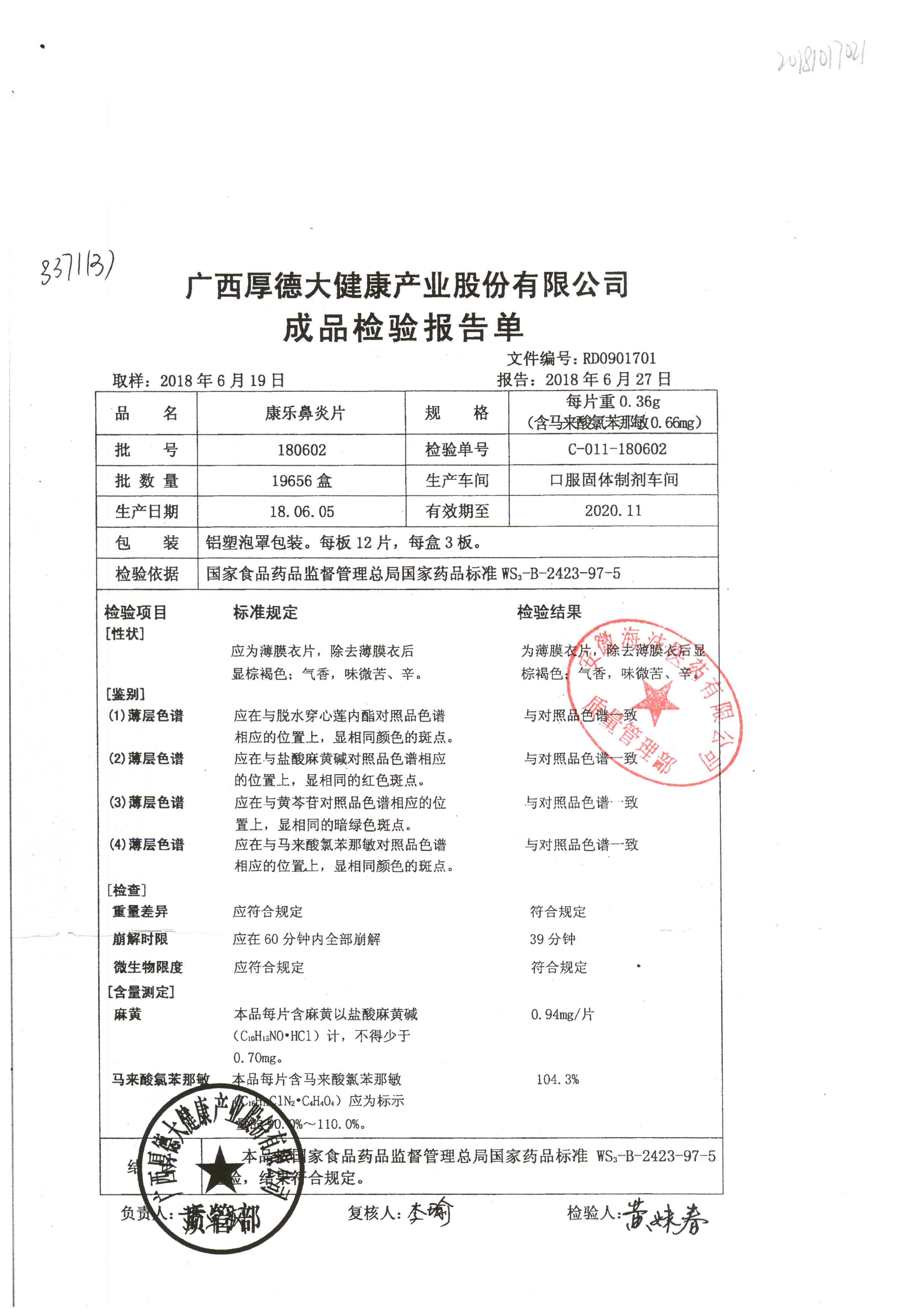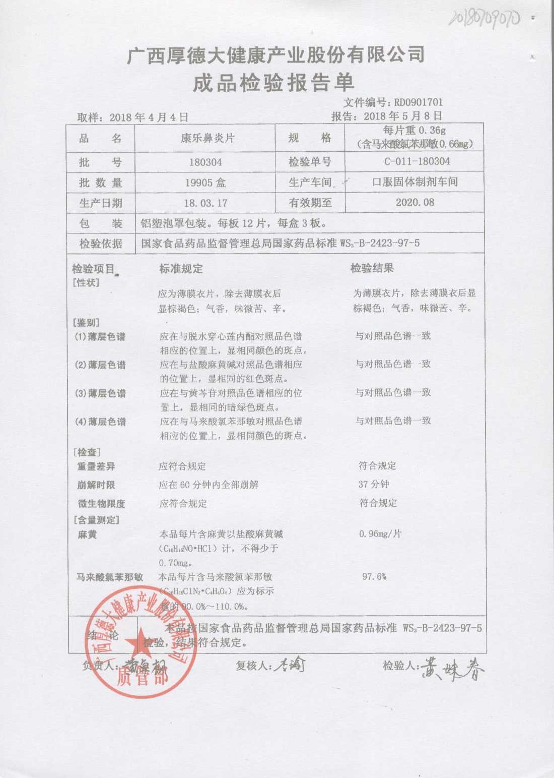 | 名稱 | 規(guī)格 | 批號 | 藥檢報告 |