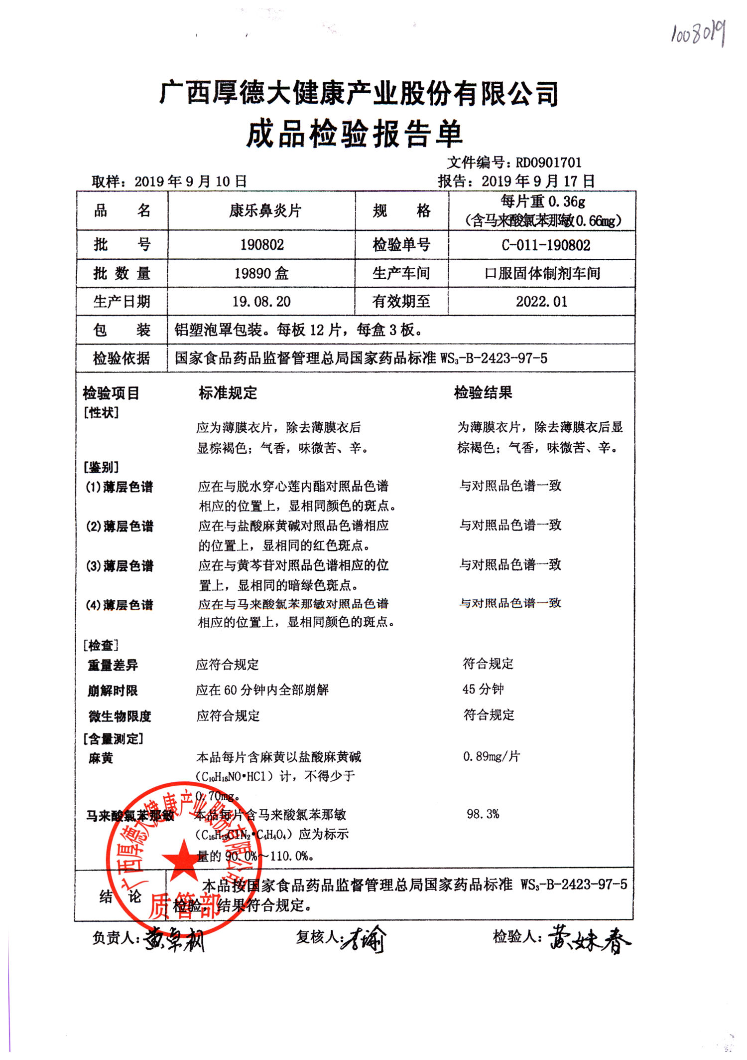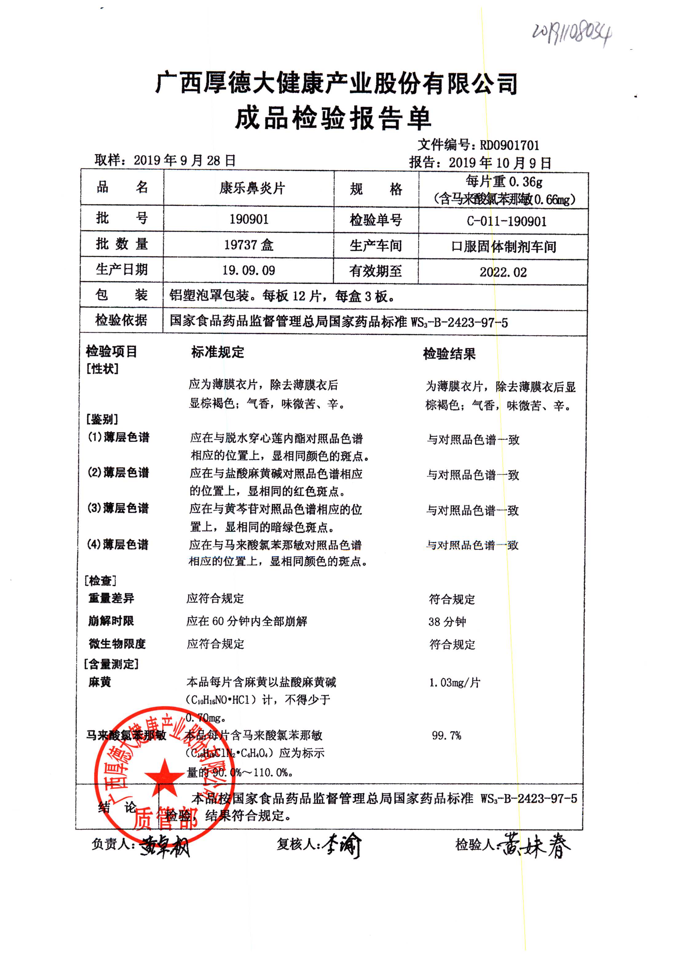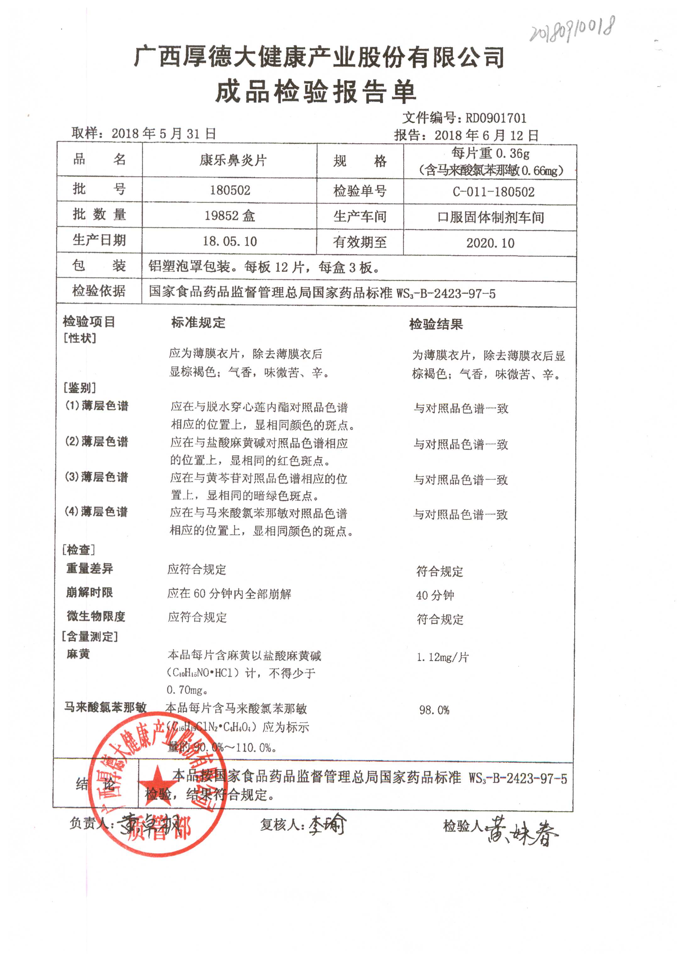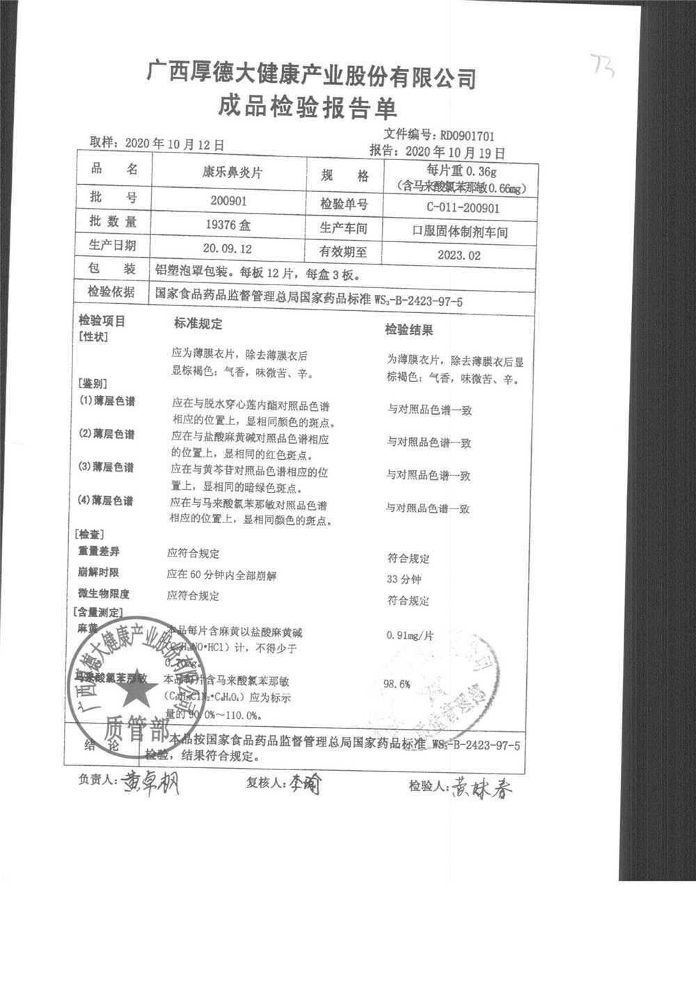 | 名稱 | 規(guī)格 | 批號 | 藥檢報告 |