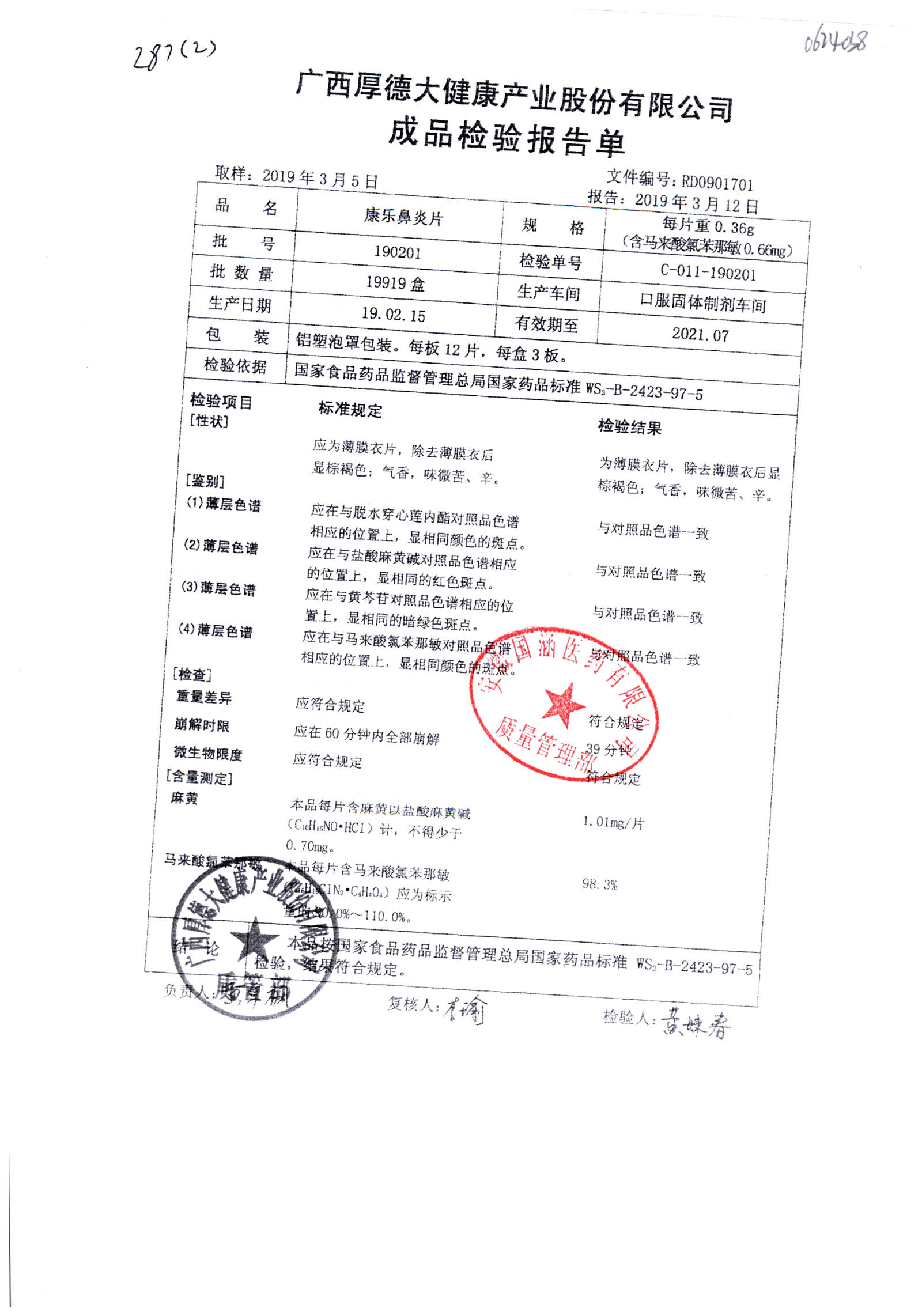 | 康樂鼻炎片 | 0.36g*36粒 | 190201 | 查看詳情 |