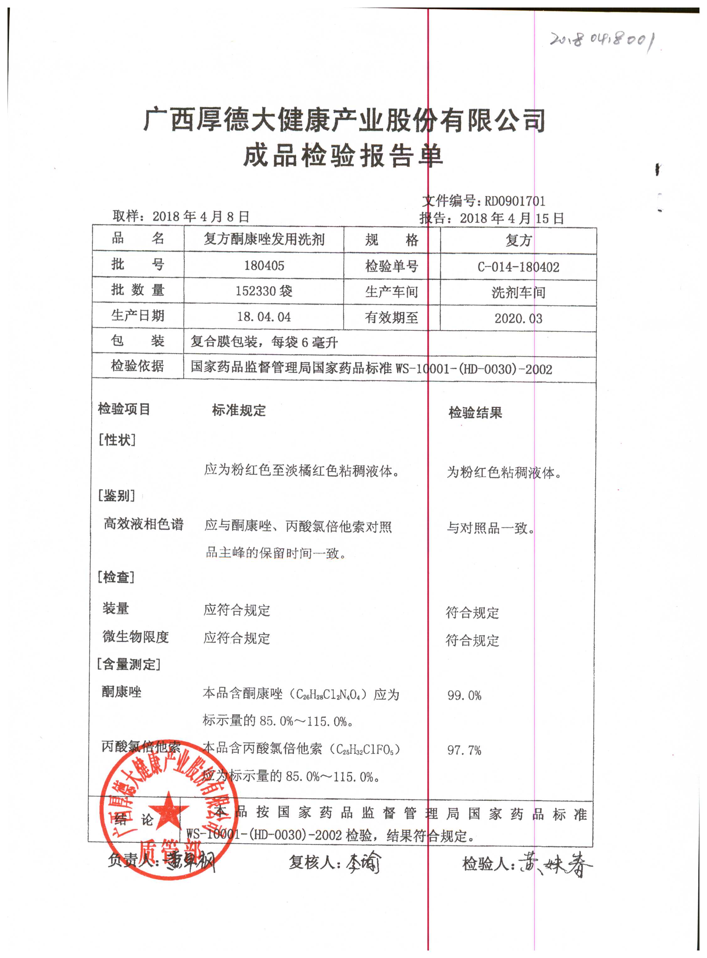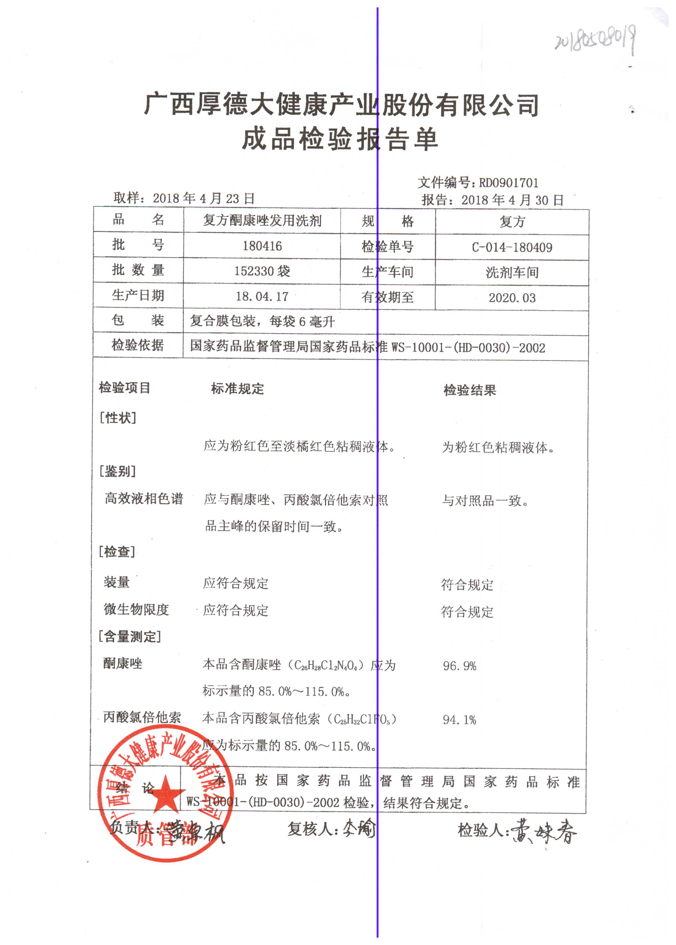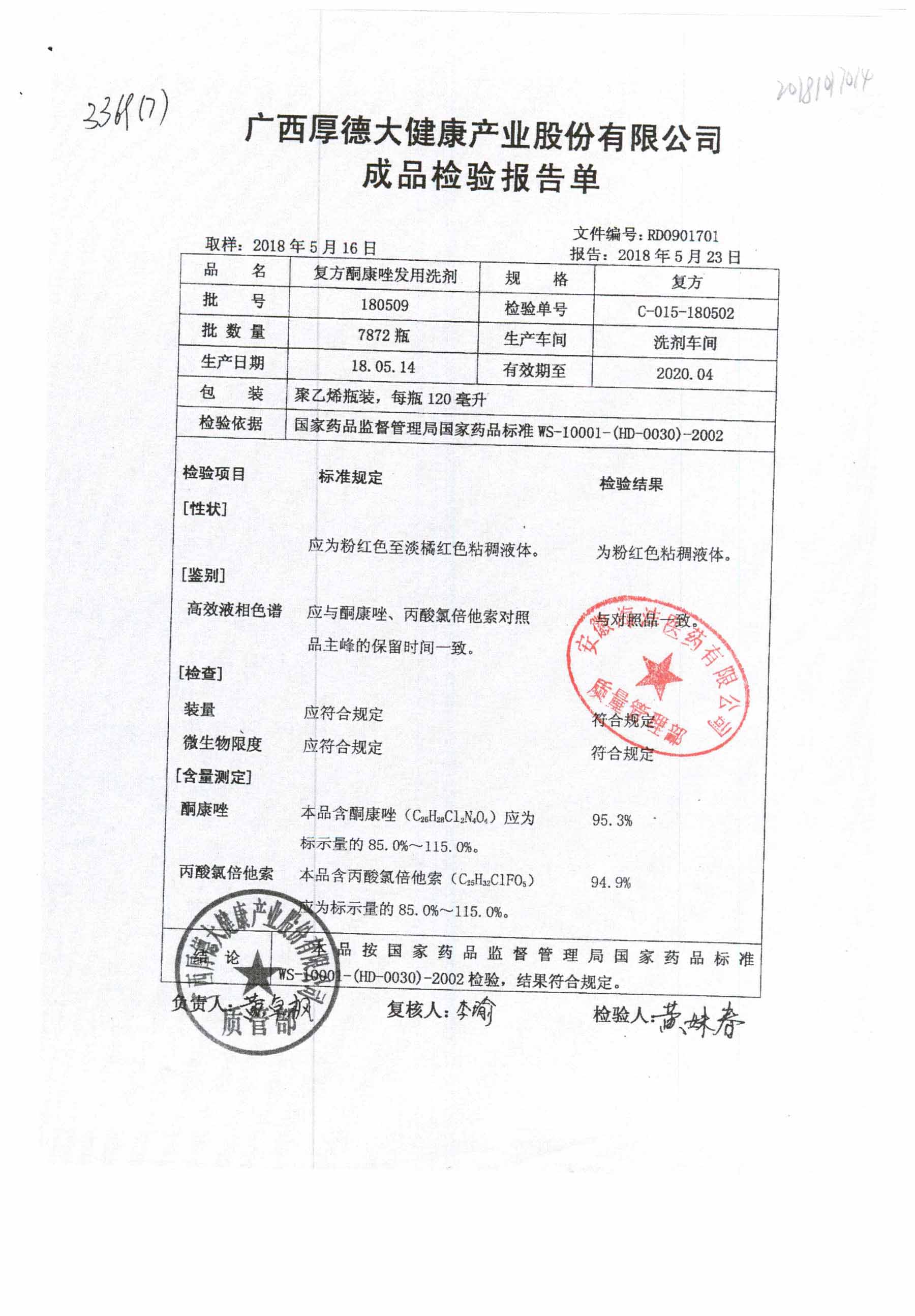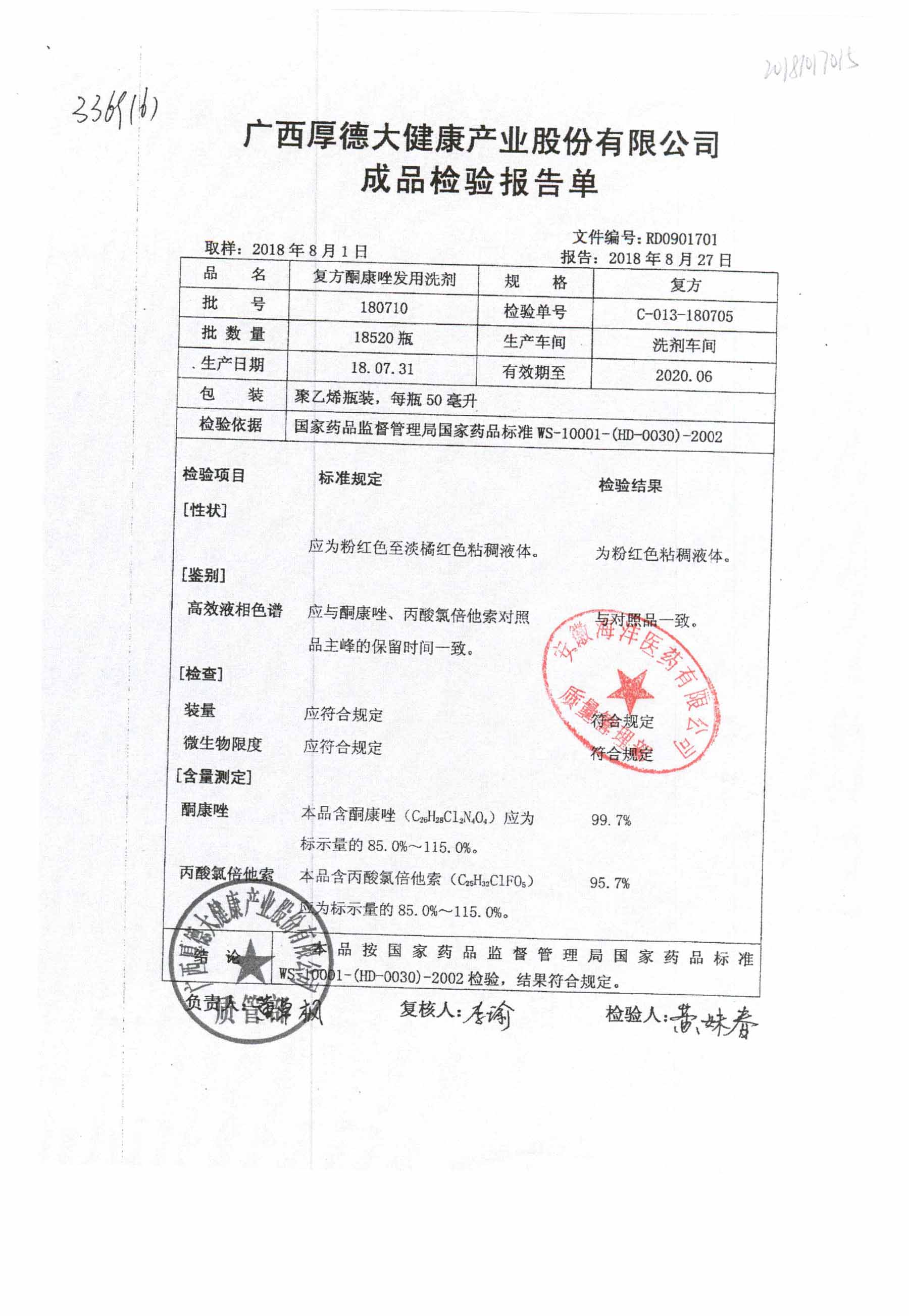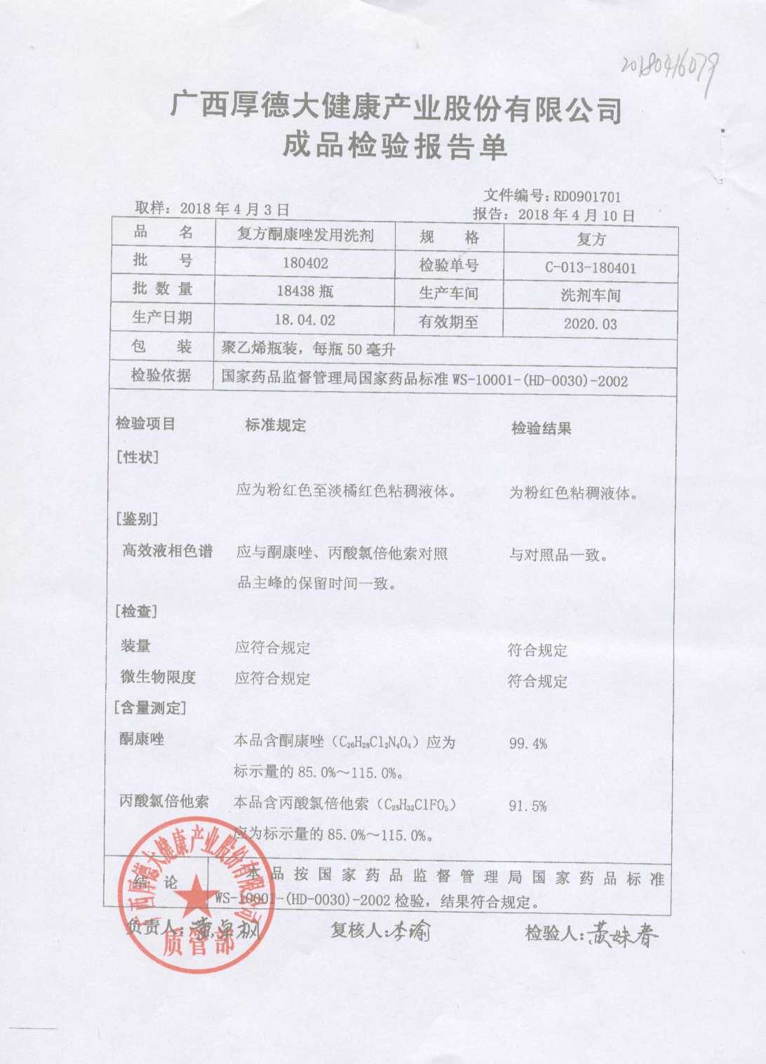 | 復(fù)方酮康唑發(fā)用洗劑 | 復(fù)方 | 180405 | 查看詳情 |
