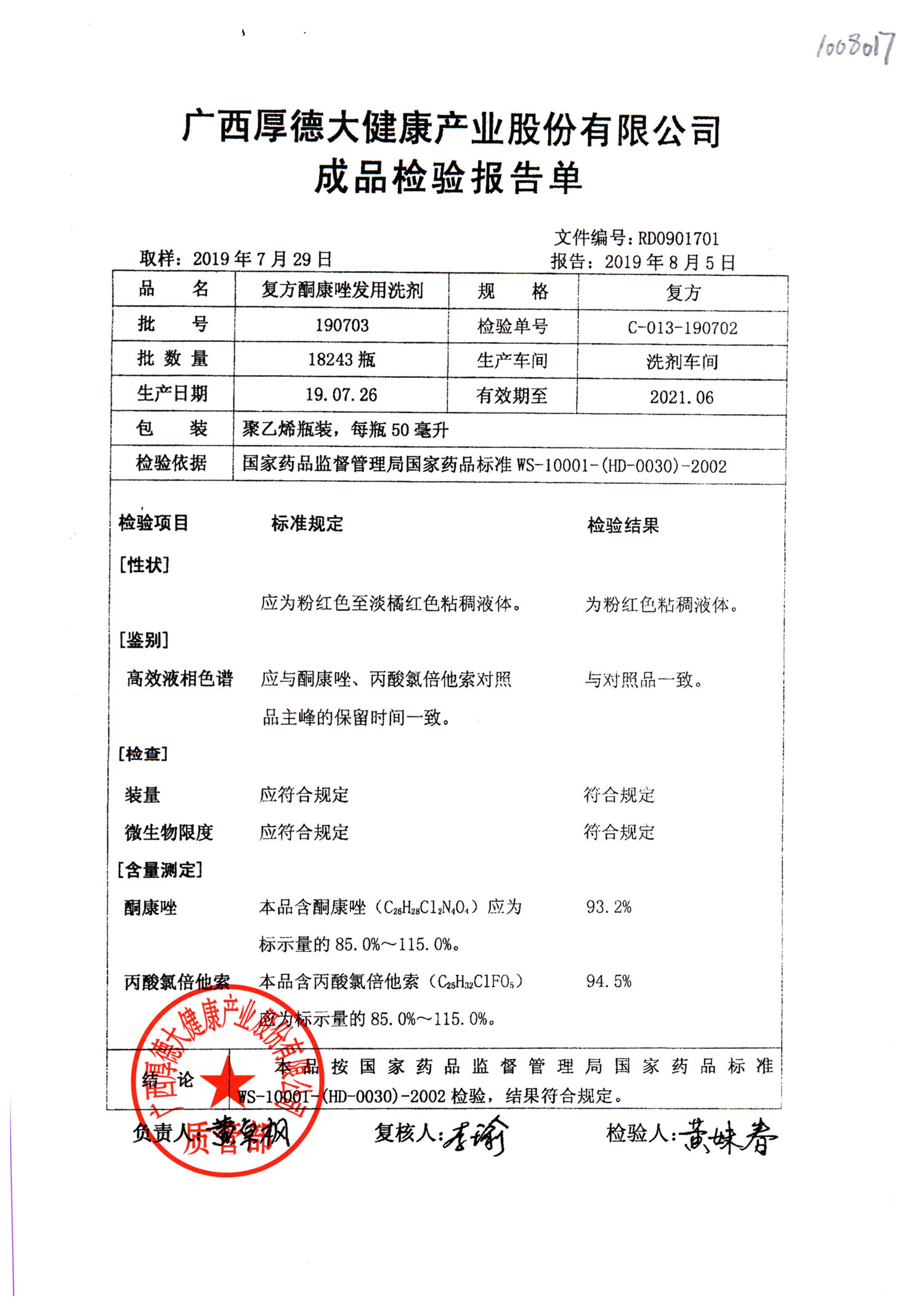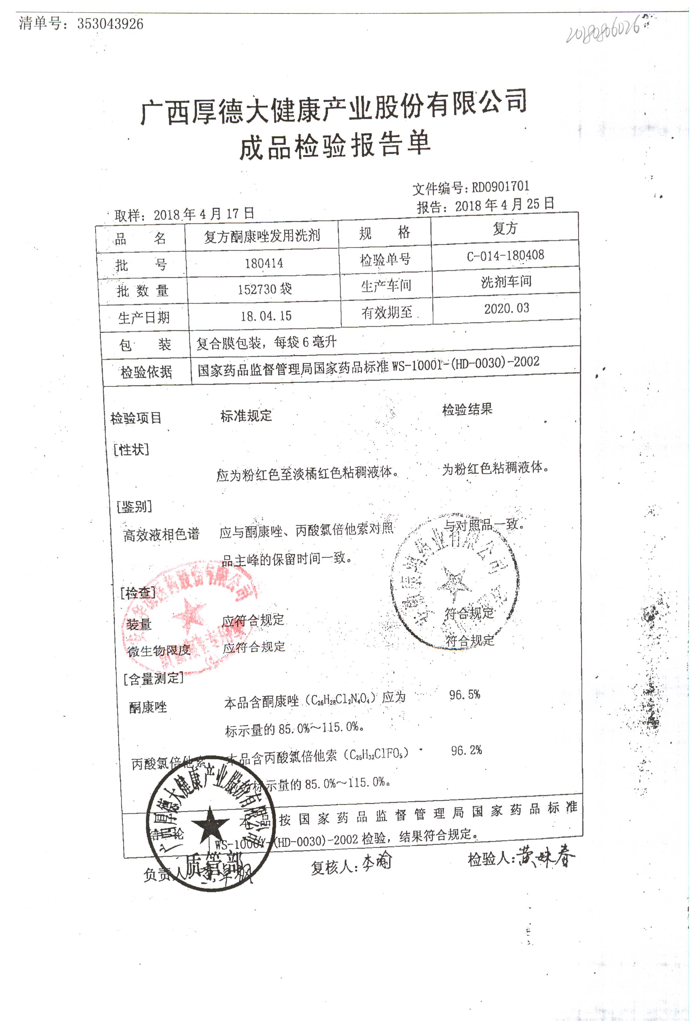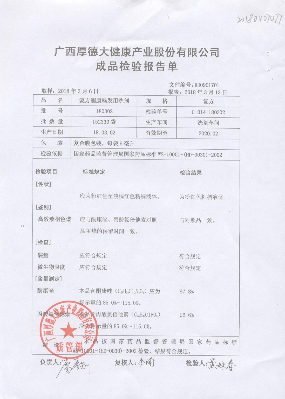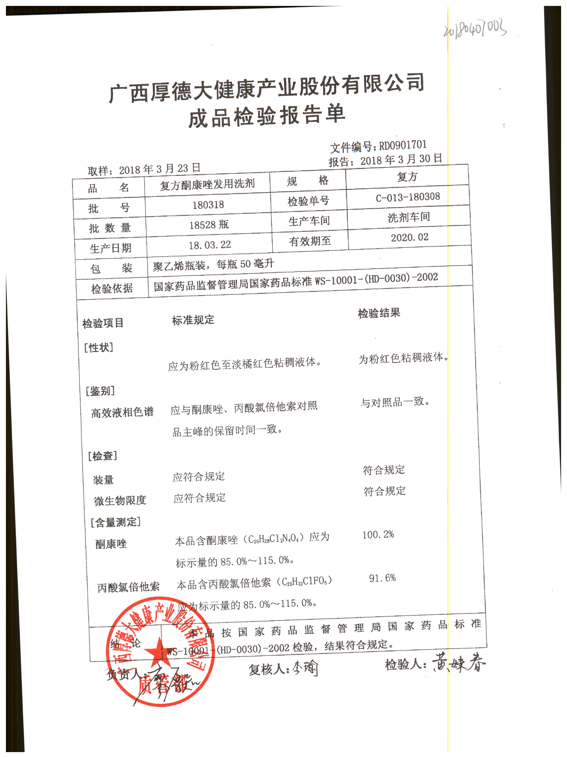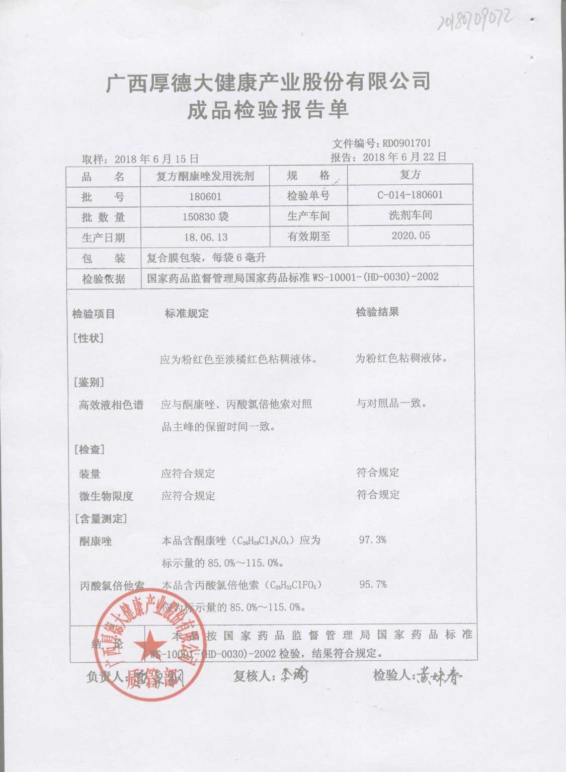 | 復(fù)方酮康唑發(fā)用洗劑 | 復(fù)方 | 180601 | 查看詳情 |