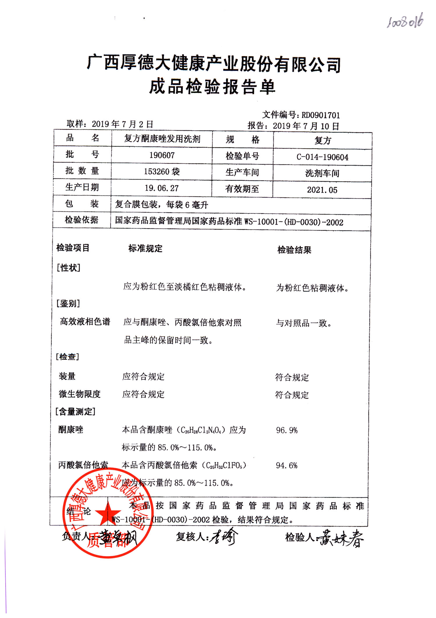 | 復(fù)方酮康唑發(fā)用洗劑 | 復(fù)方 | 190703 | 查看詳情 |