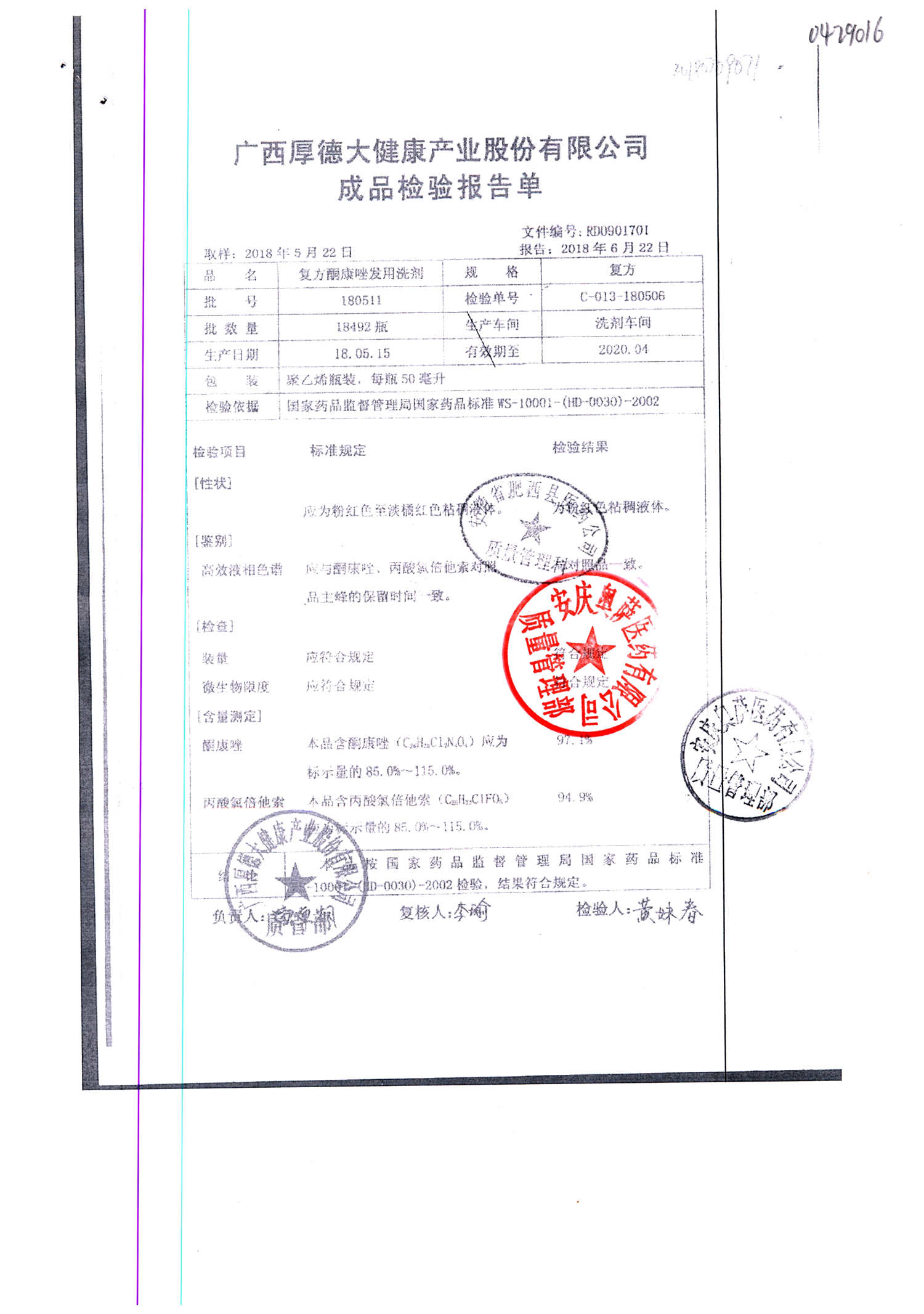| 復(fù)方酮康唑發(fā)用洗劑 | 復(fù)方 | 180511 | 查看詳情 |