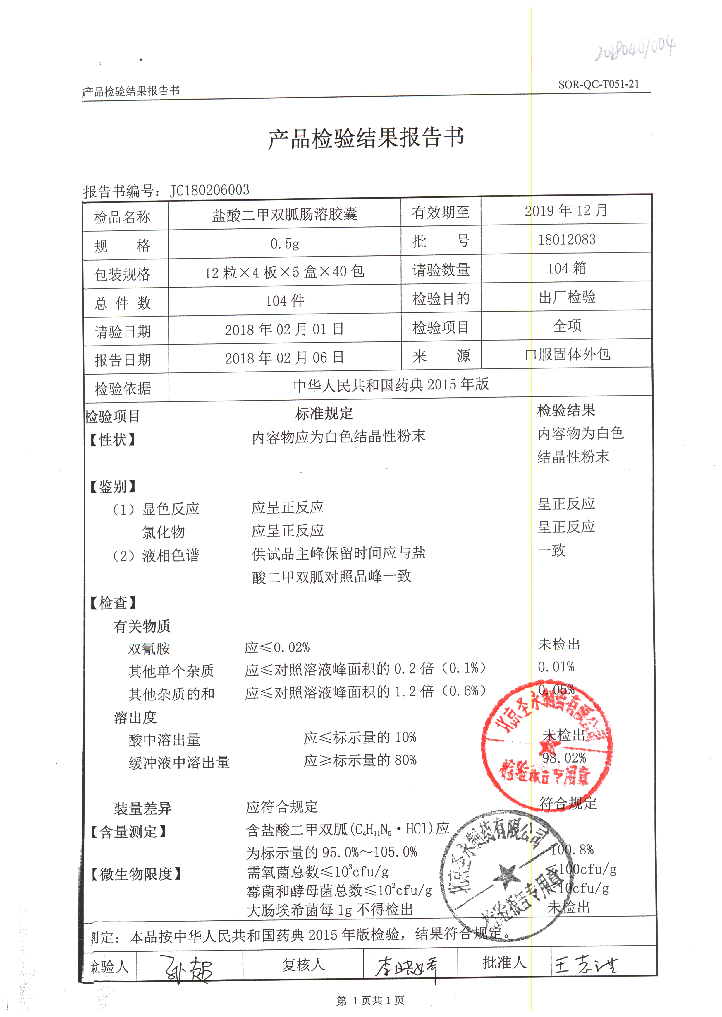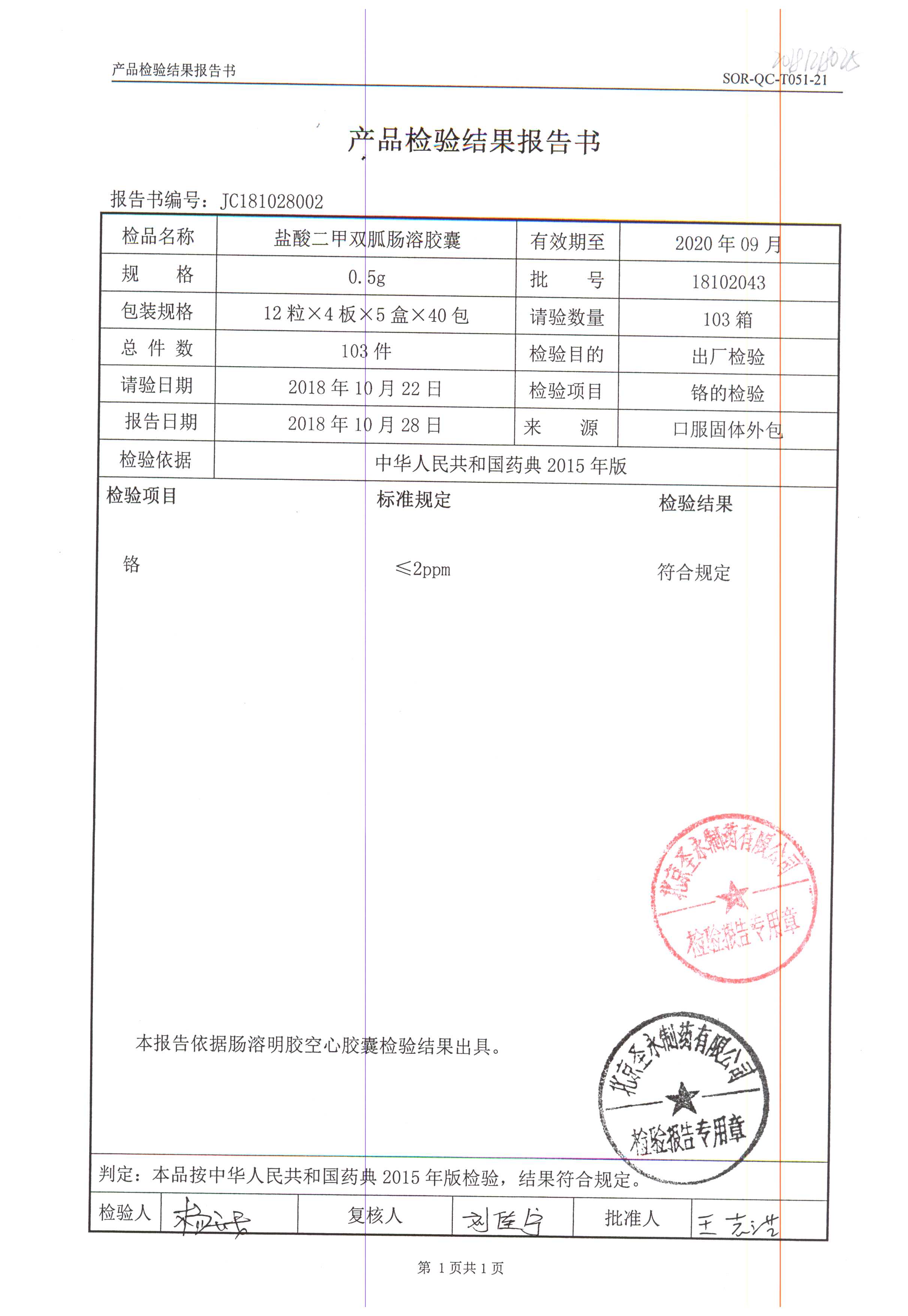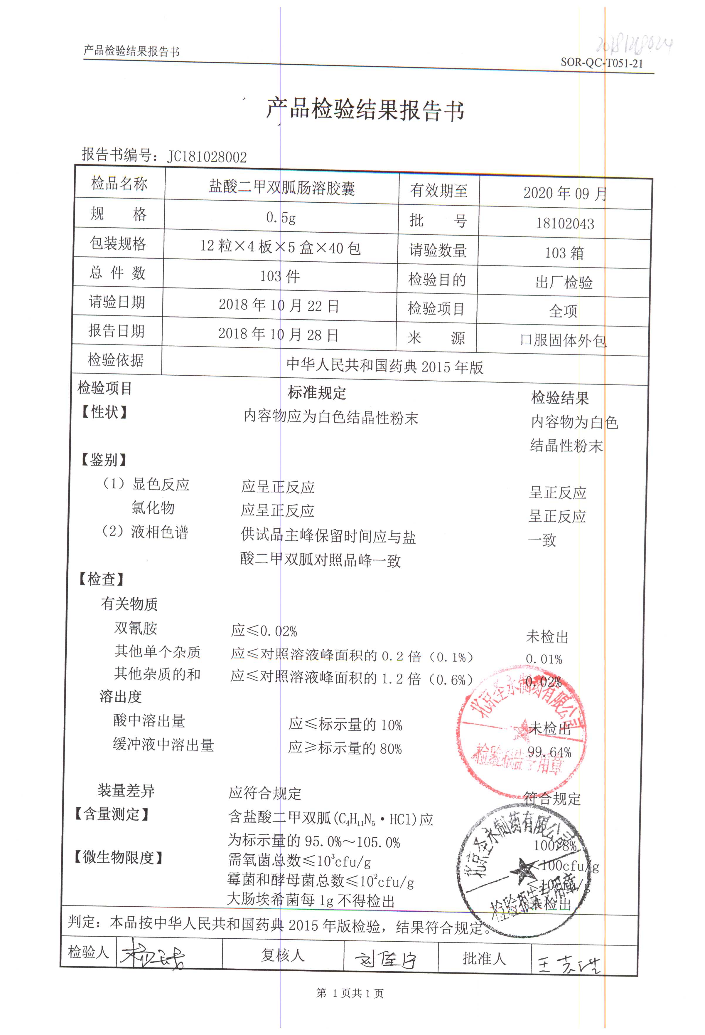 | 鹽酸二甲雙胍腸溶膠囊 | 0.5g*48粒 | 18102043(1/2) | 查看詳情 |