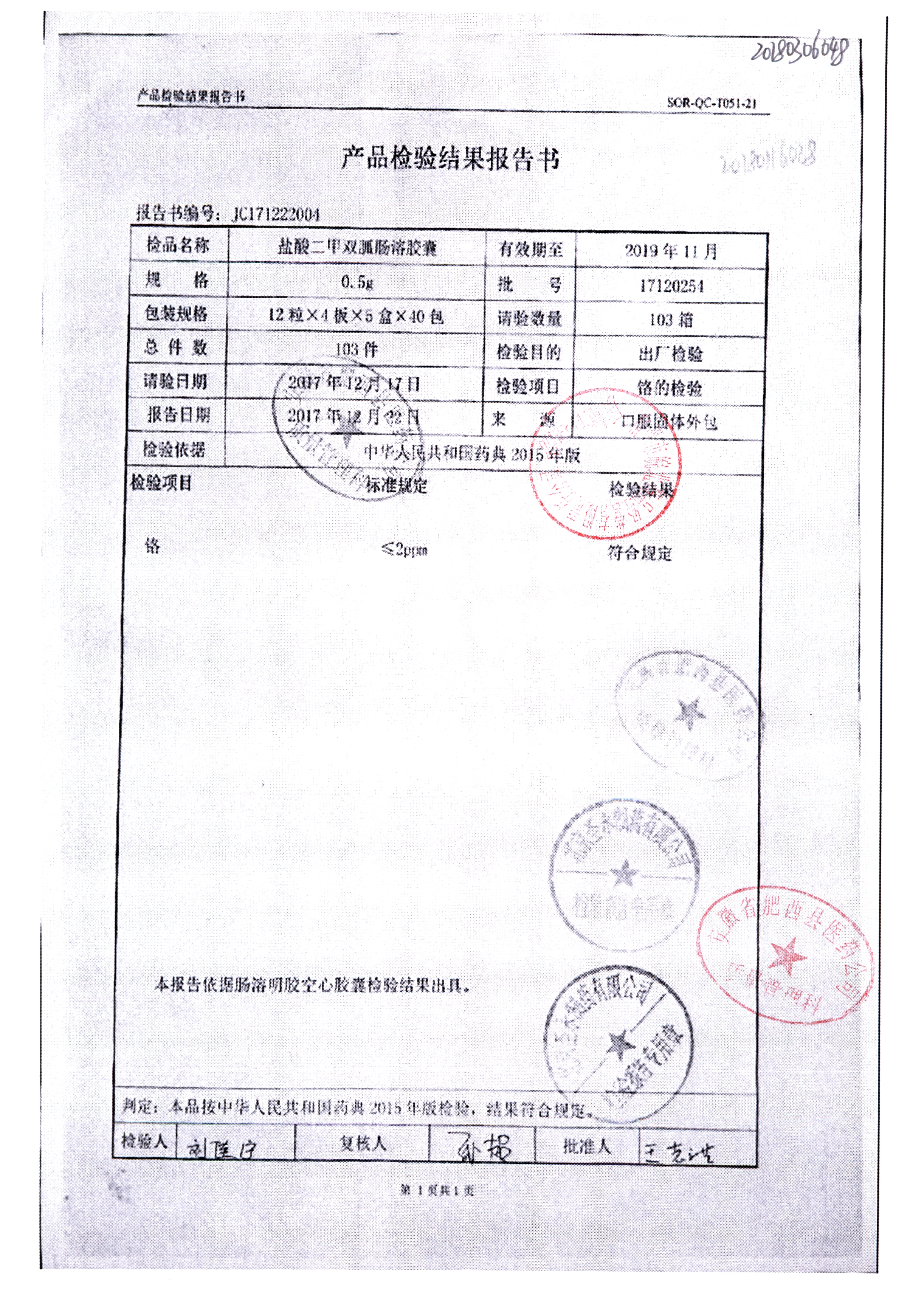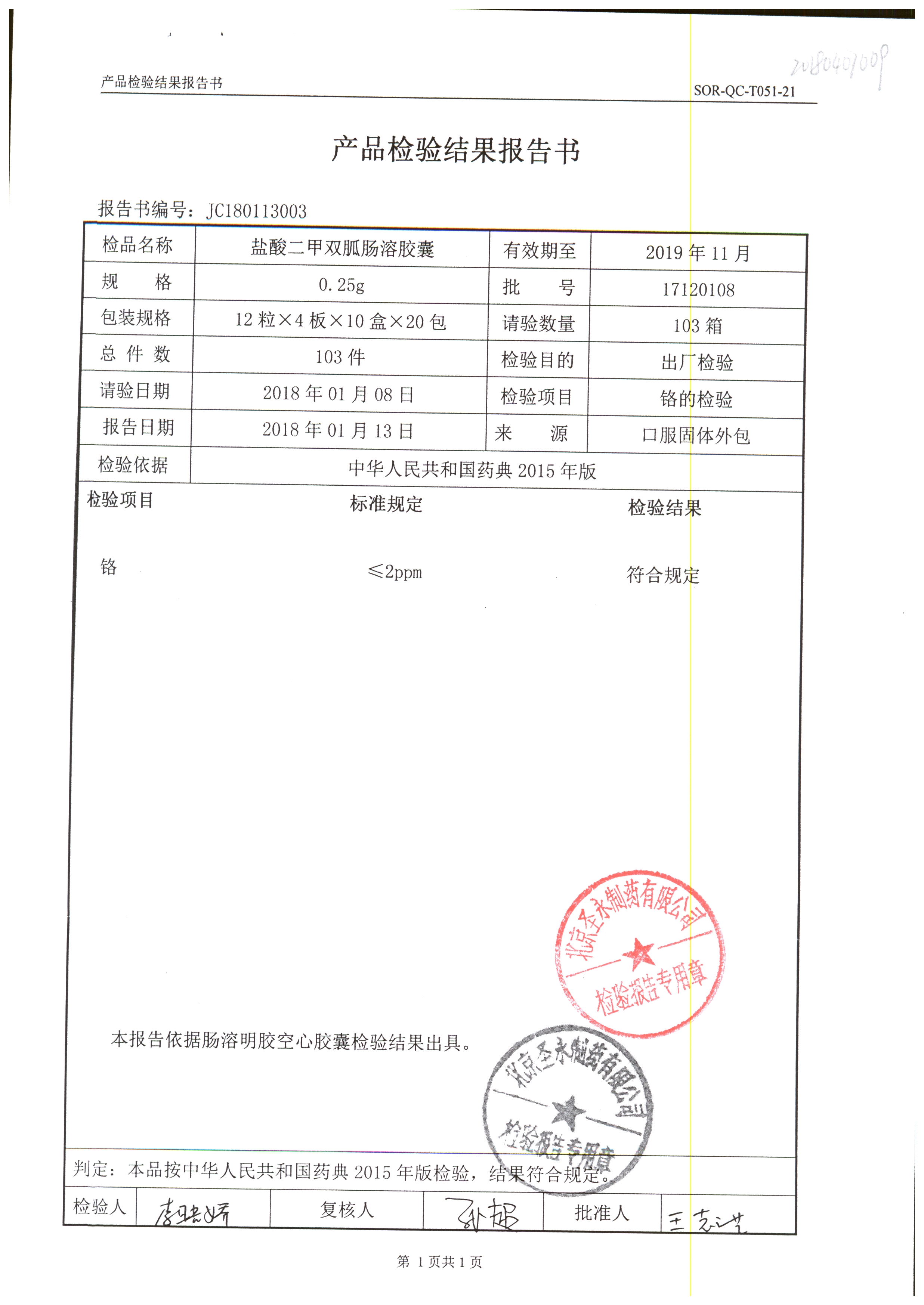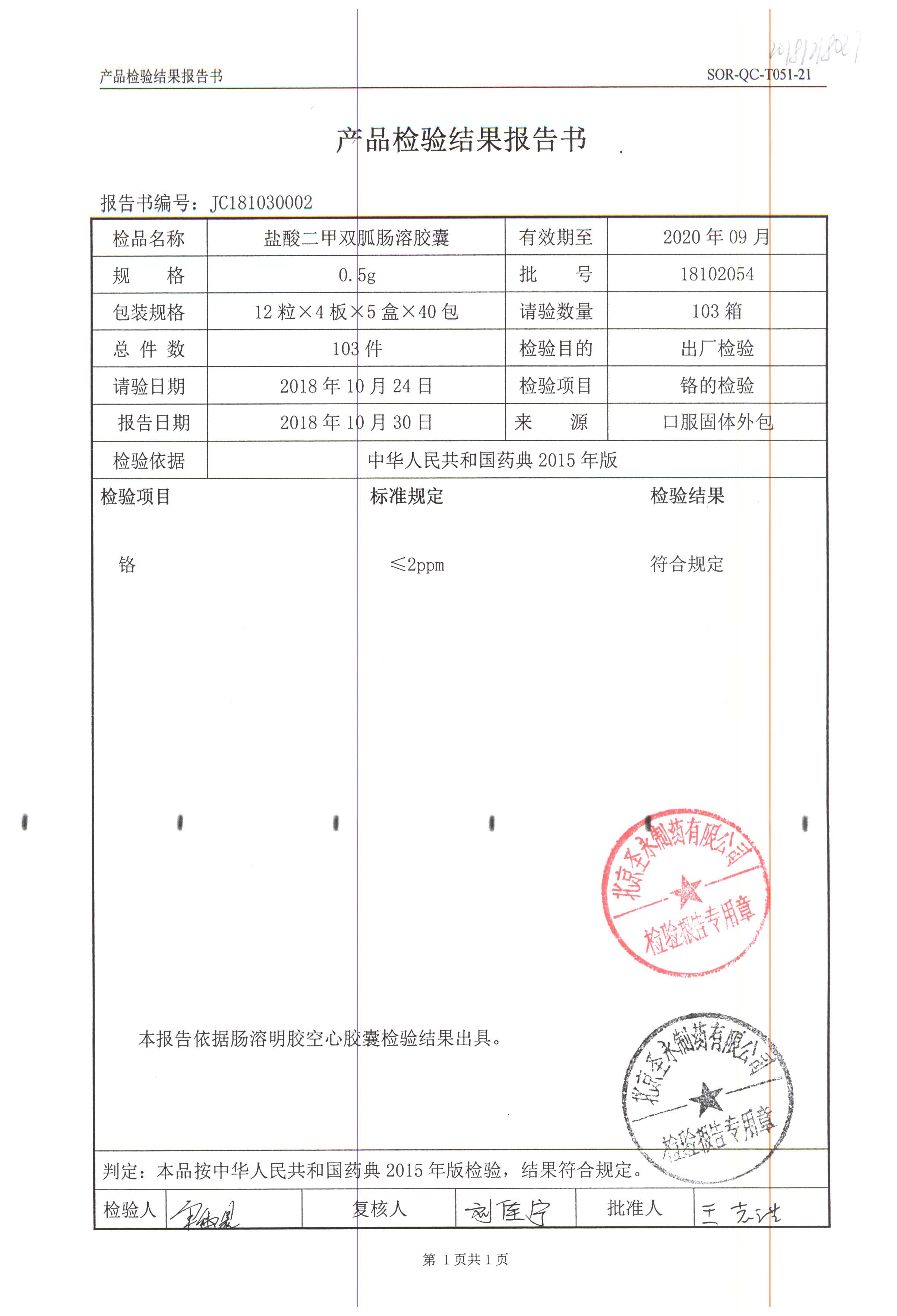 | 鹽酸二甲雙胍腸溶膠囊 | 0.5g*48粒 | 18102054(1/2) | 查看詳情 |