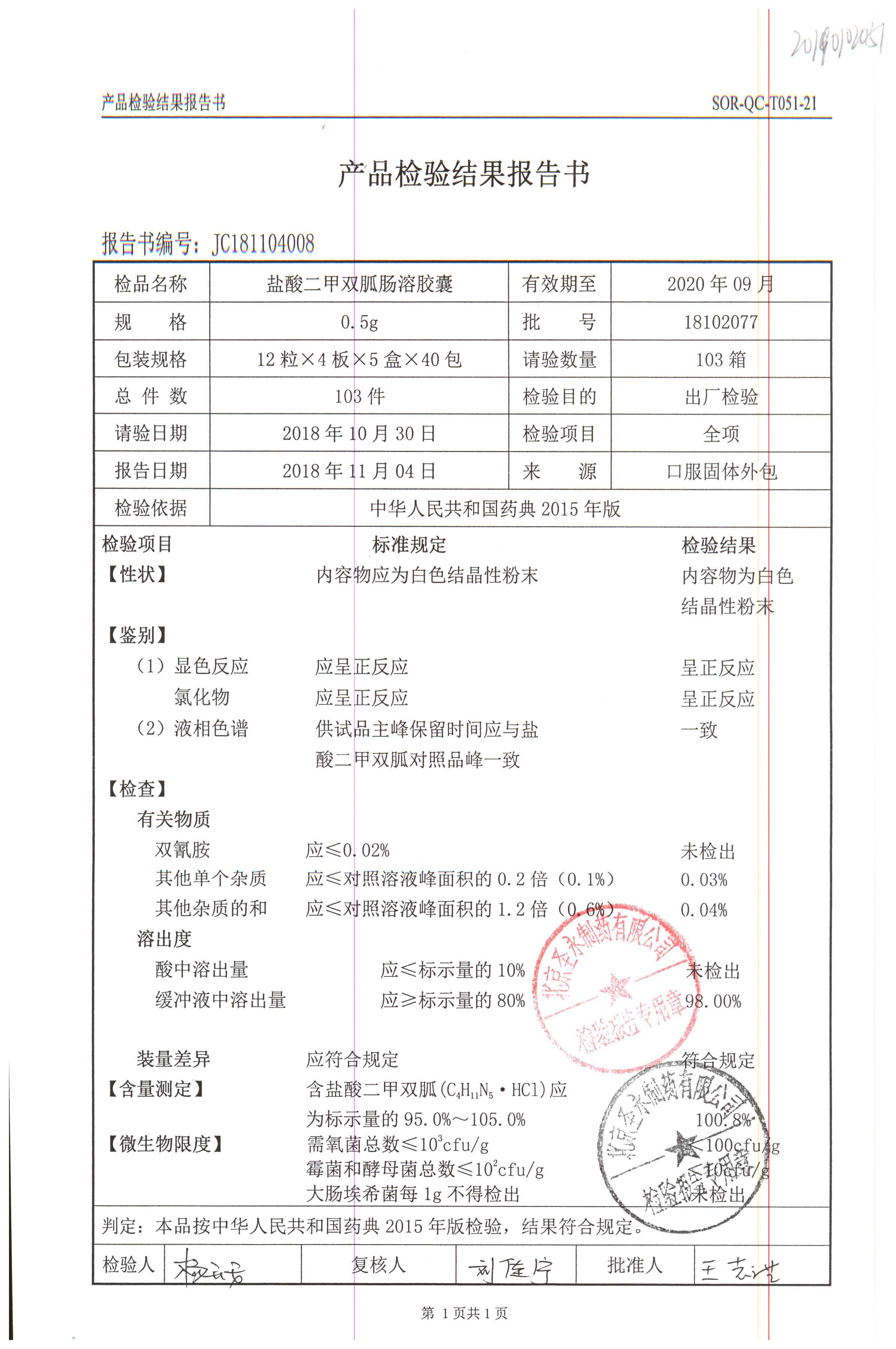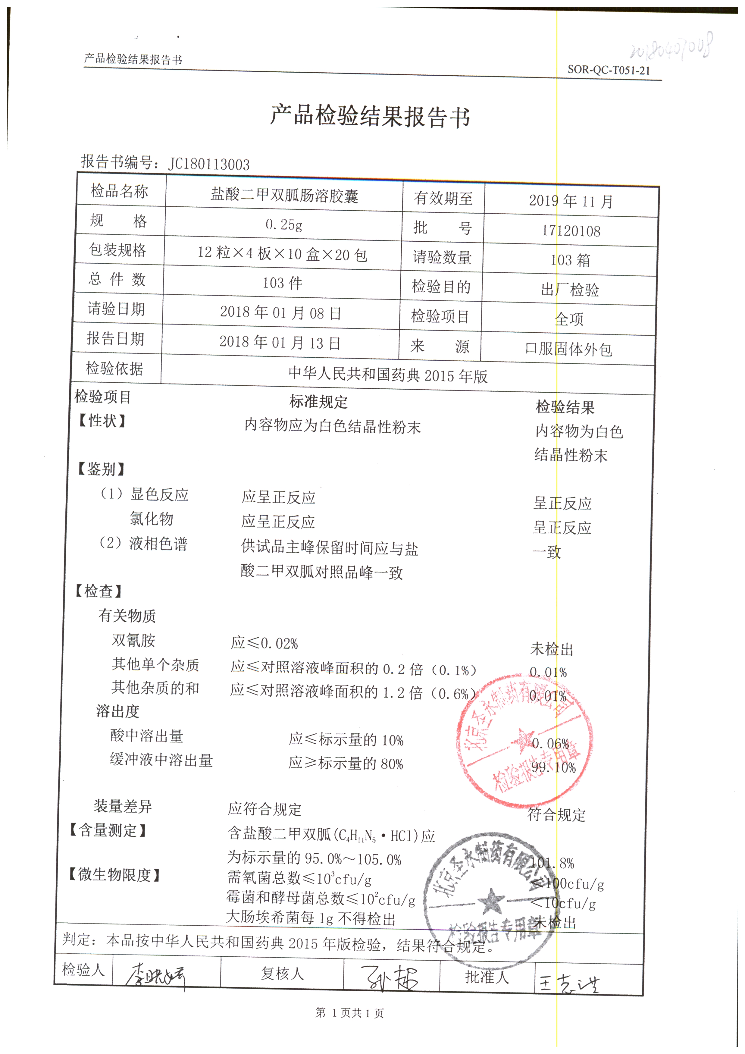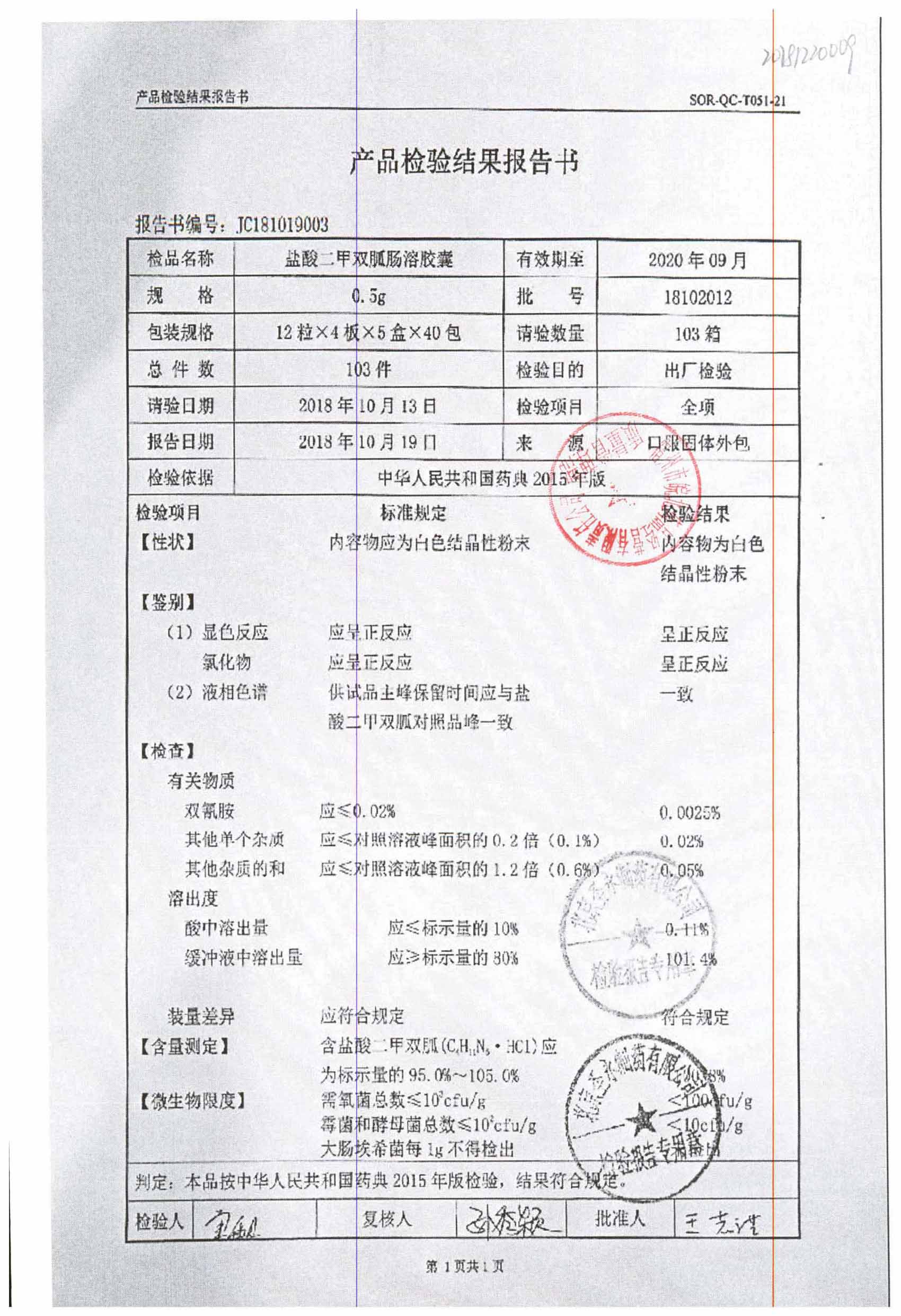 | 鹽酸二甲雙胍腸溶膠囊 | 0.5g*48粒 | 18092048(1/2) | 查看詳情 |