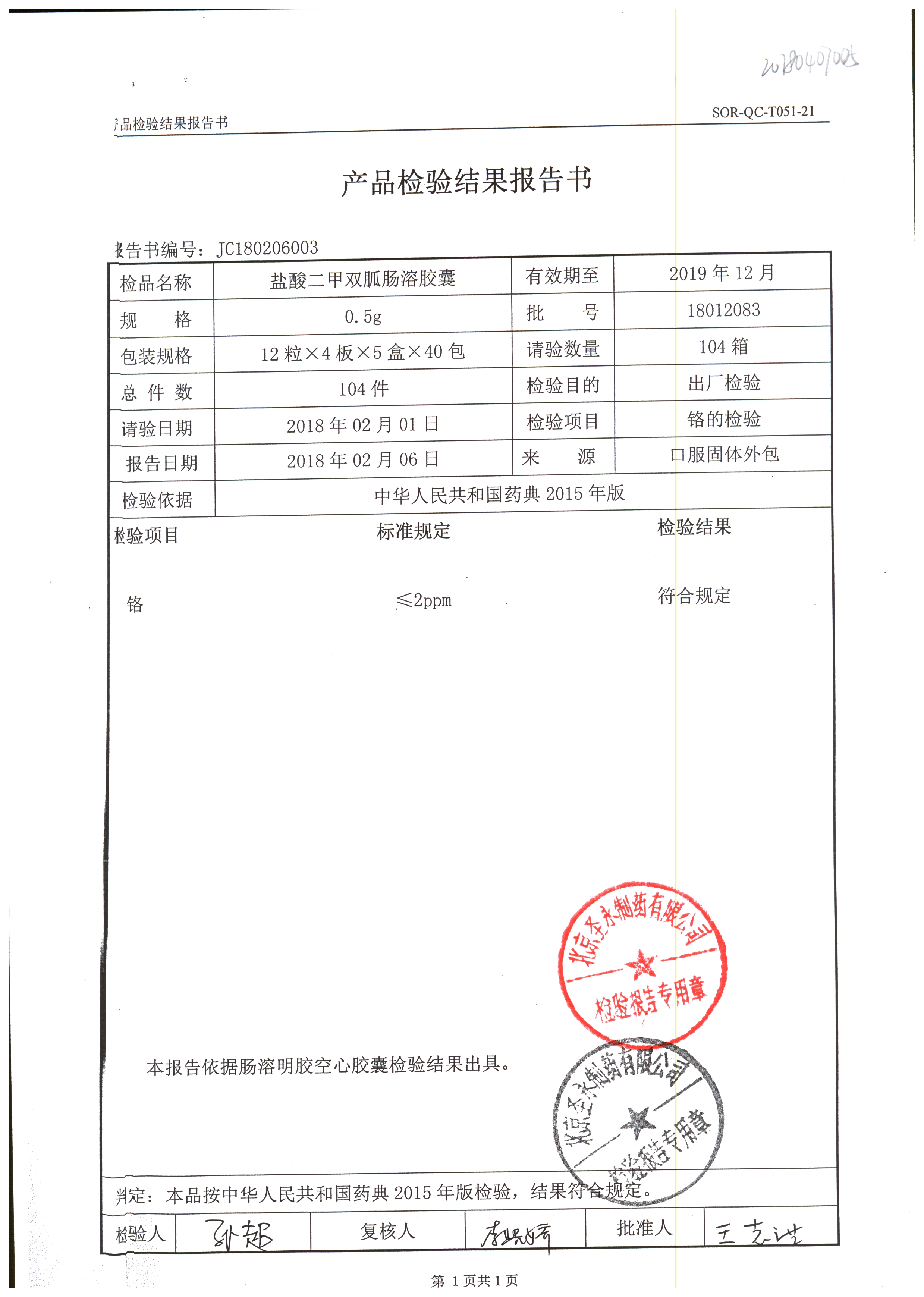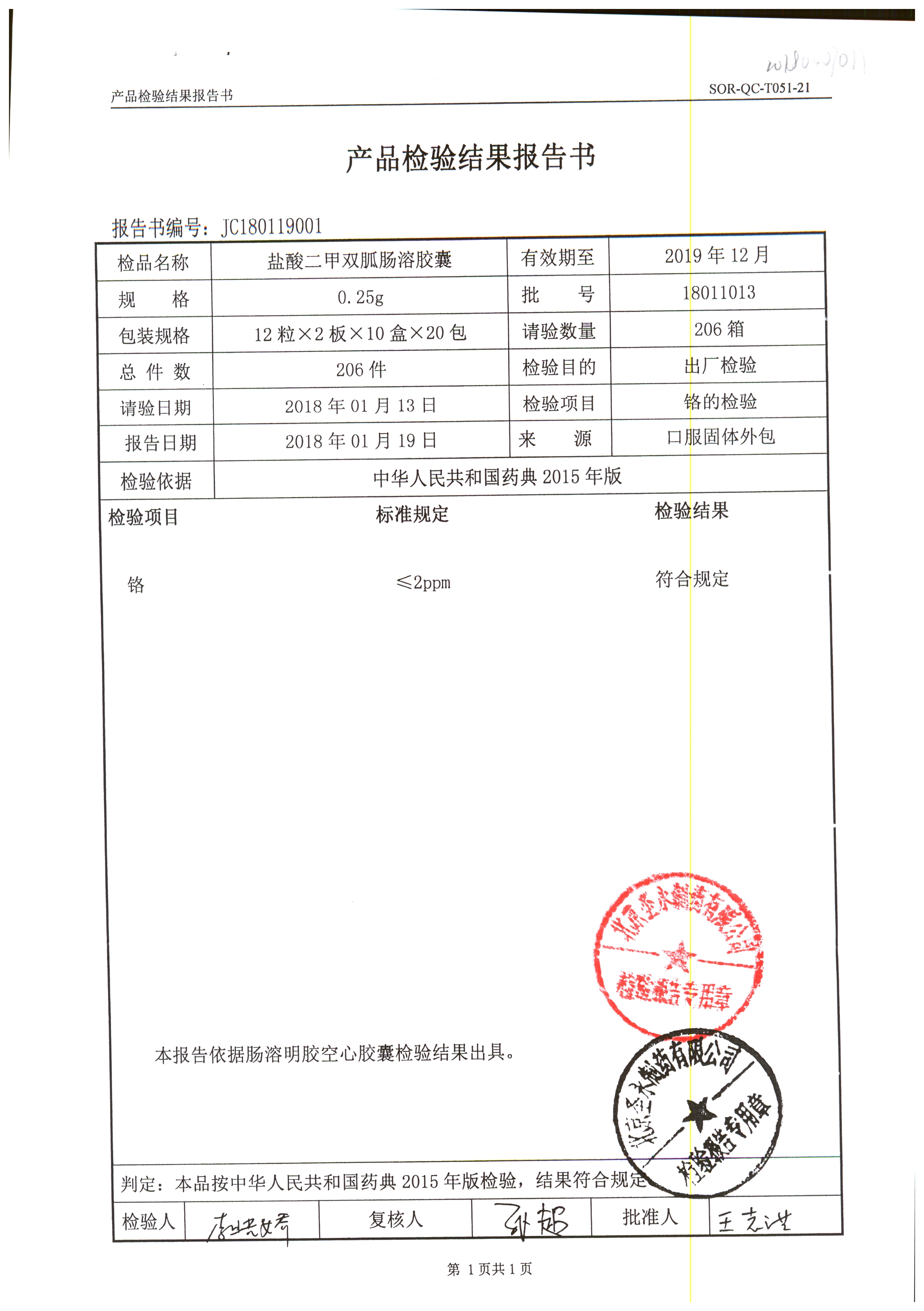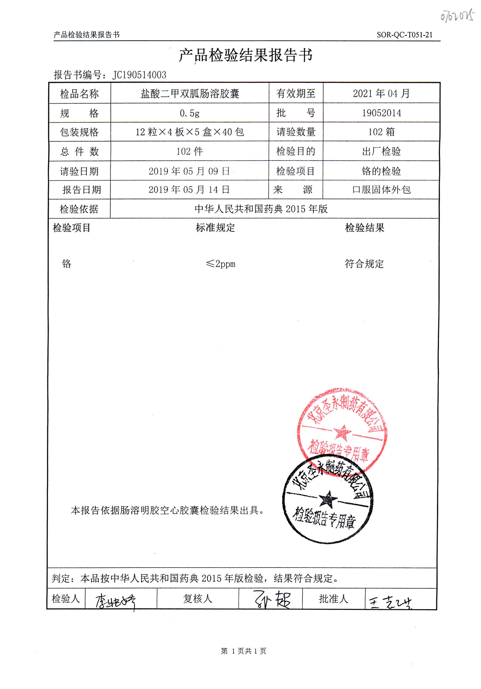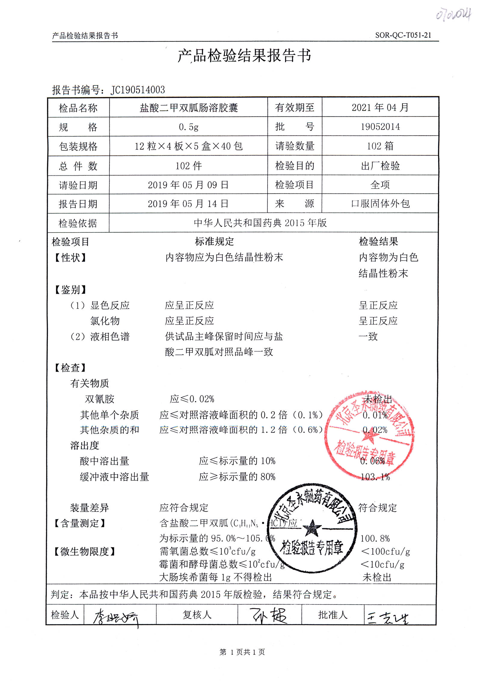 | 鹽酸二甲雙胍腸溶膠囊 | 0.5g*48粒 | 19032101(1/2) | 查看詳情 |
