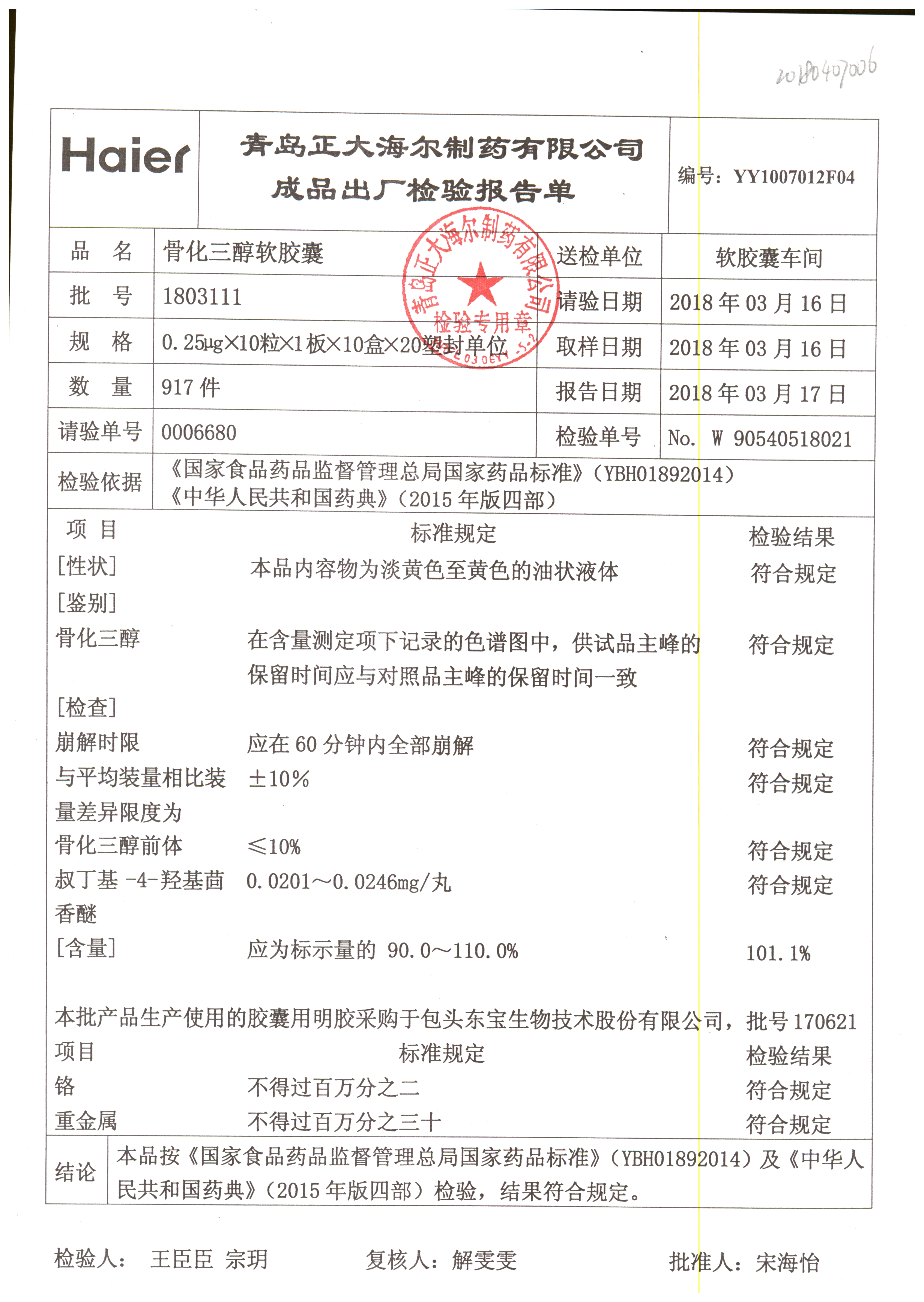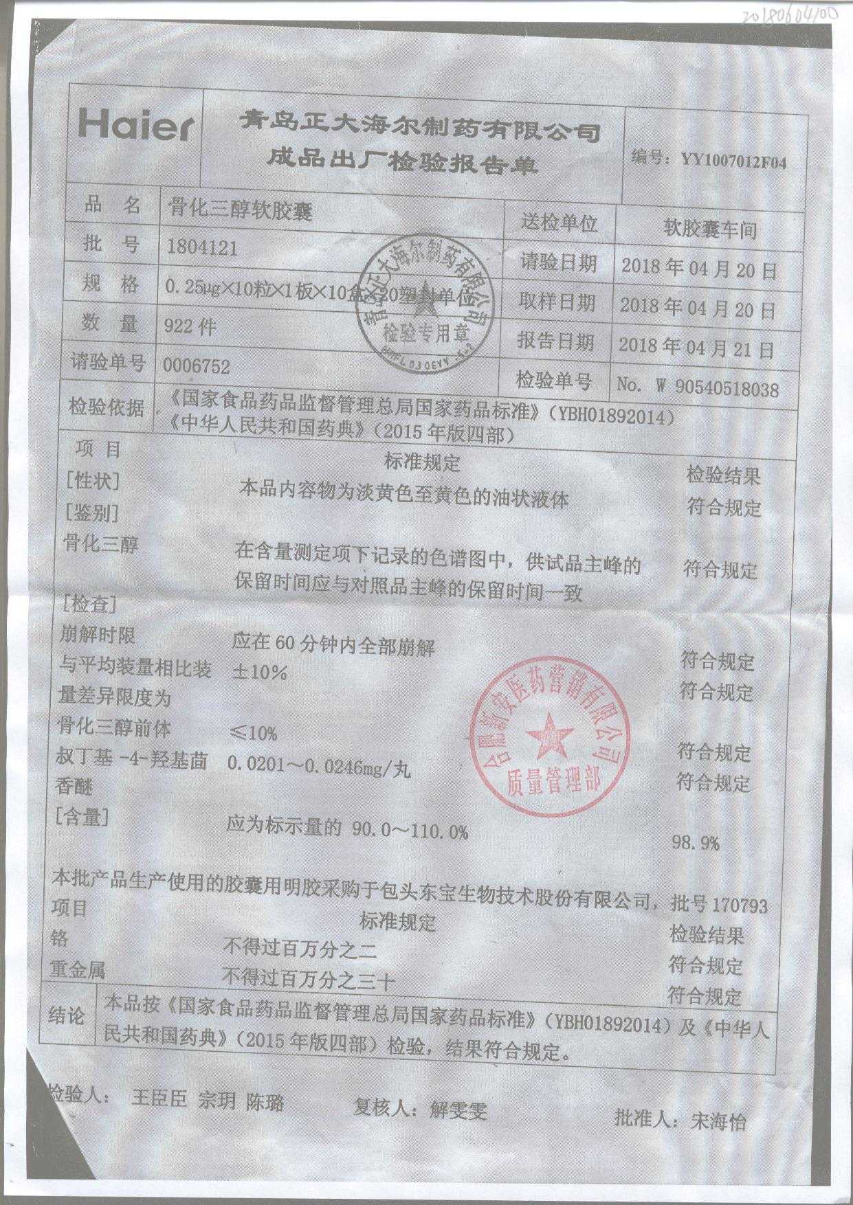 | 名稱 | 規(guī)格 | 批號(hào) | 藥檢報(bào)告 |