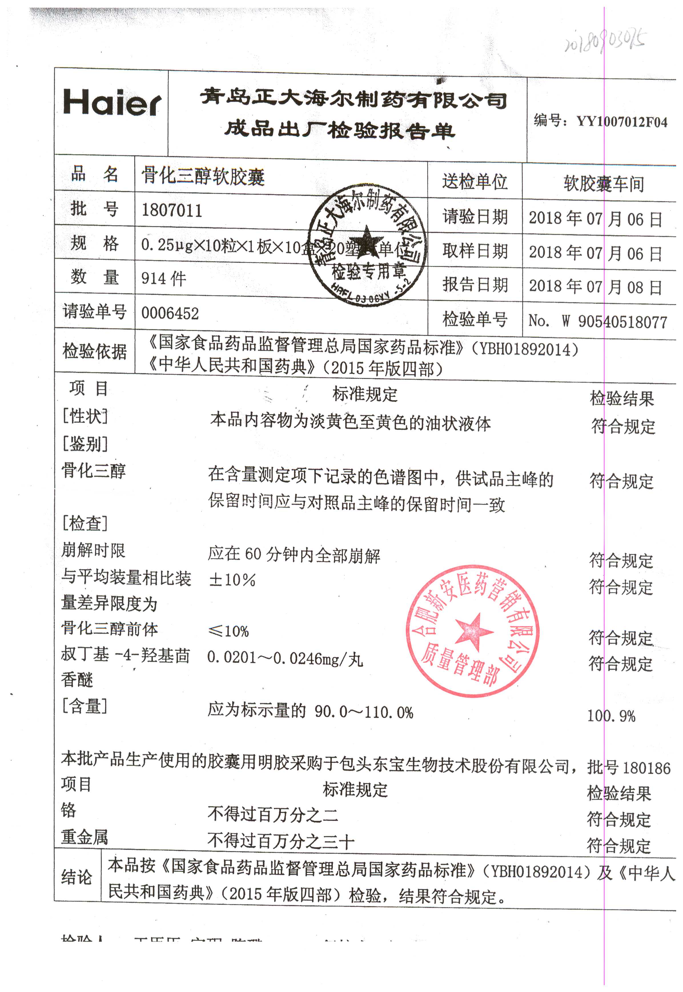 | 骨化三醇軟膠囊 | 0.25ug*10粒 | 1807011 | 查看詳情 |