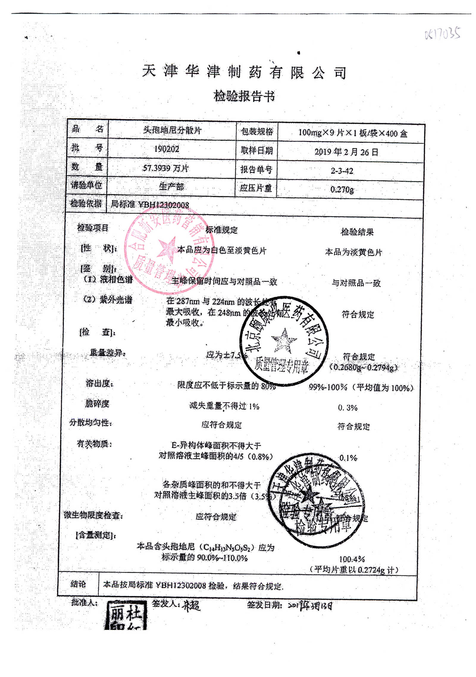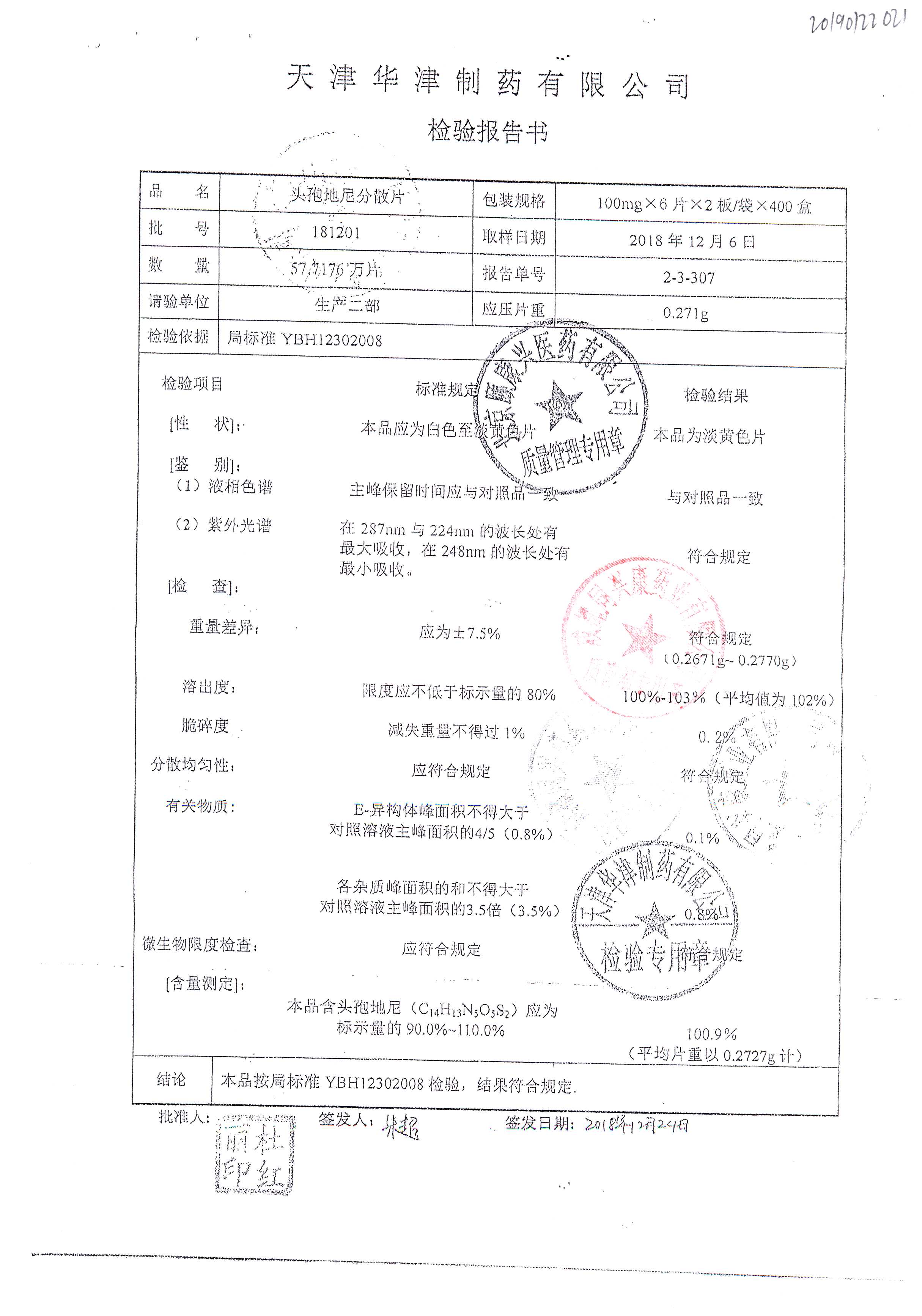 | 頭孢地尼分散片 | 100mg*12片 | 190401 | 查看詳情 |