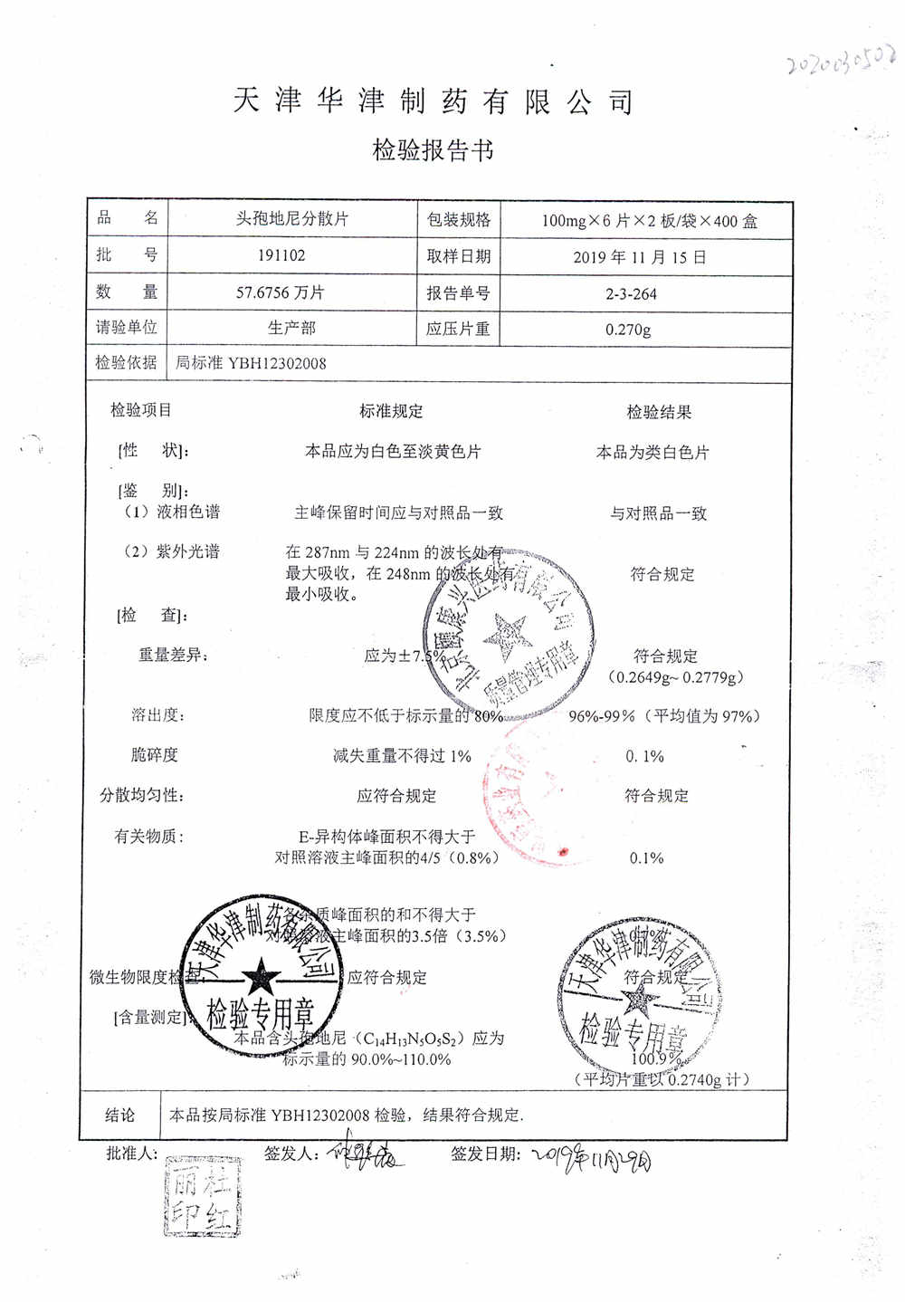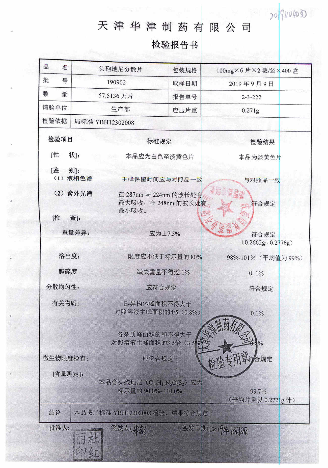 | 頭孢地尼分散片 | 100mg*12片 | 190902 | 查看詳情 |