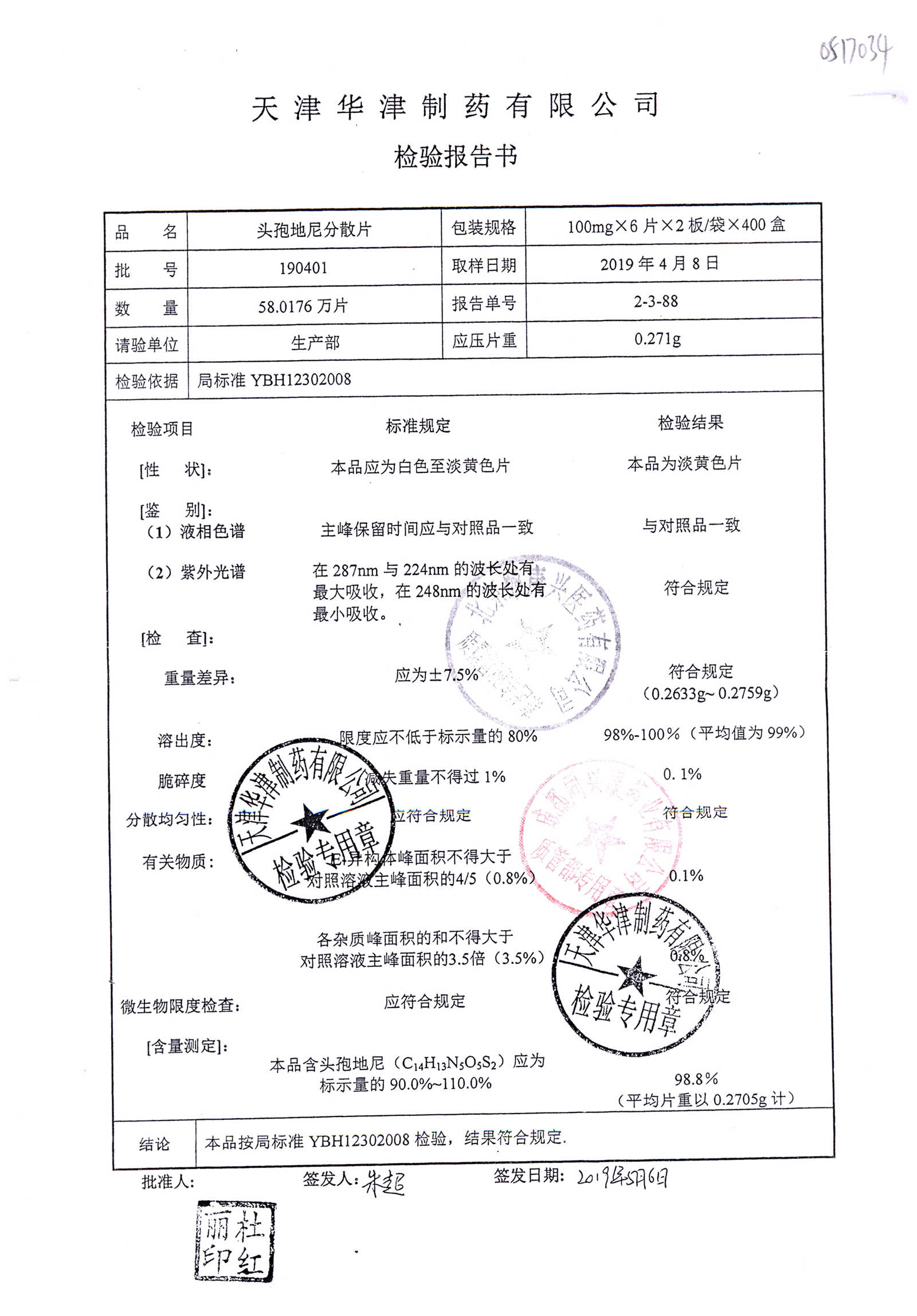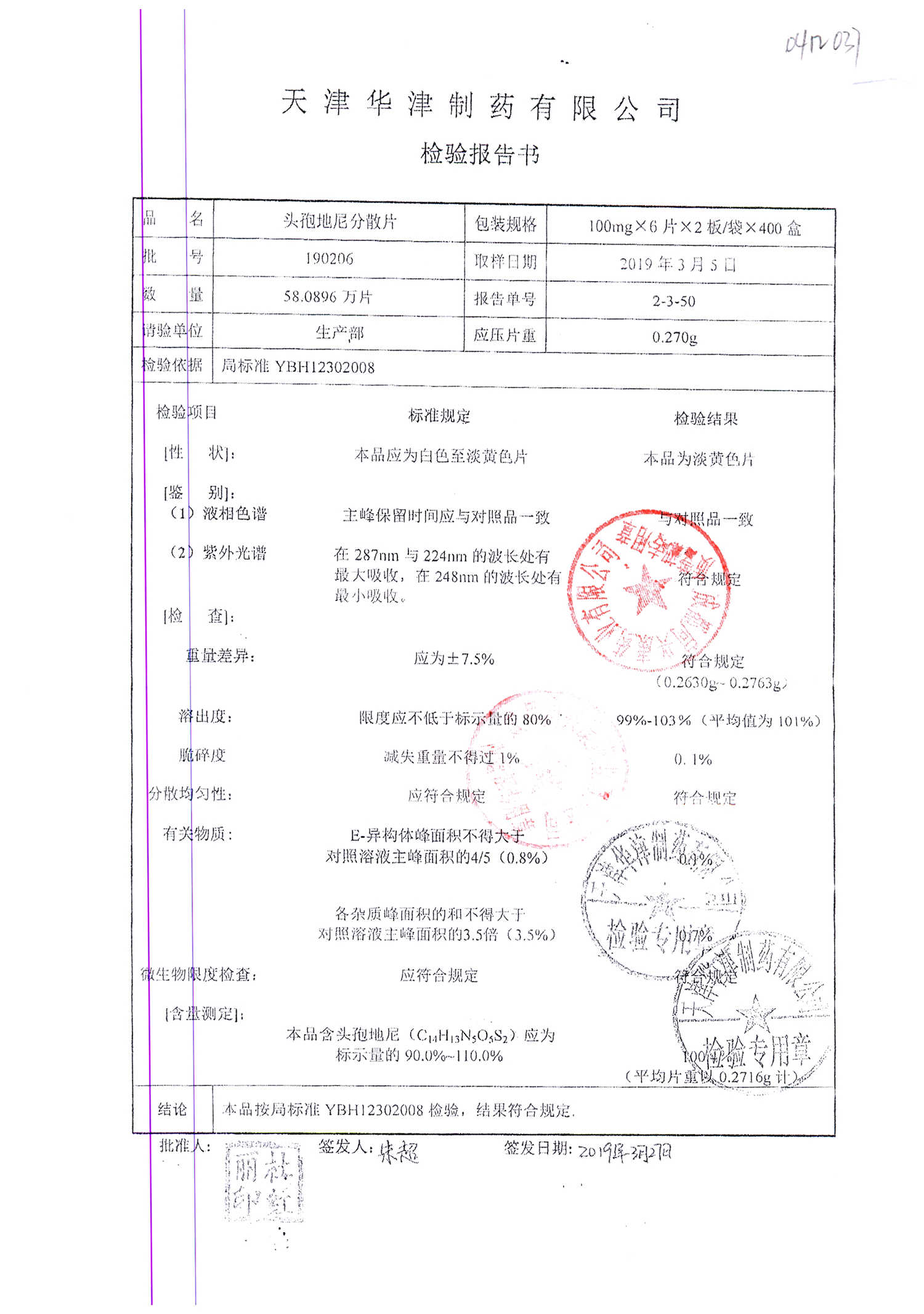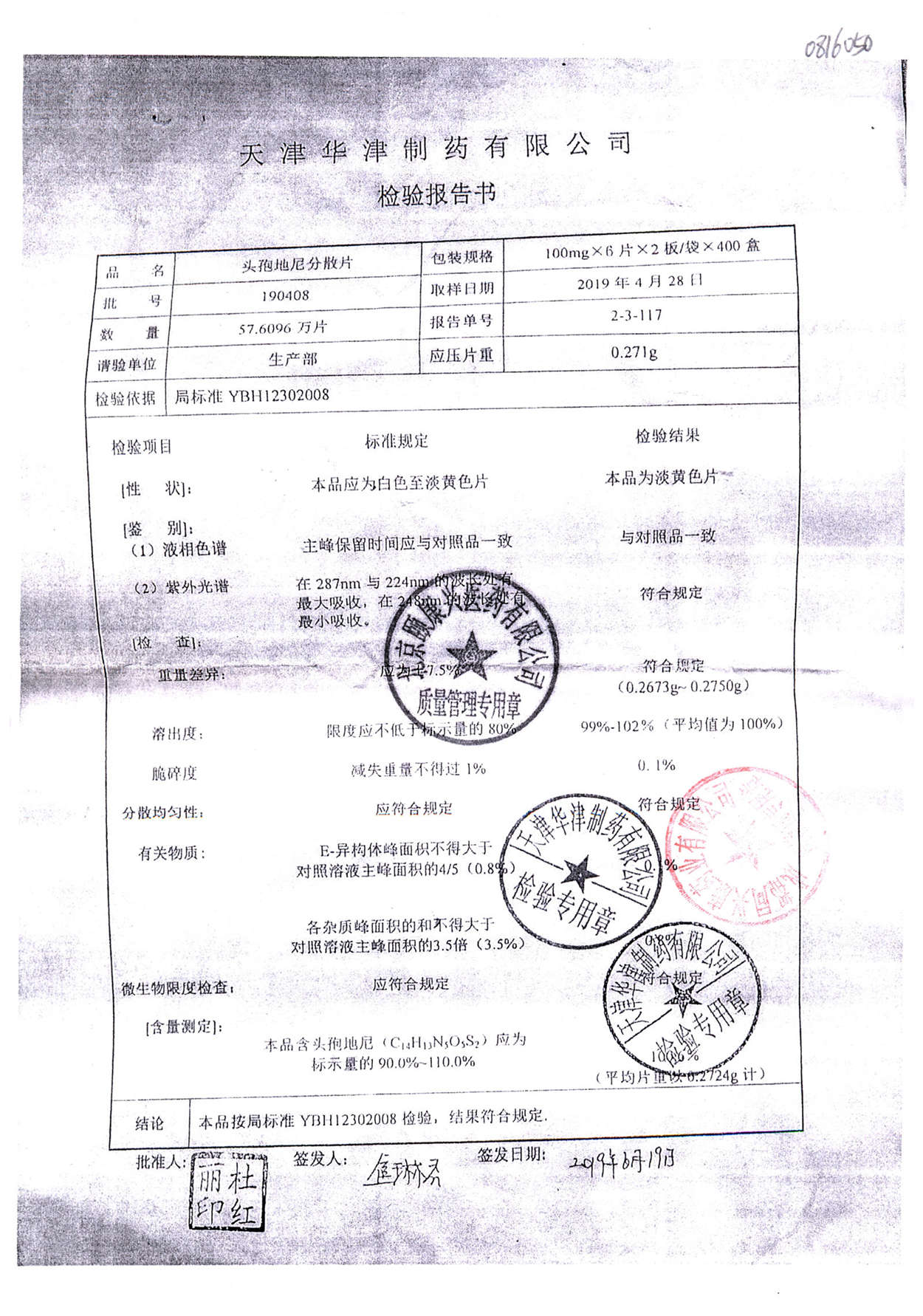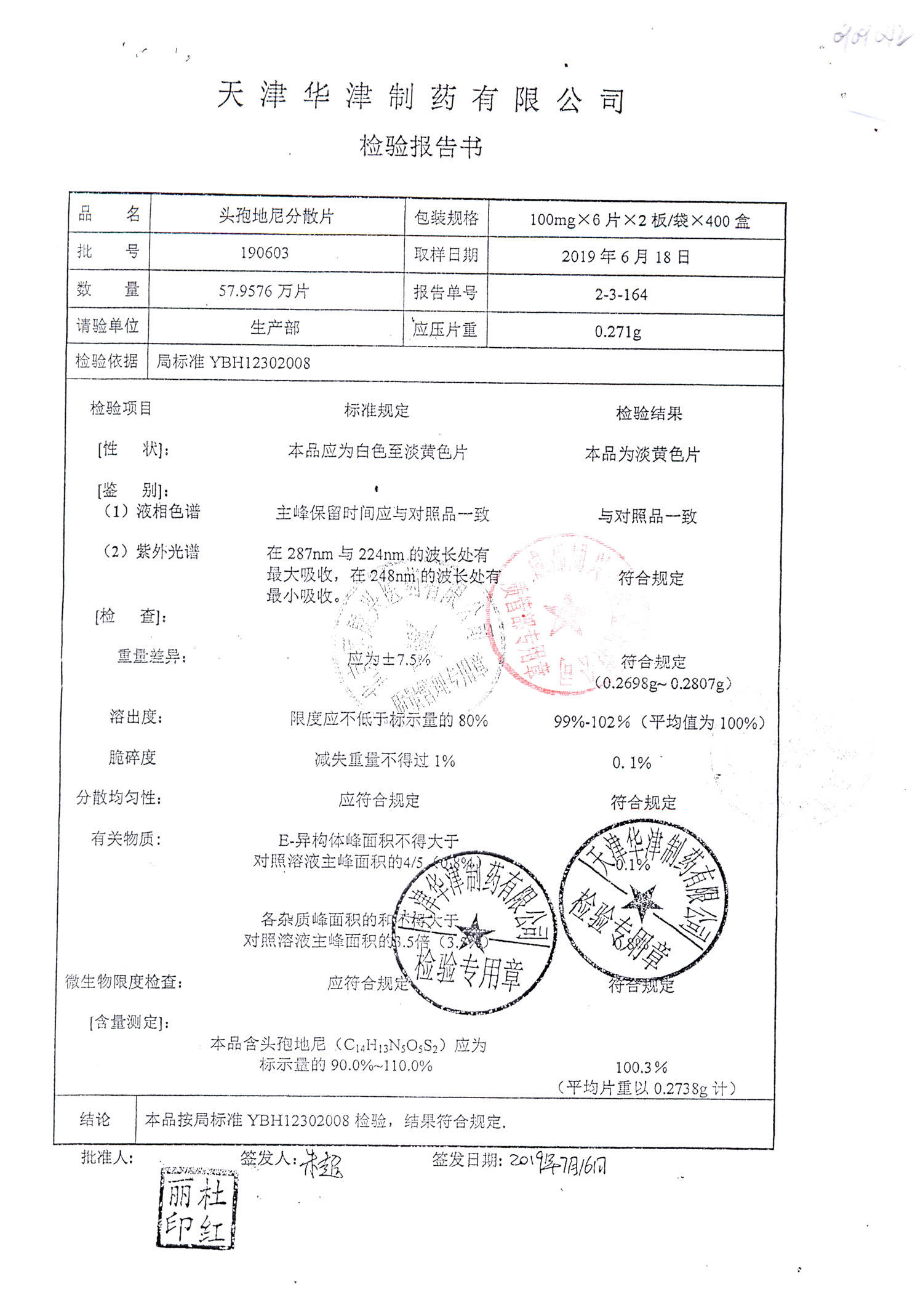 | 頭孢地尼分散片 | 100mg*12片 | 190408 | 查看詳情 |