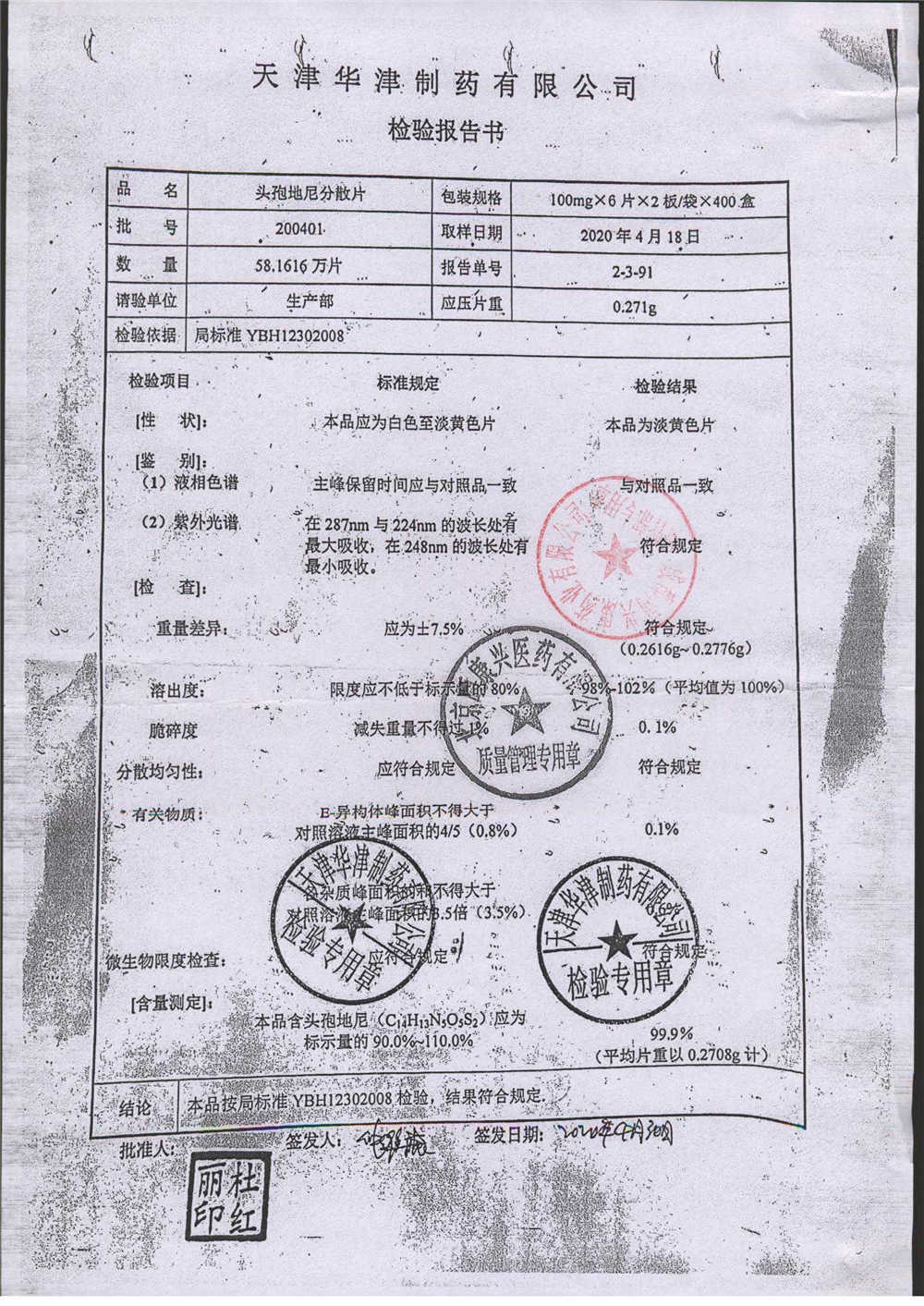 | 頭孢地尼分散片 | 100mg*12片 | 200401 | 查看詳情 |