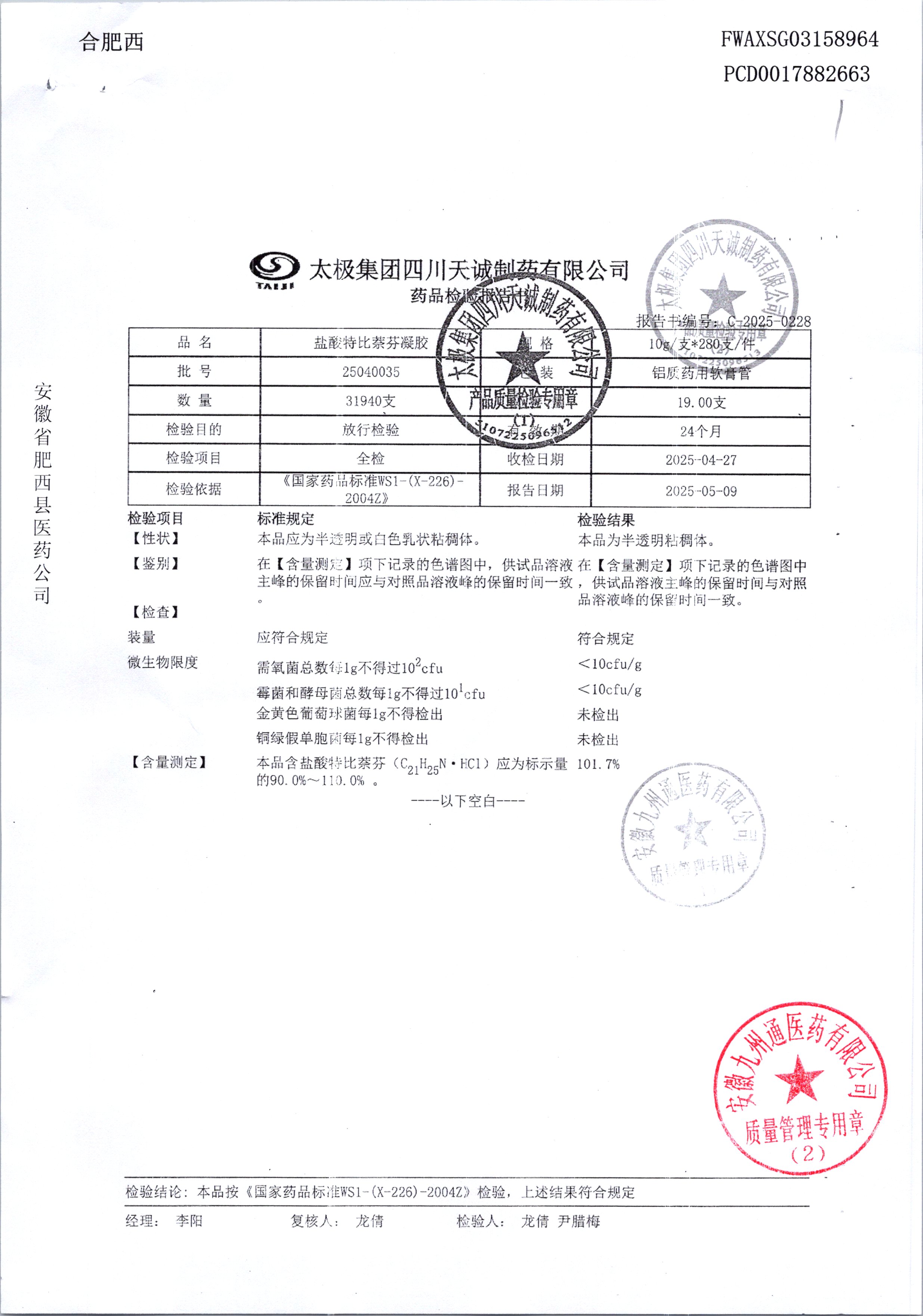 名稱 規(guī)格 批號 藥檢報告