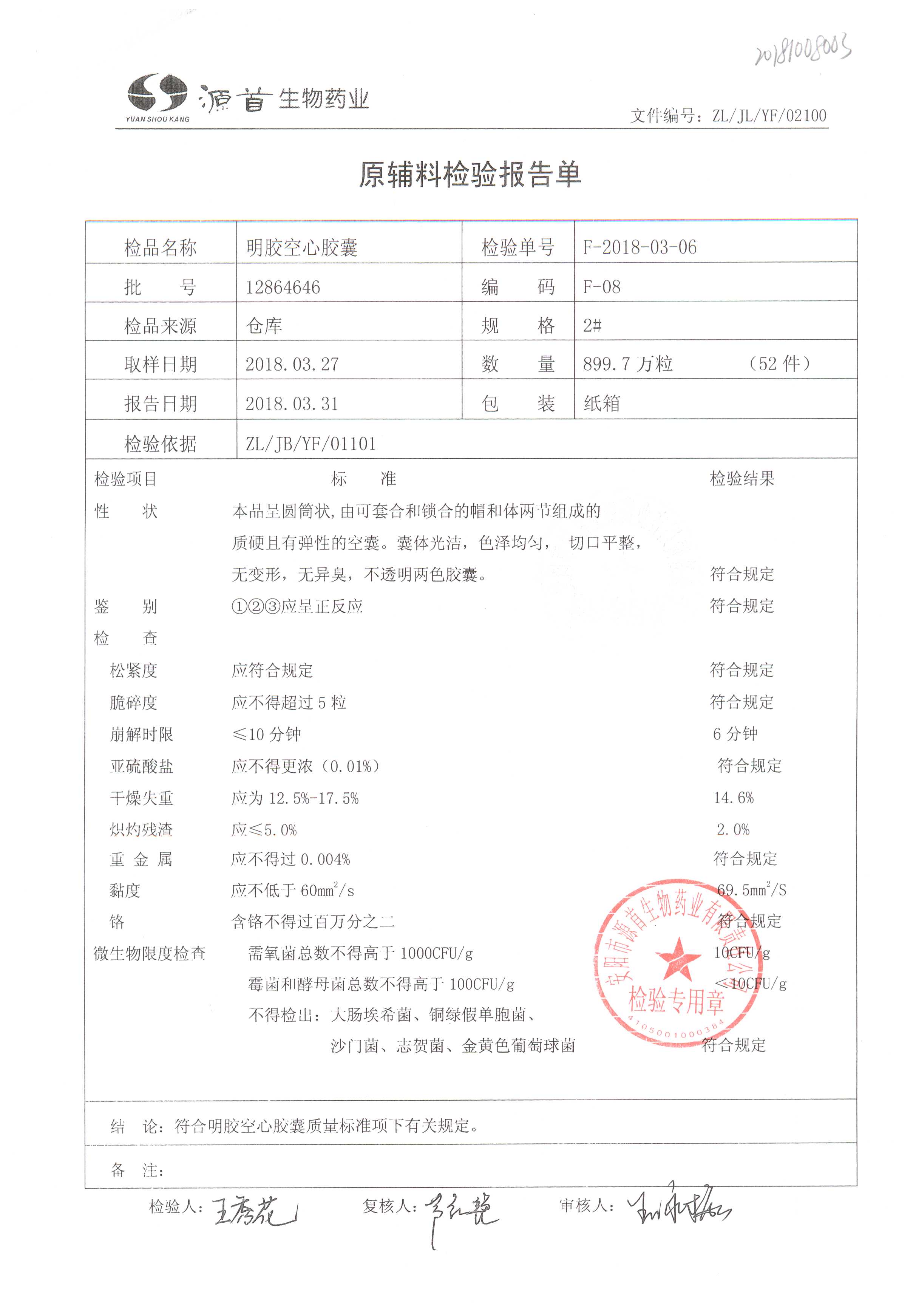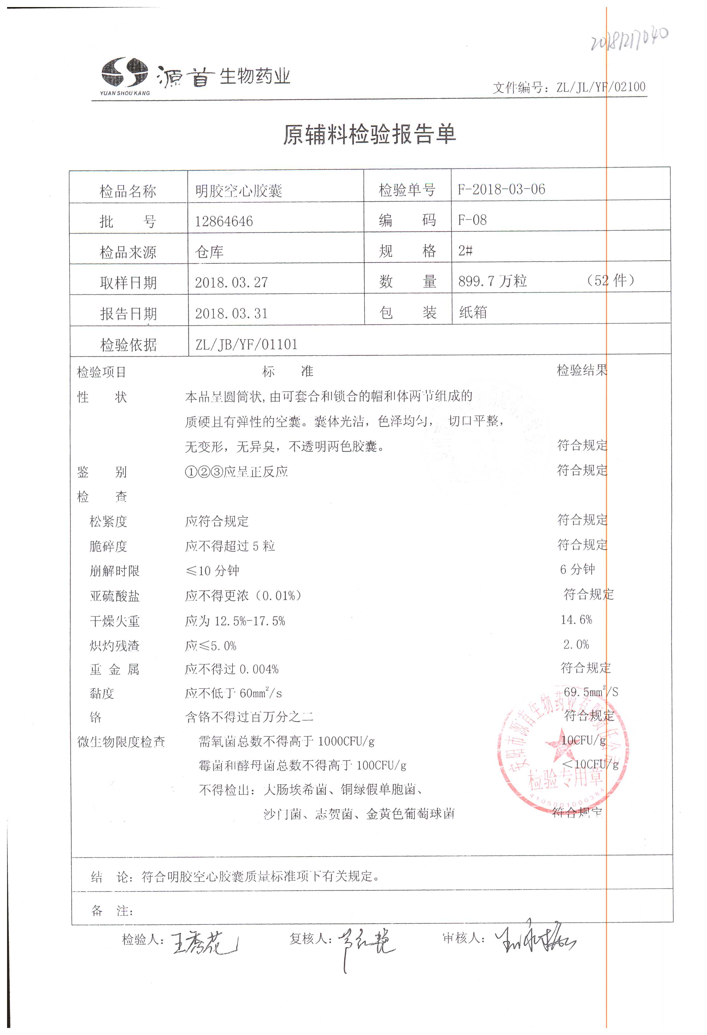 | 蠟樣芽孢桿菌活菌膠囊(源首) | 0.25g | 20180304(2/3) | 查看詳情 |