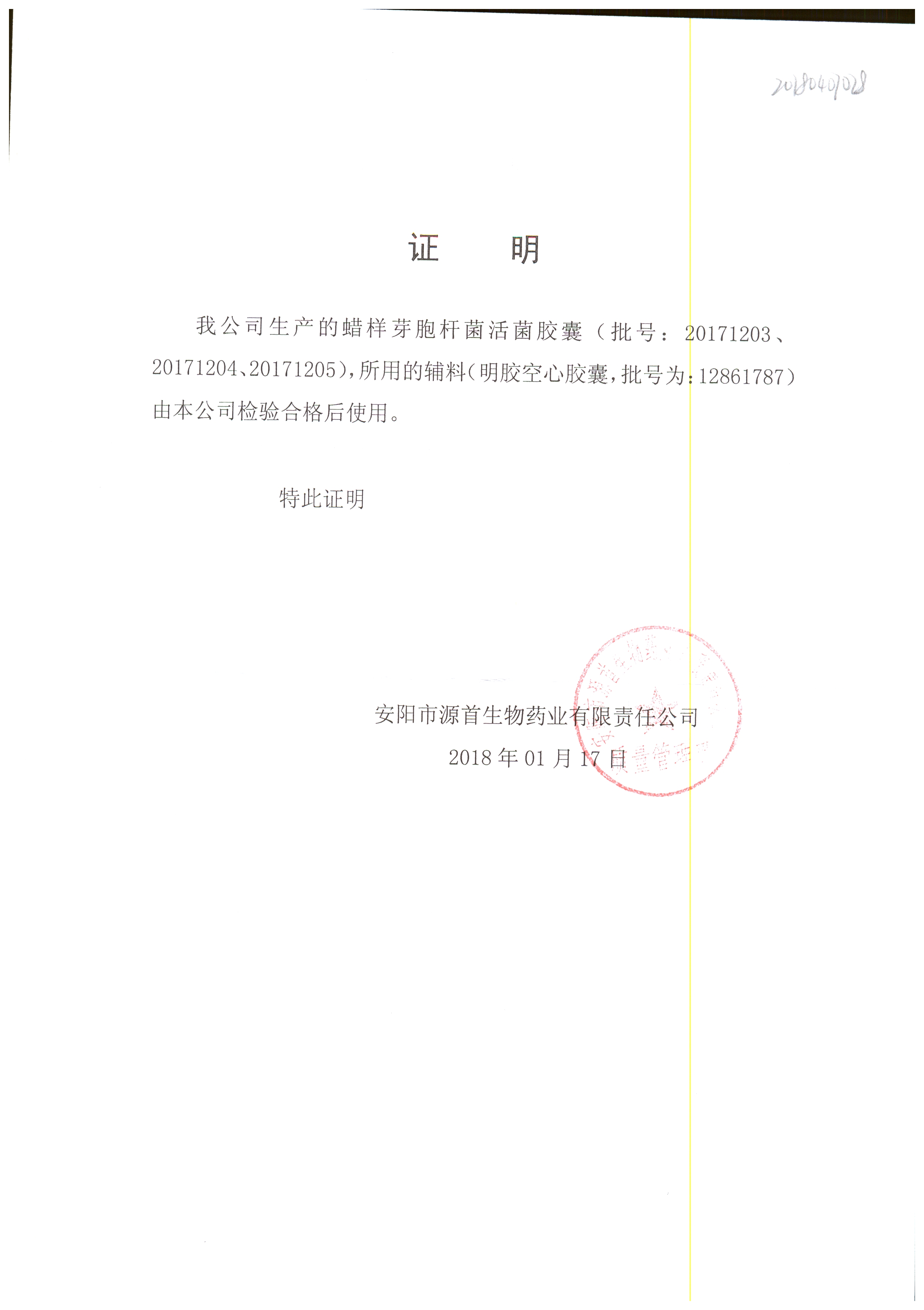 | 蠟樣芽孢桿菌活菌膠囊(源首) | 0.25g | 20171204 | 查看詳情 |