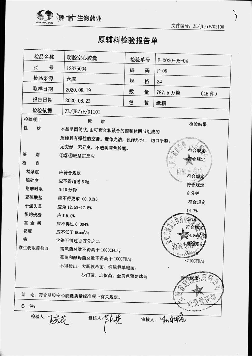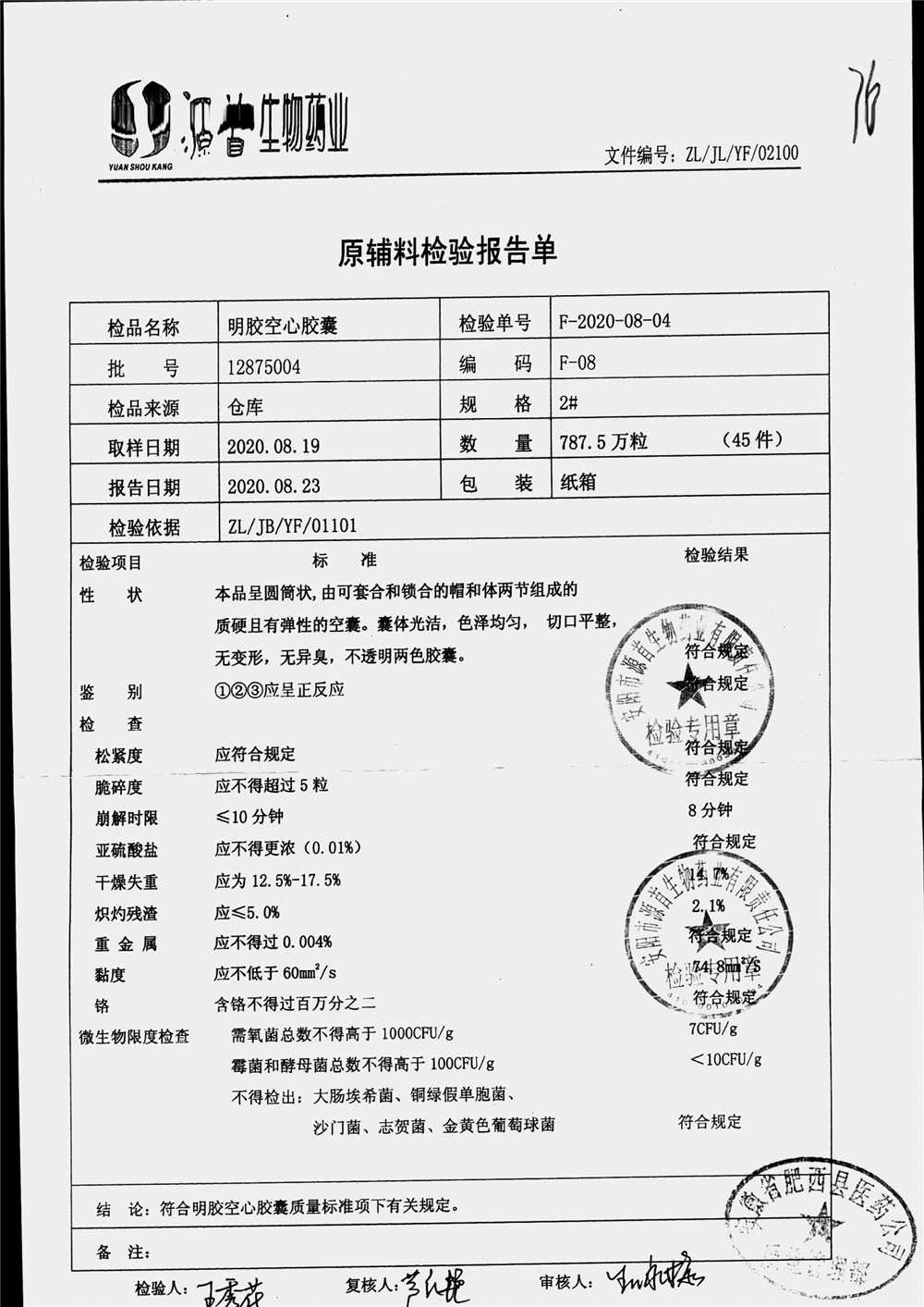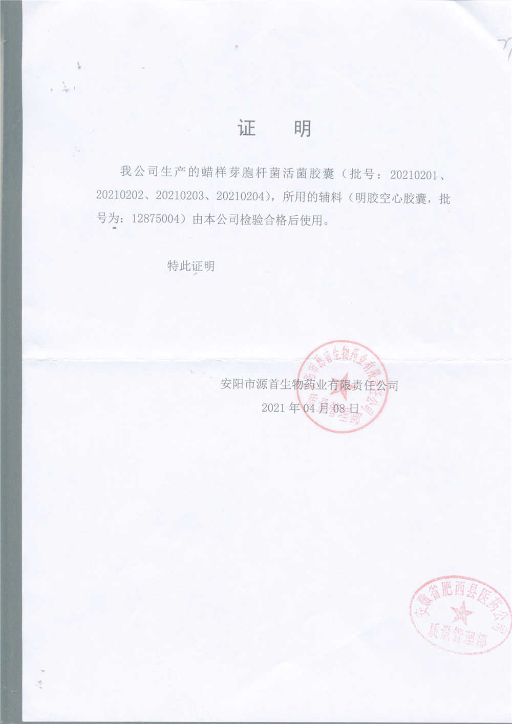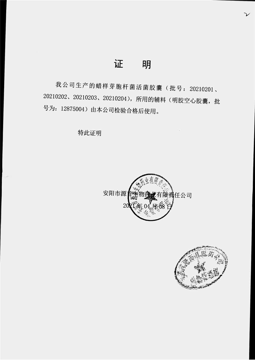 | 蠟樣芽孢桿菌活菌膠囊(源首) | 0.25g | 20210204(2/3) | 查看詳情 |