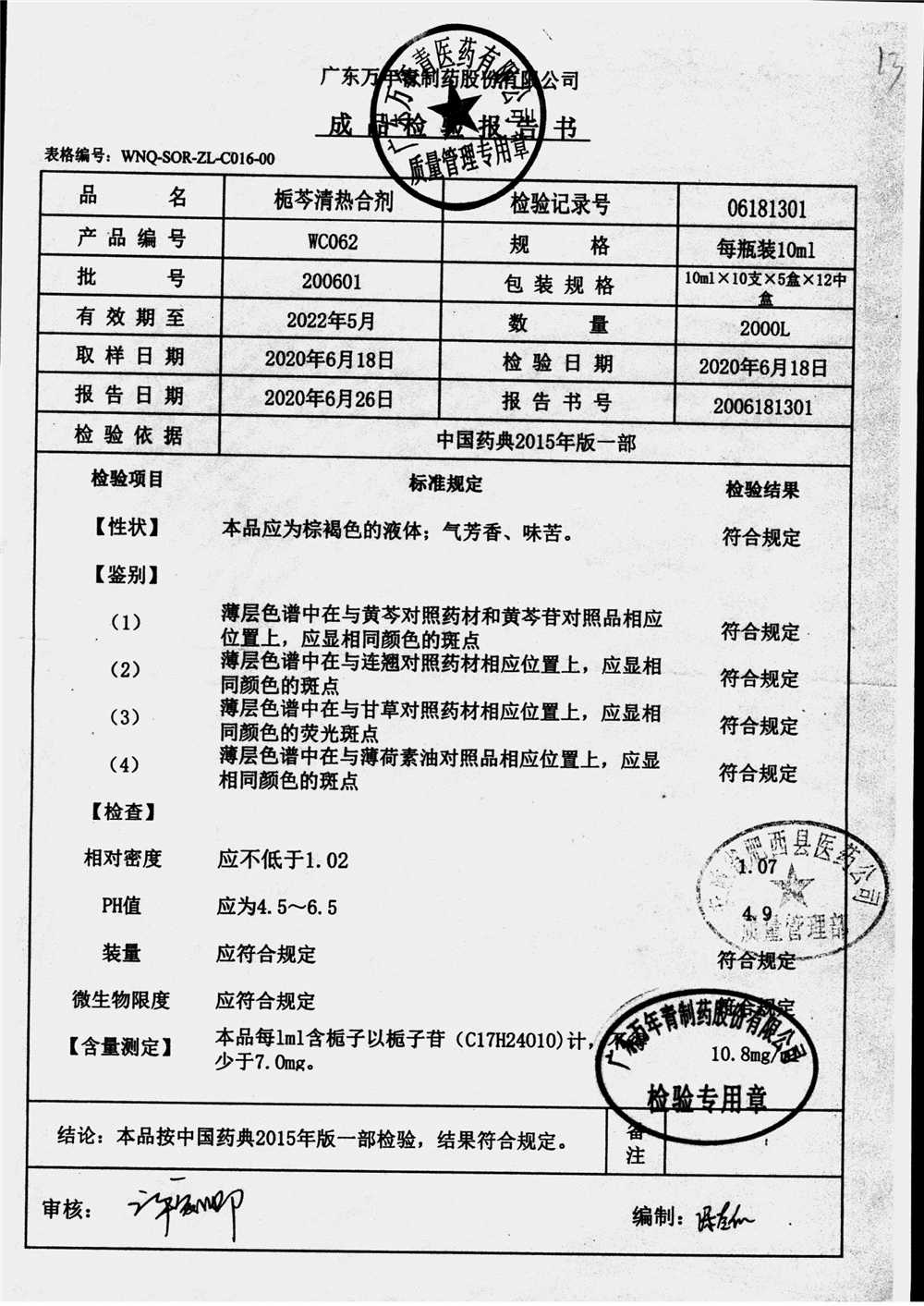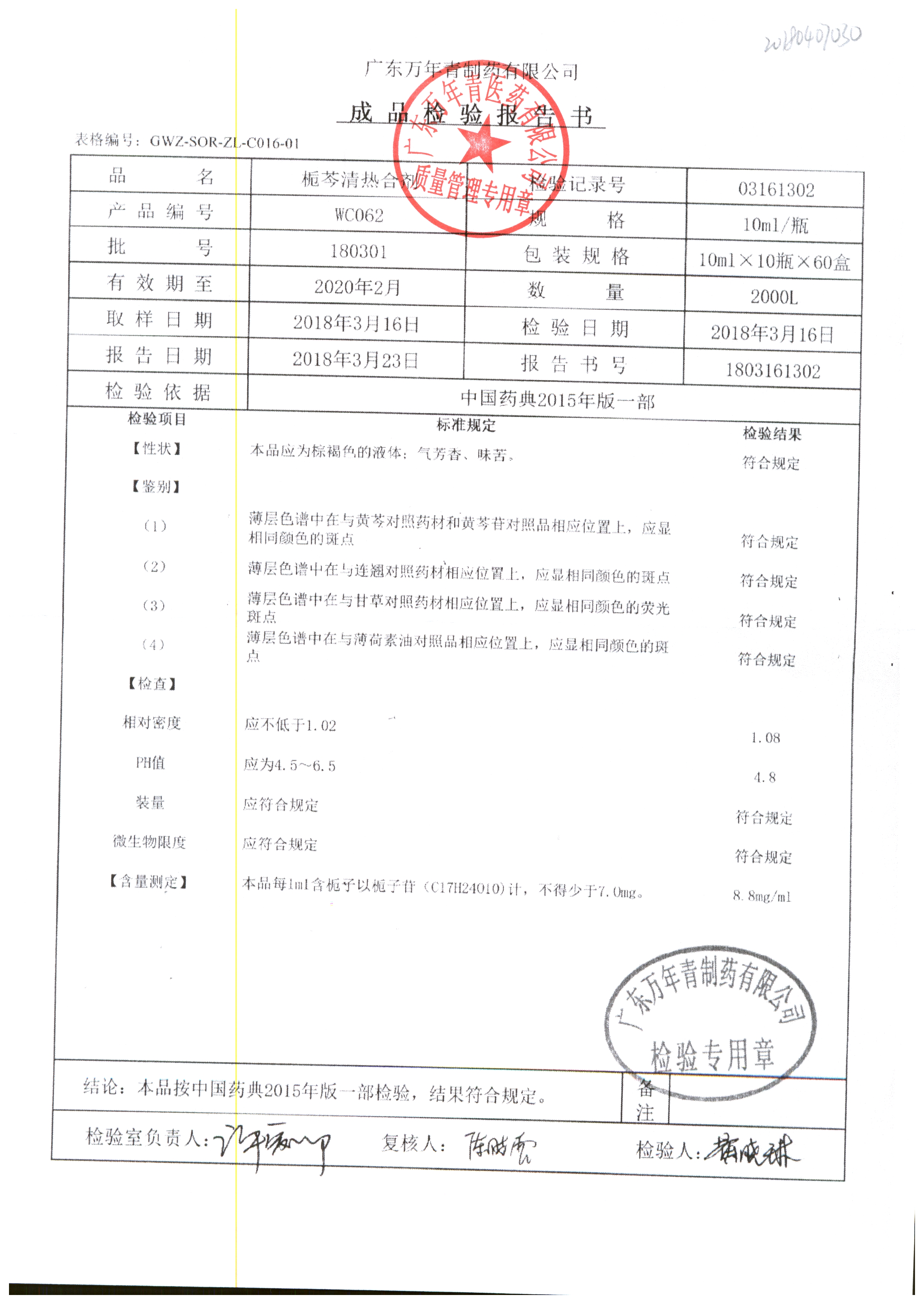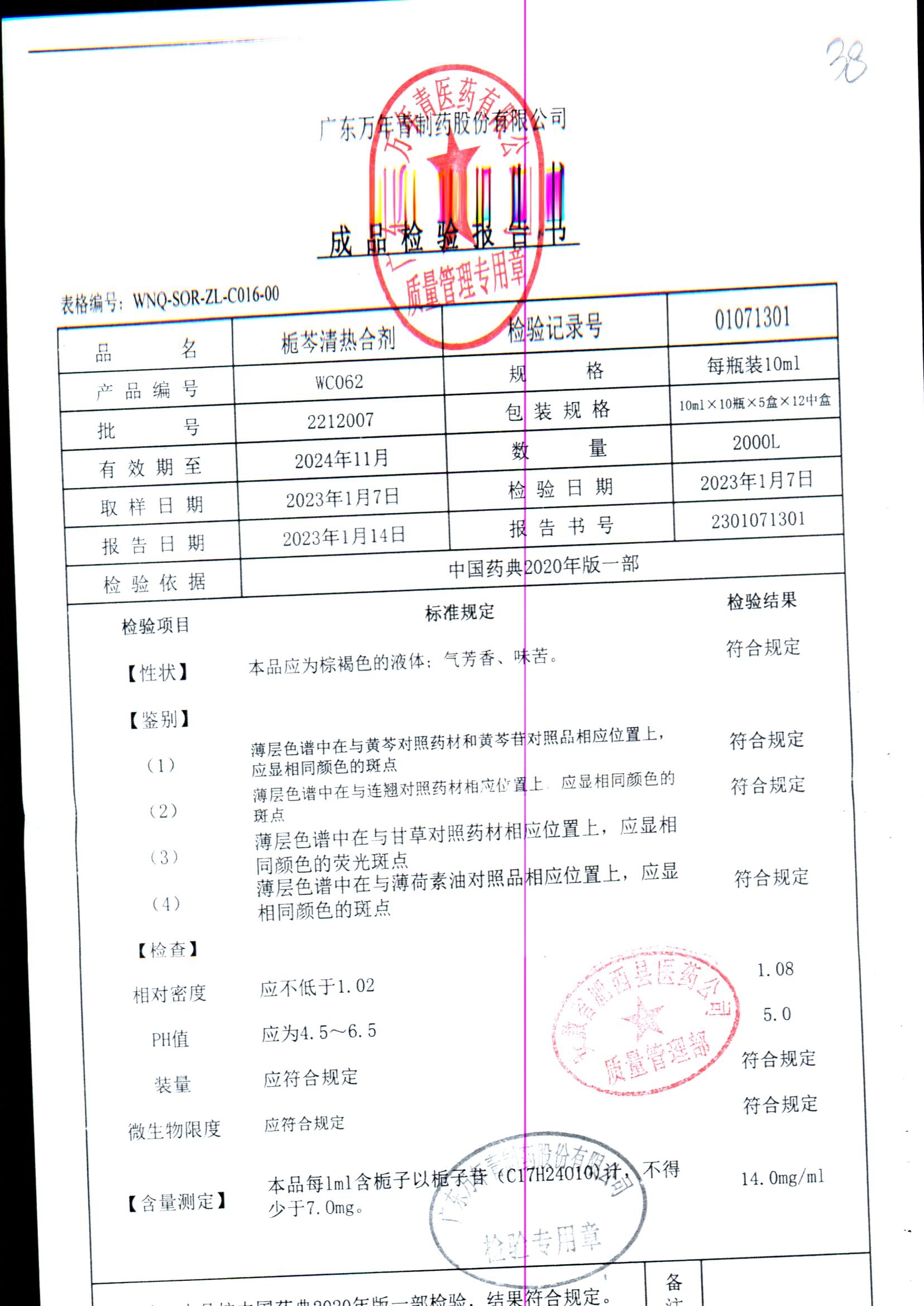 | 名稱 | 規(guī)格 | 批號(hào) | 藥檢報(bào)告 |