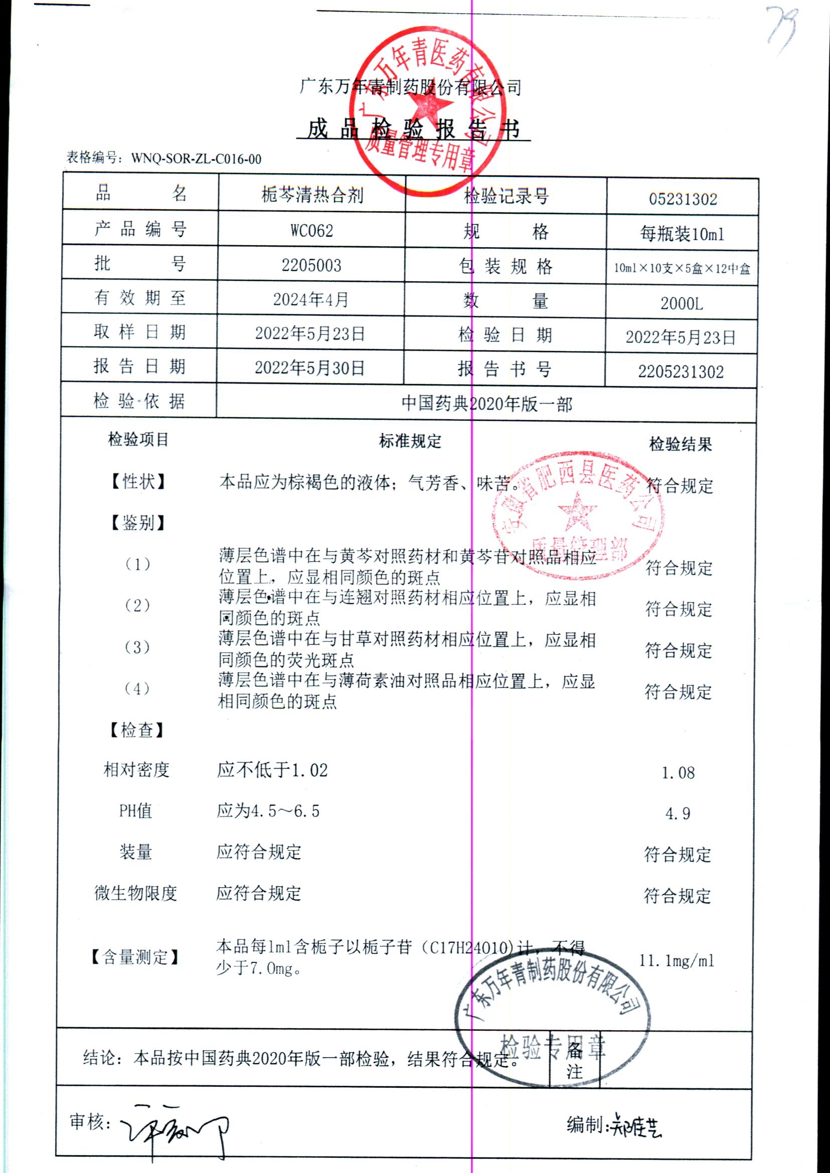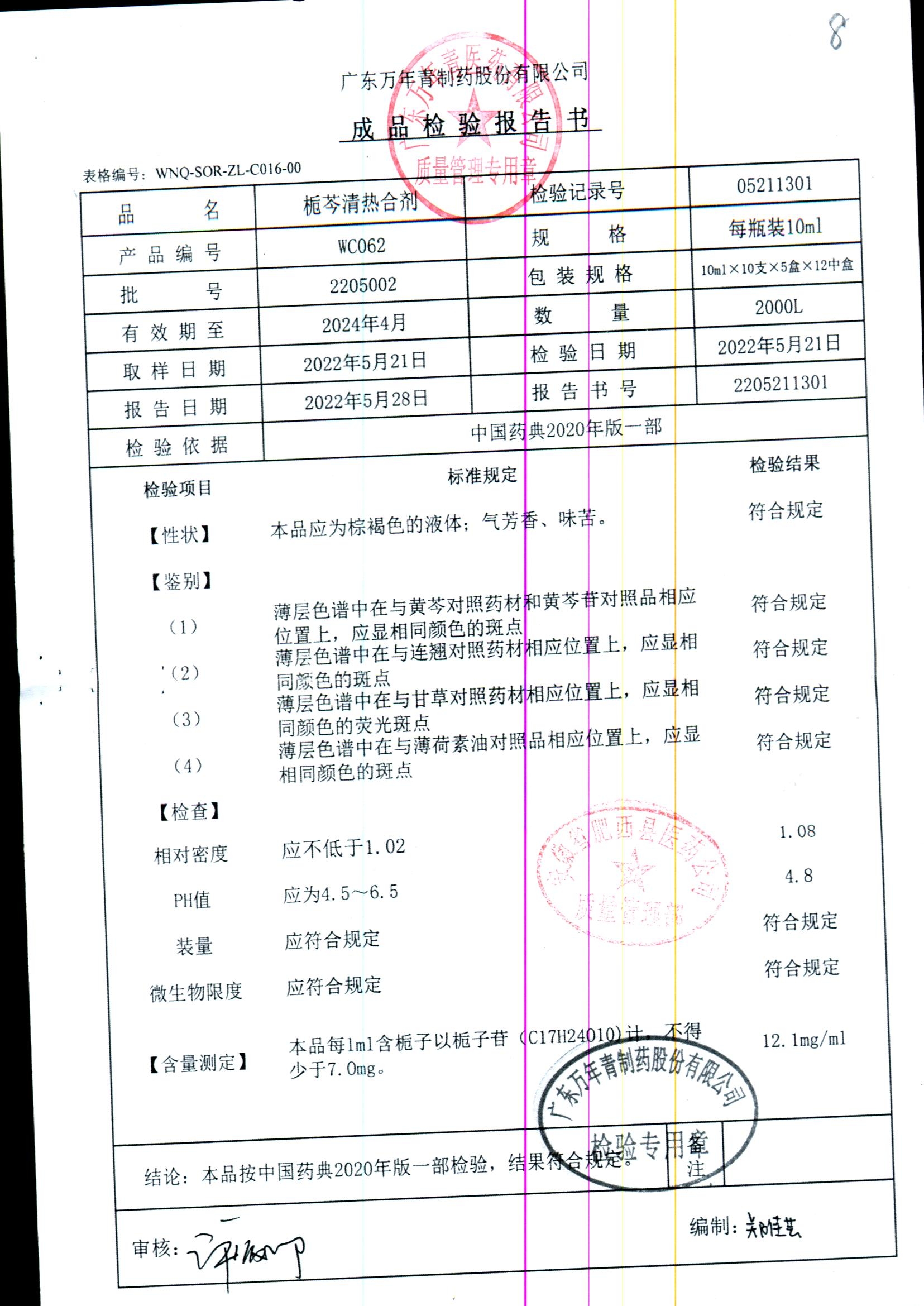 | 梔芩清熱合劑 | 10ml*10瓶 | 2203001 | 查看詳情 |
