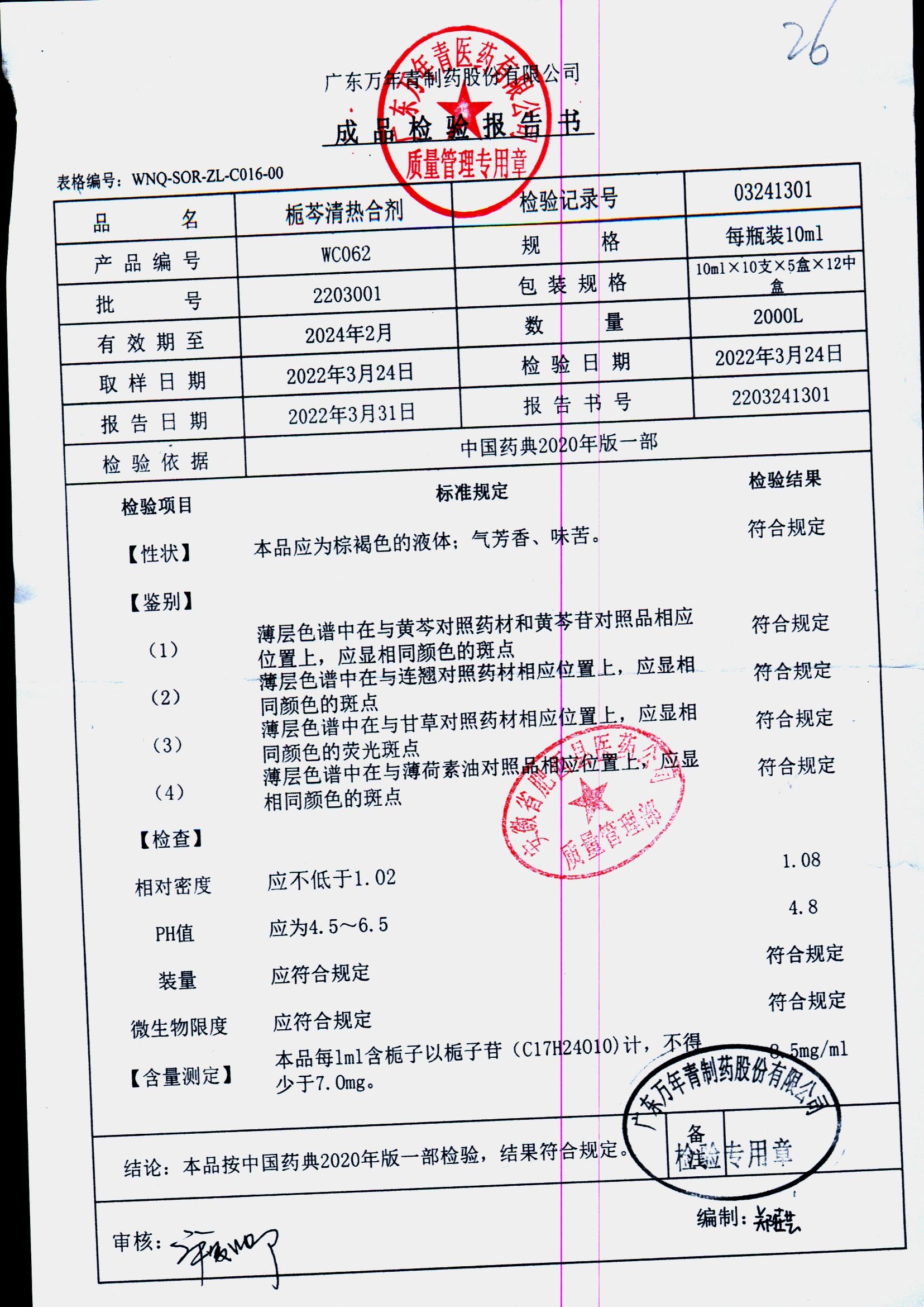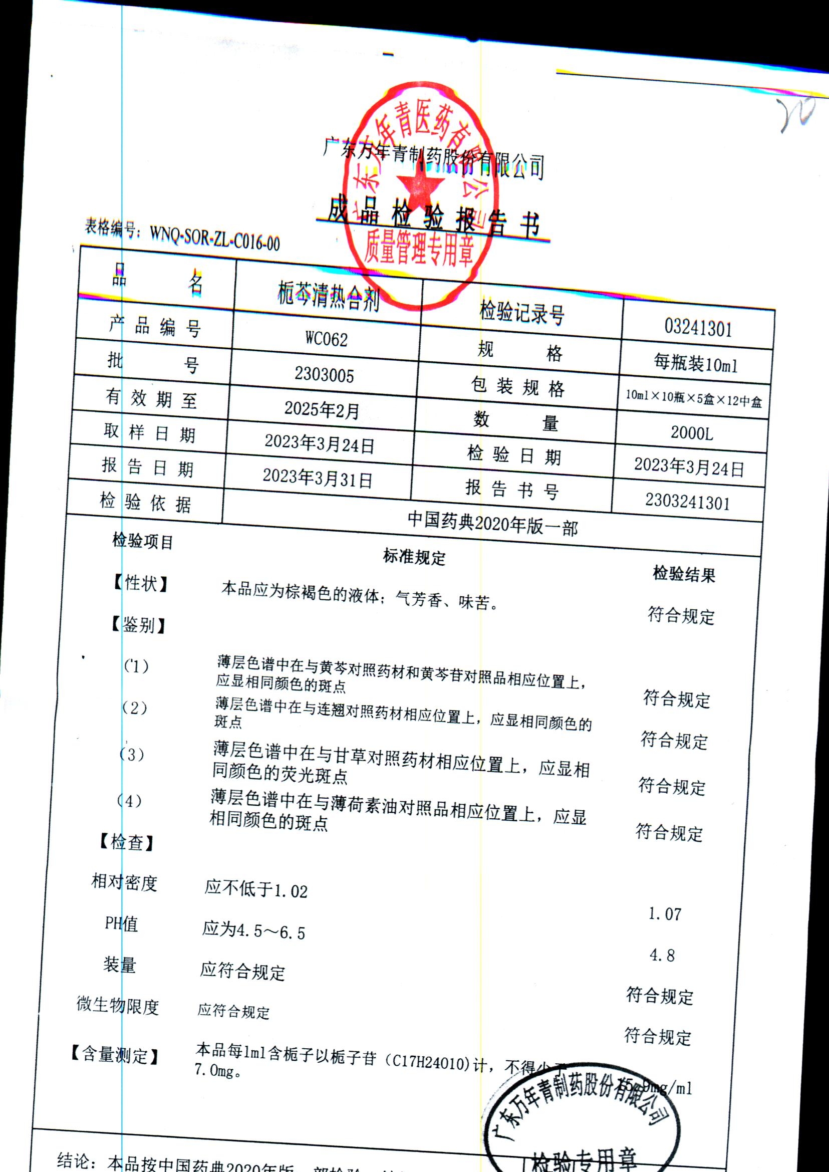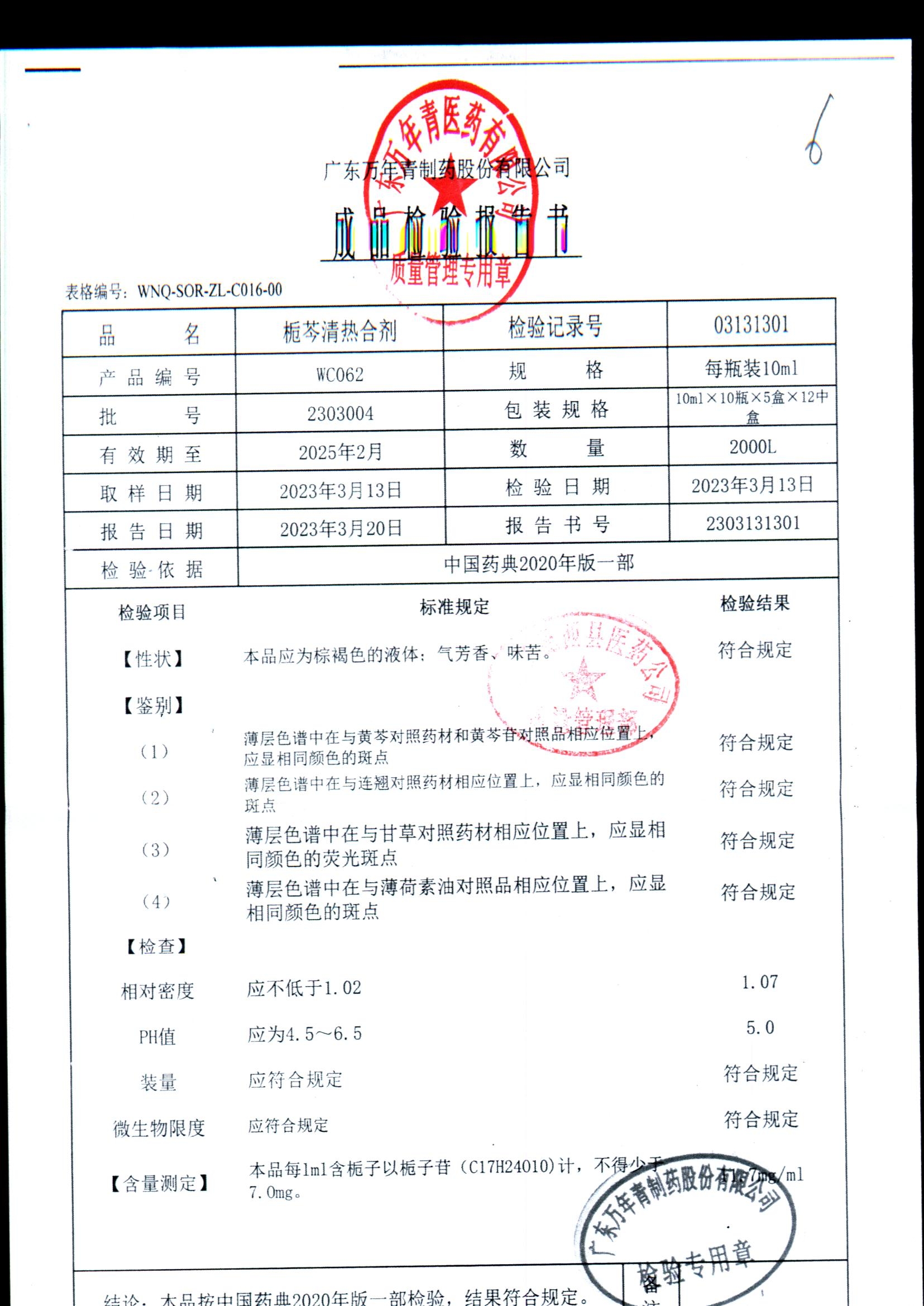 | 梔芩清熱合劑 | 10ml*10瓶 | 191103 | 查看詳情 |