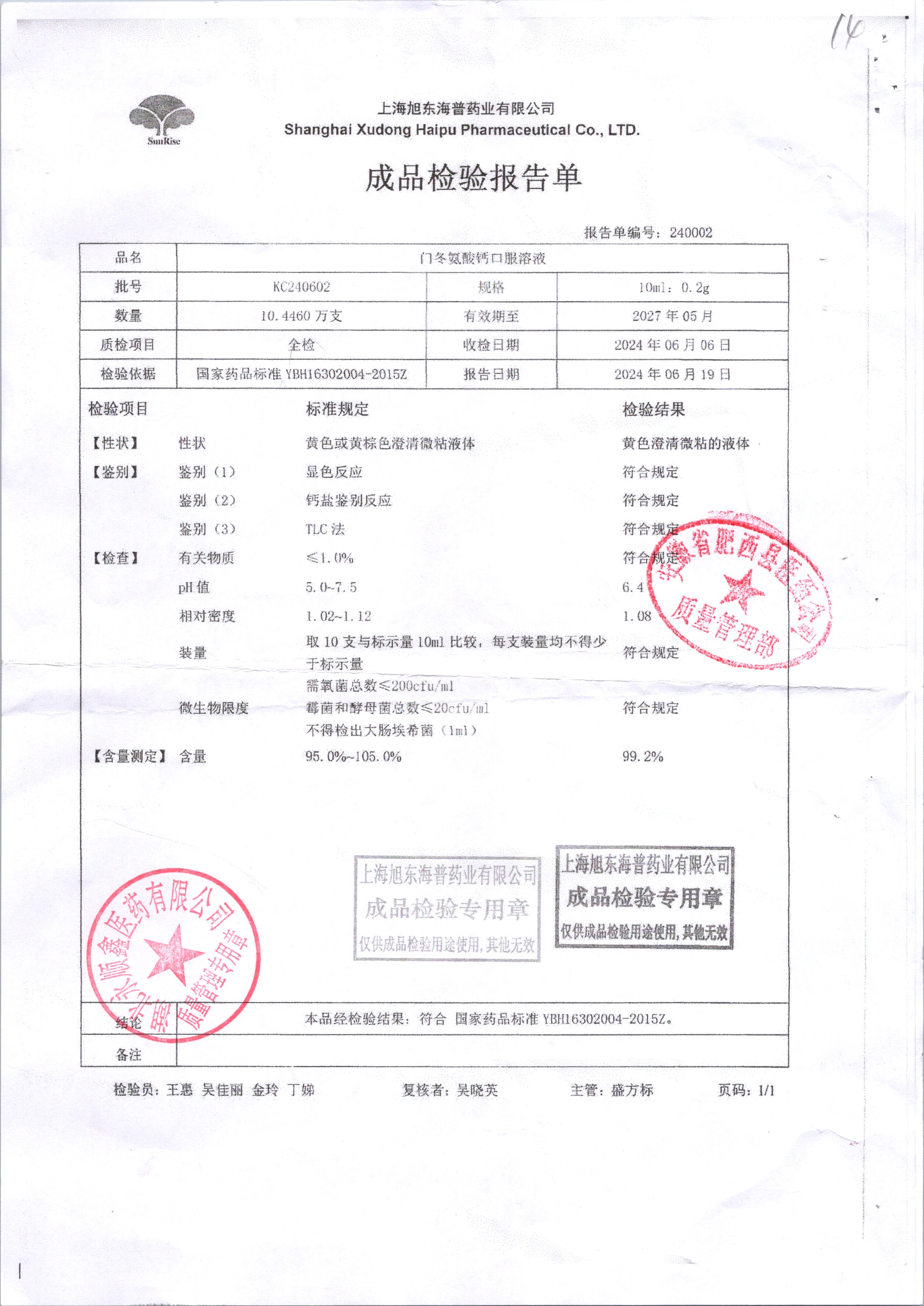 名稱 規(guī)格 批號(hào) 藥檢報(bào)告