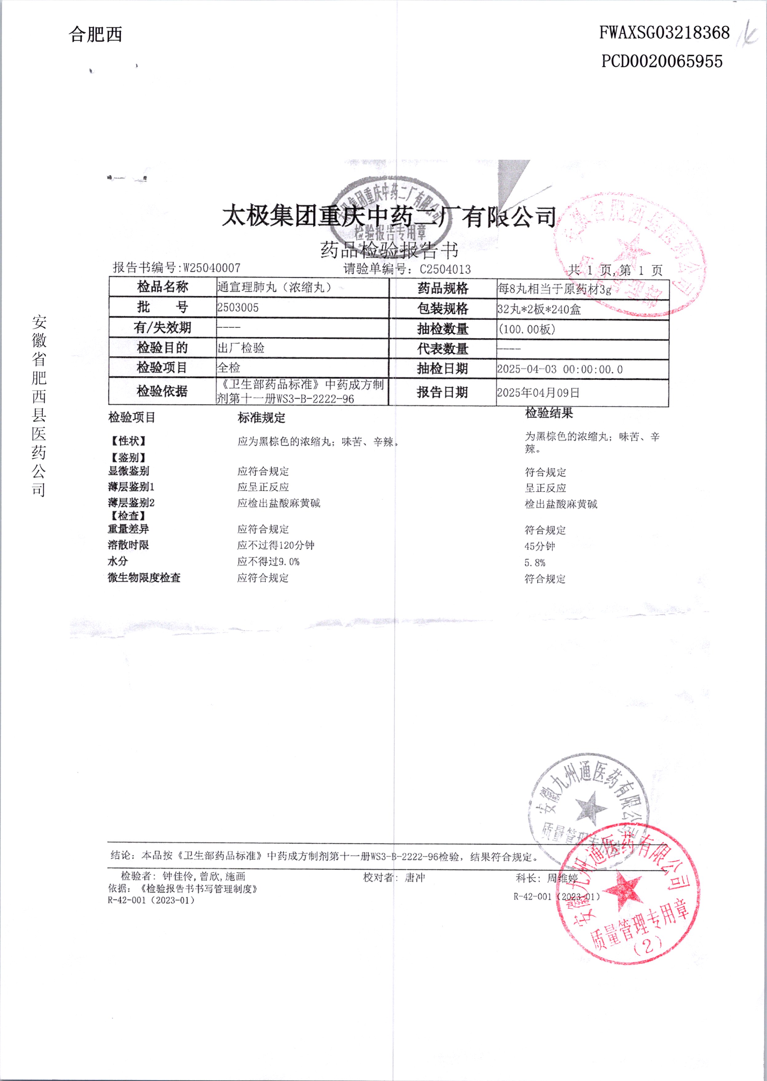 名稱 規(guī)格 批號(hào) 藥檢報(bào)告