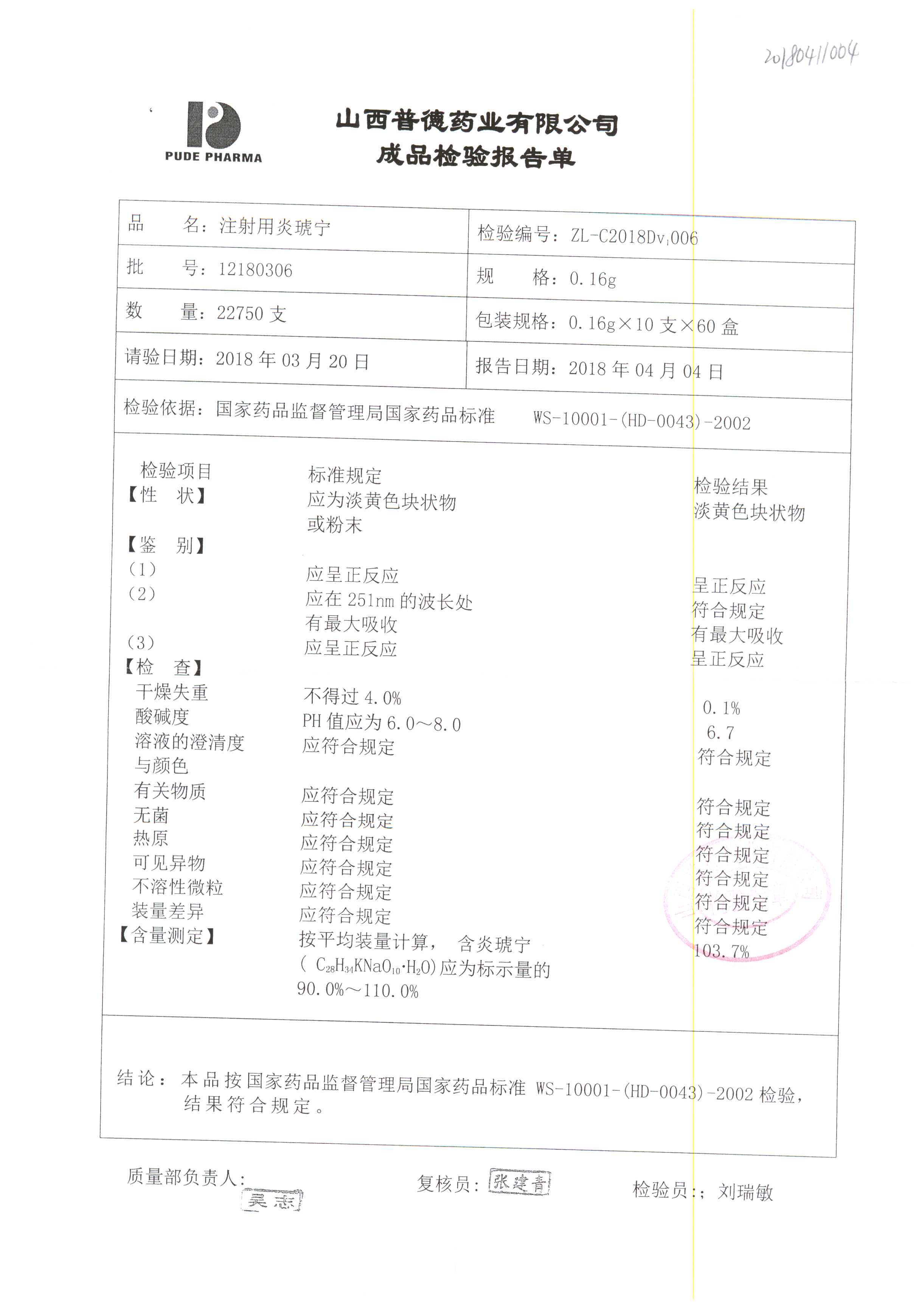 | 名稱 | 規(guī)格 | 批號(hào) | 藥檢報(bào)告 |