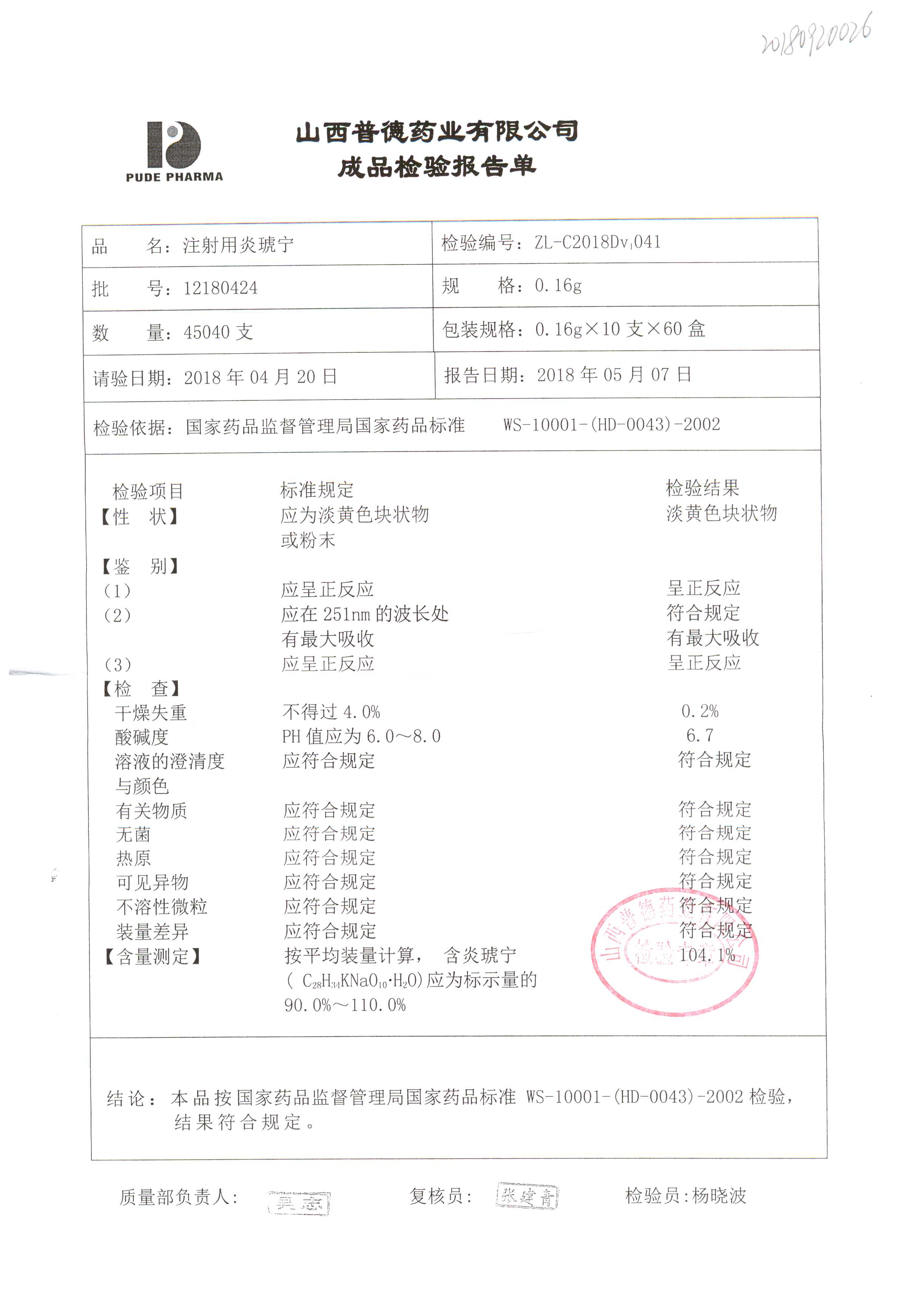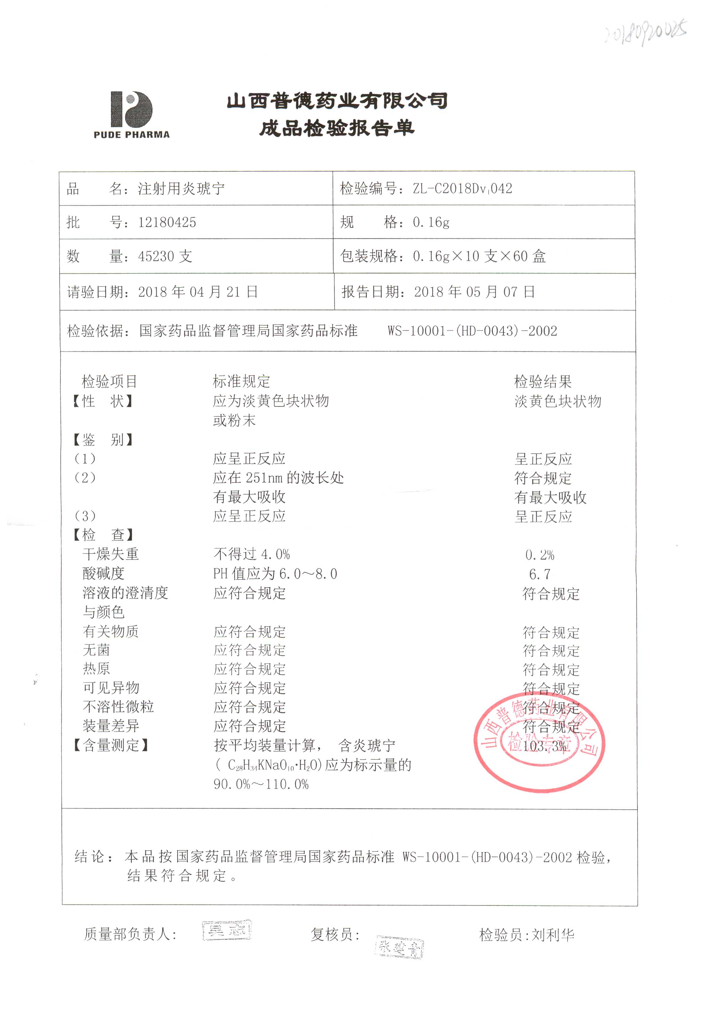 | 注射用炎琥寧 | 0.16g*10支 | 01190804 | 查看詳情 |