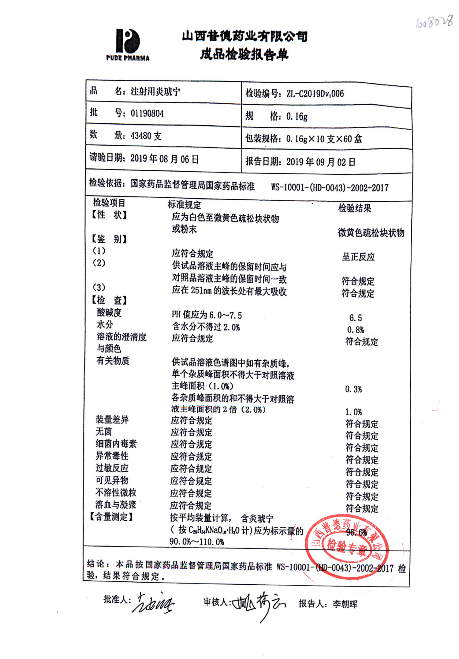 | 注射用炎琥寧 | 0.16g*10支 | 01190808 | 查看詳情 |