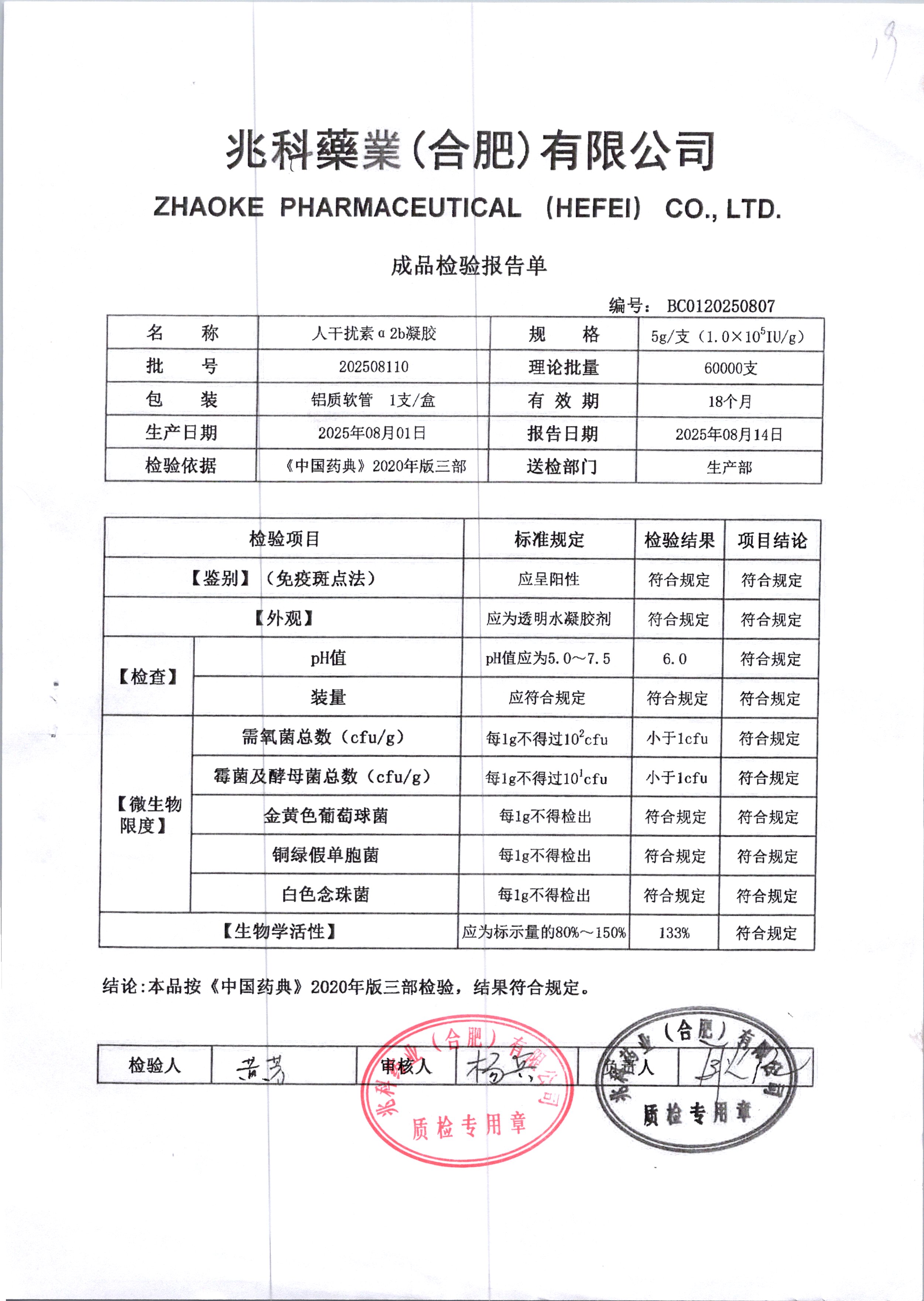 人干擾素a2凝膠 5g 202508110/2 查看詳情