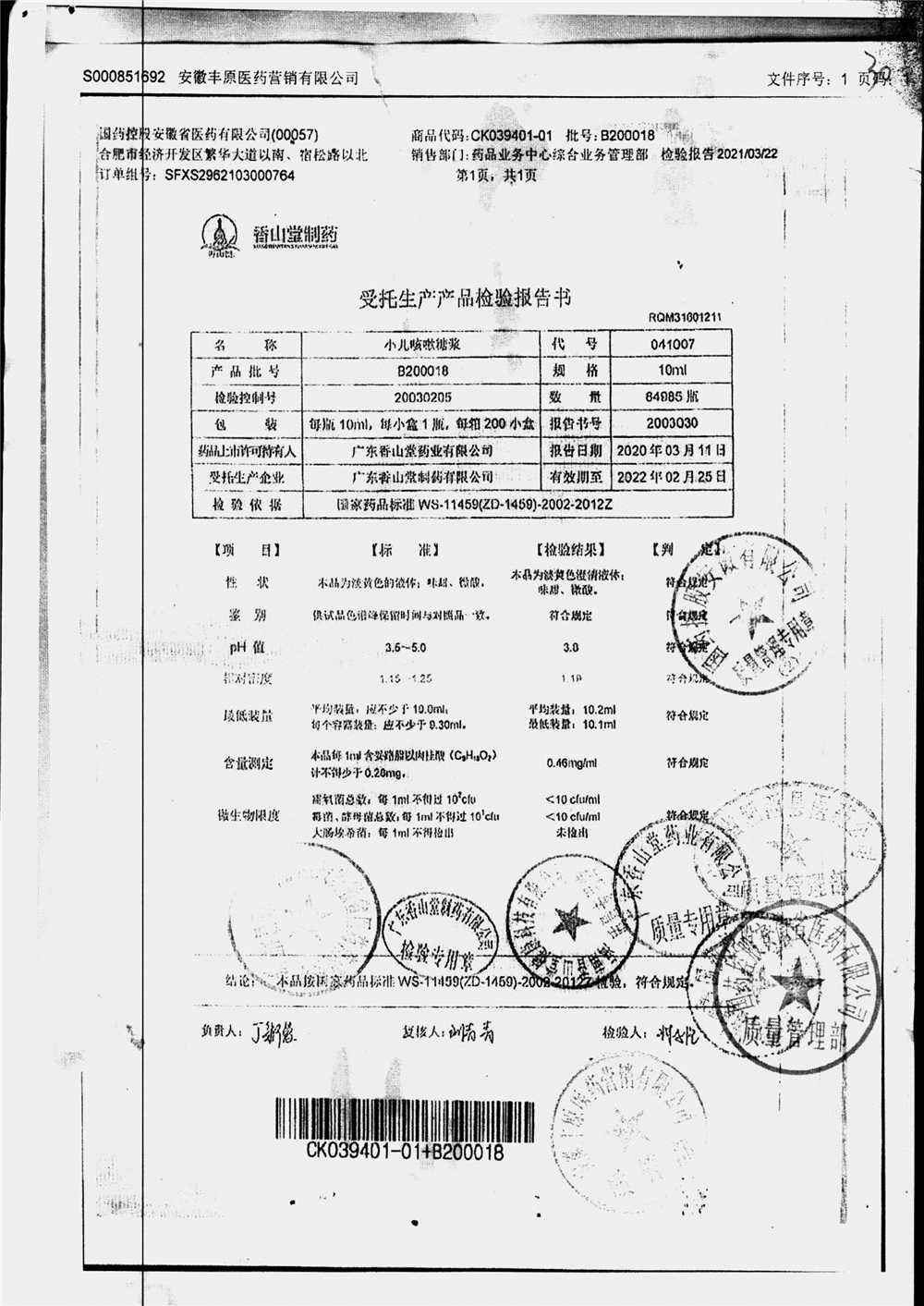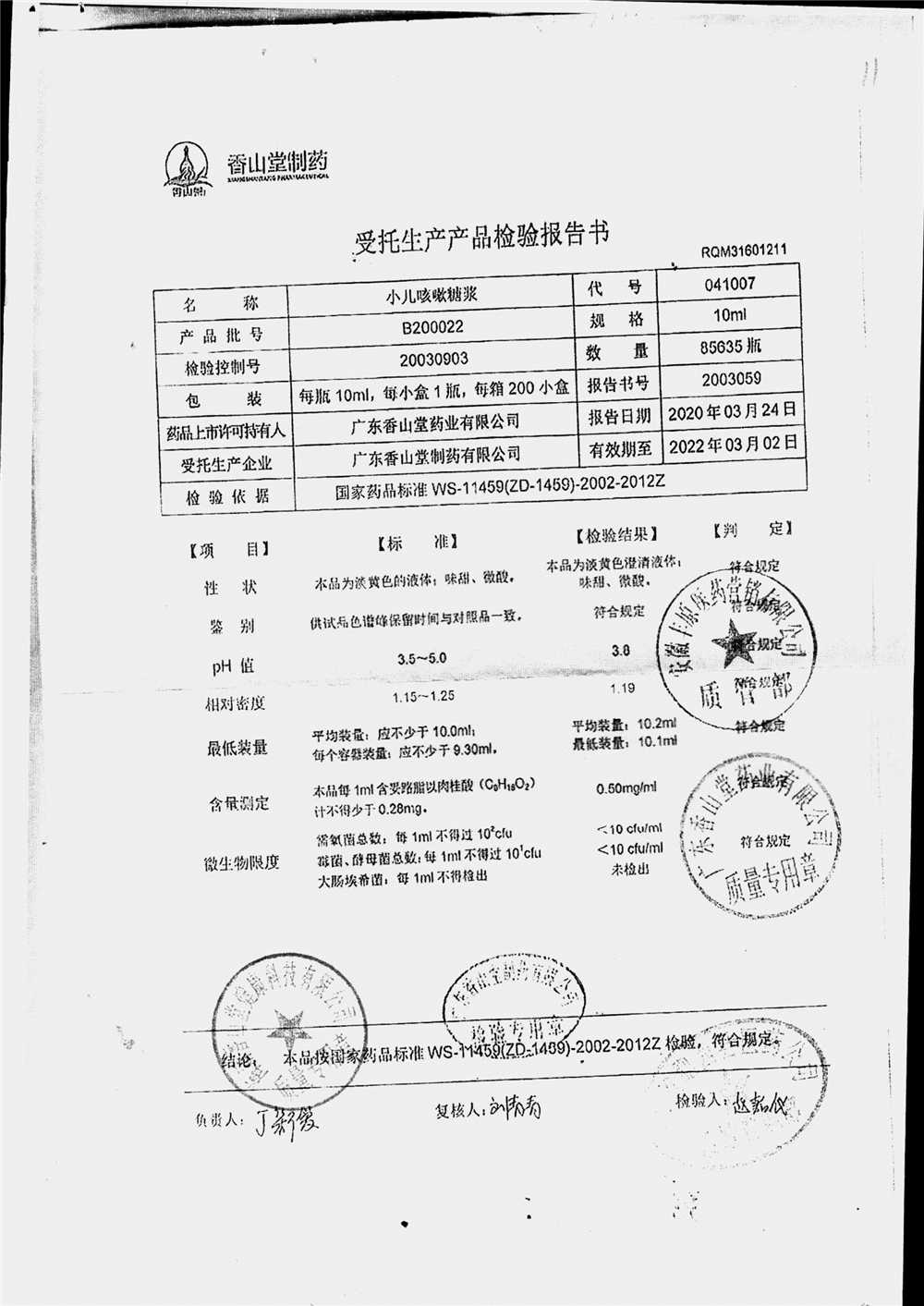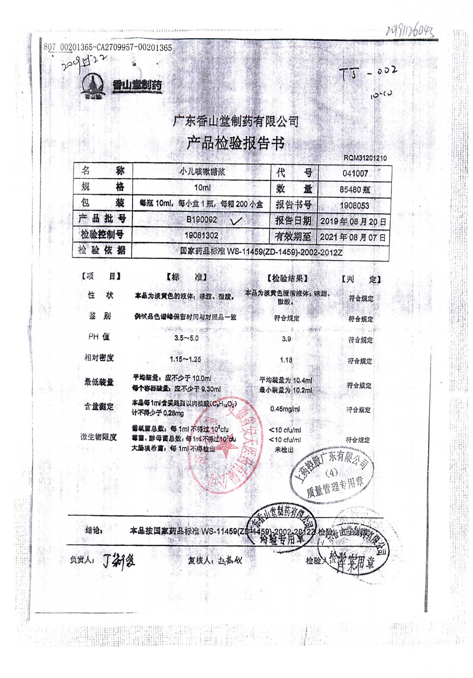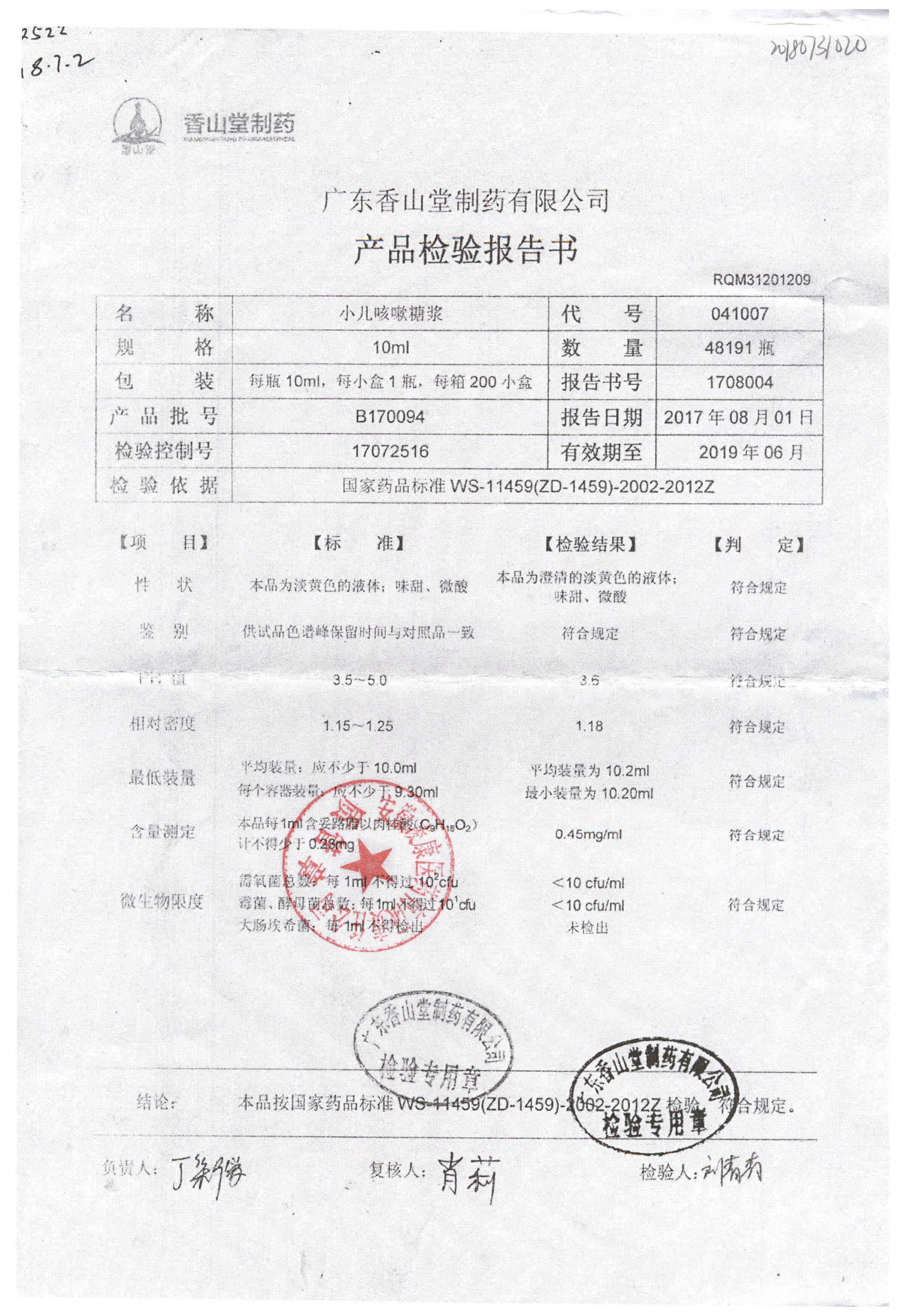 | 小兒咳嗽糖漿 | 10ml | B190117 | 查看詳情 |