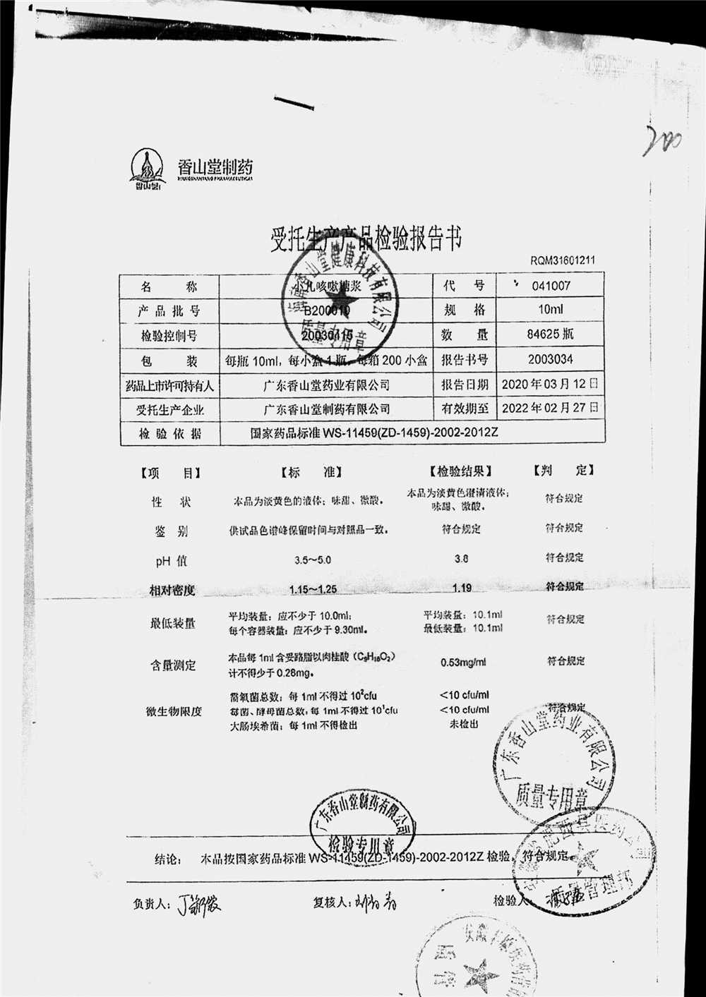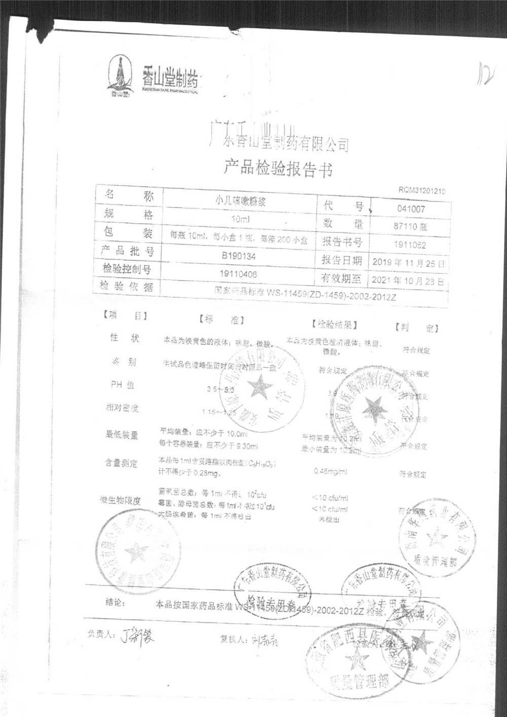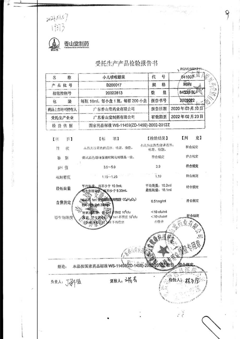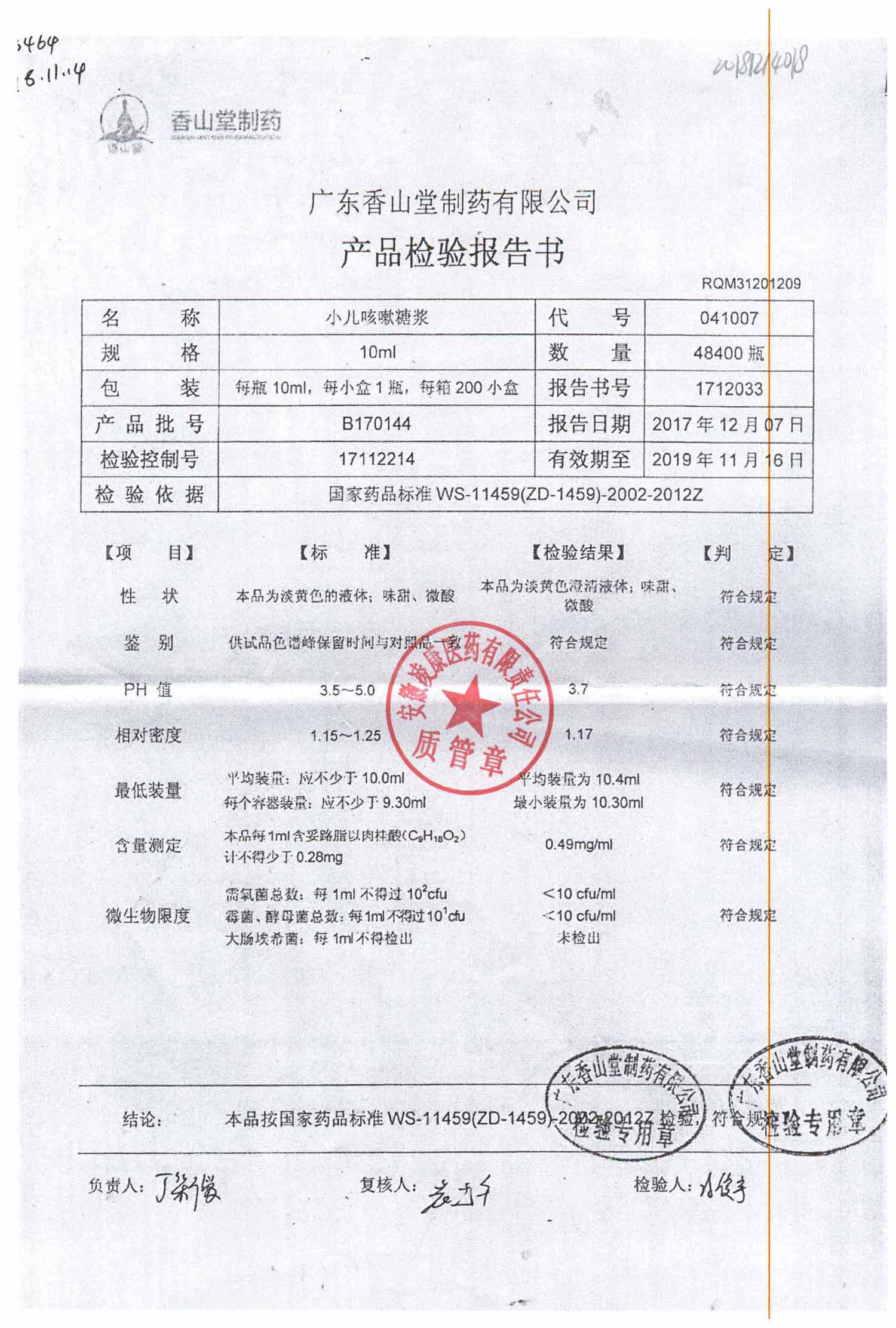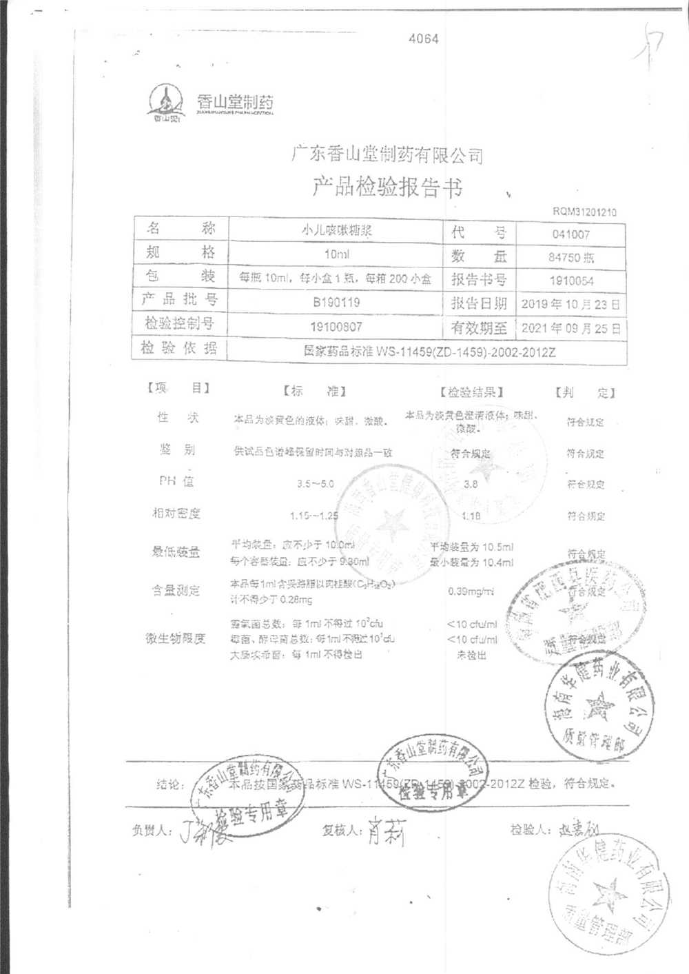 | 小兒咳嗽糖漿 | 10ml | B190117 | 查看詳情 |