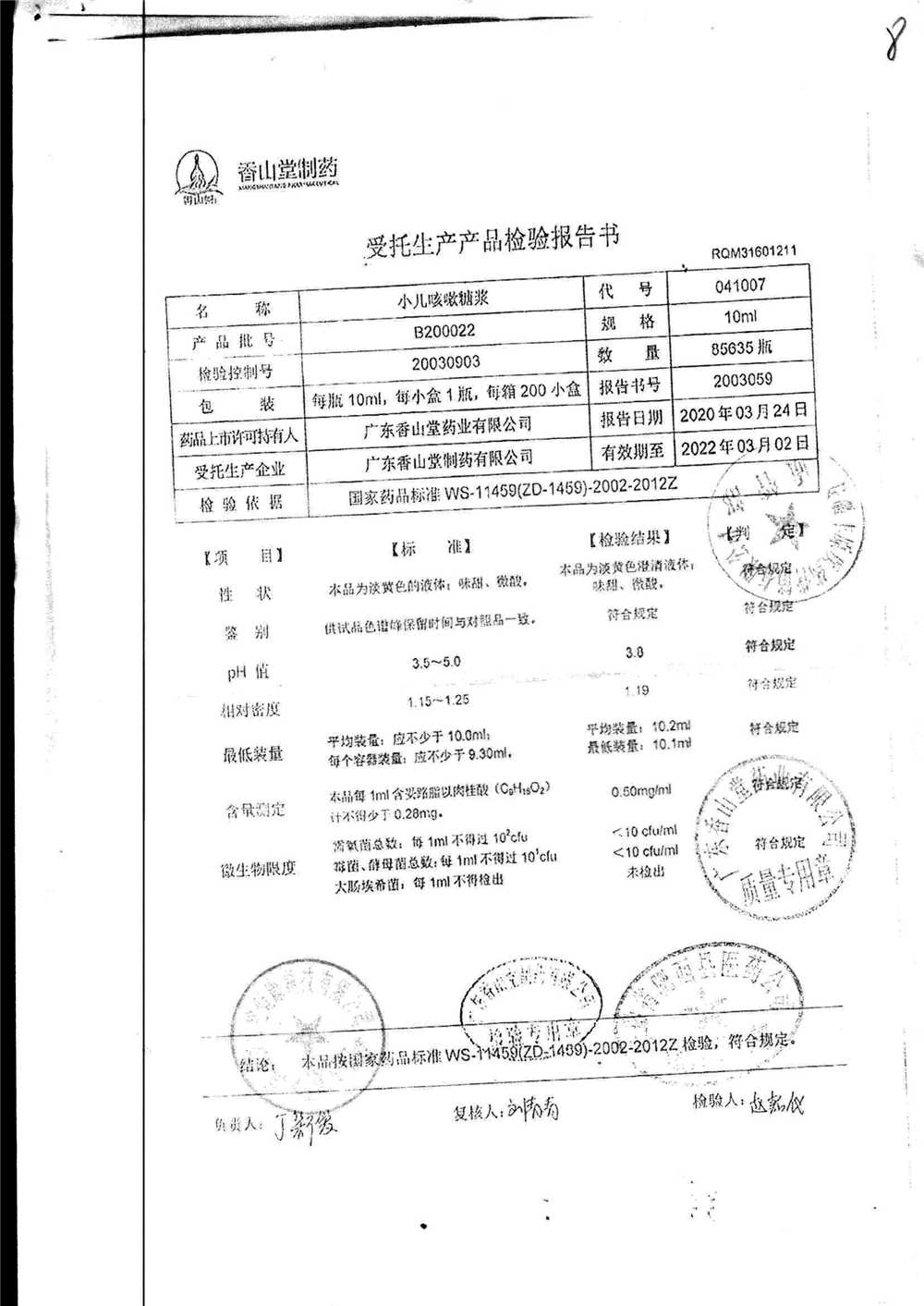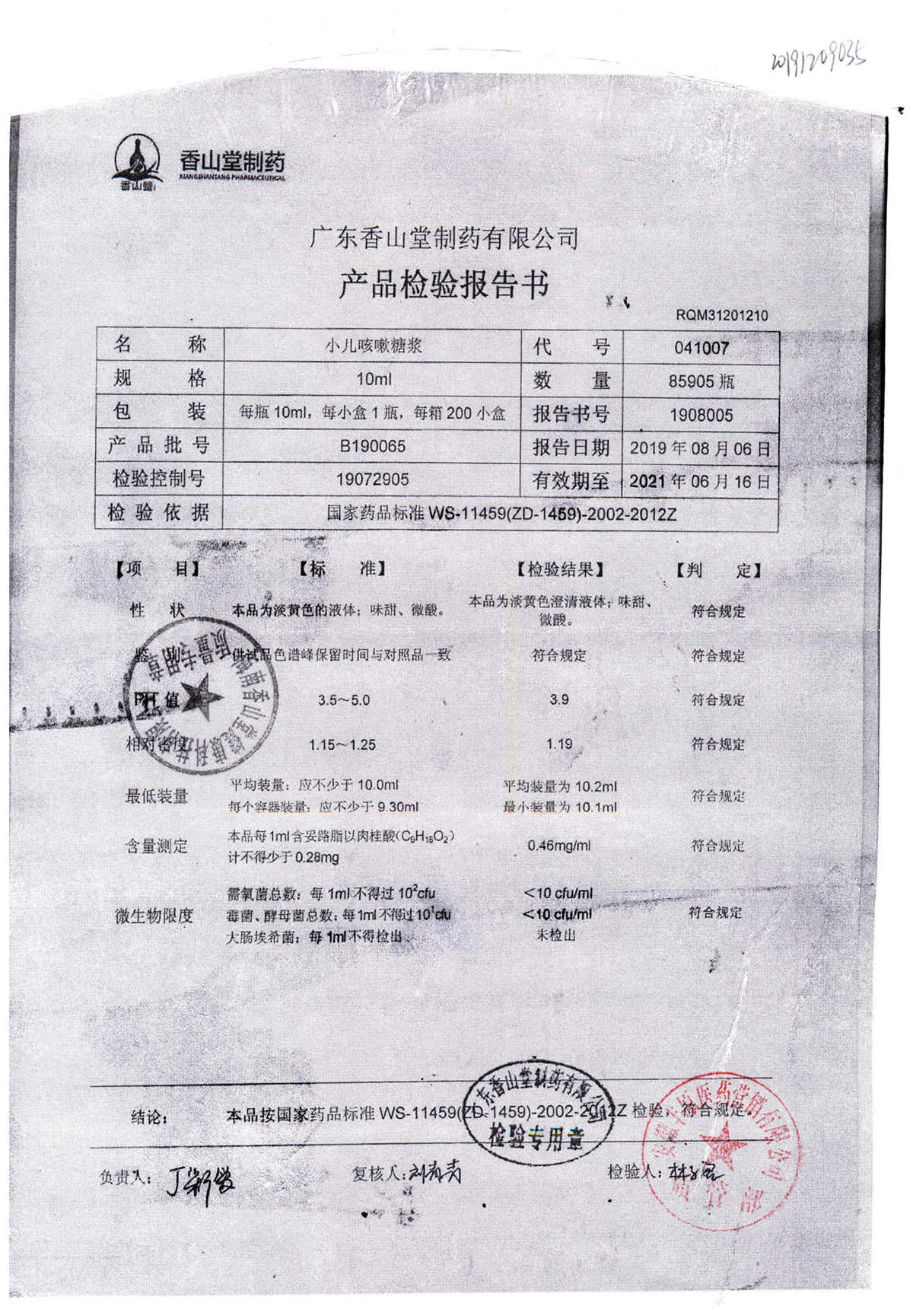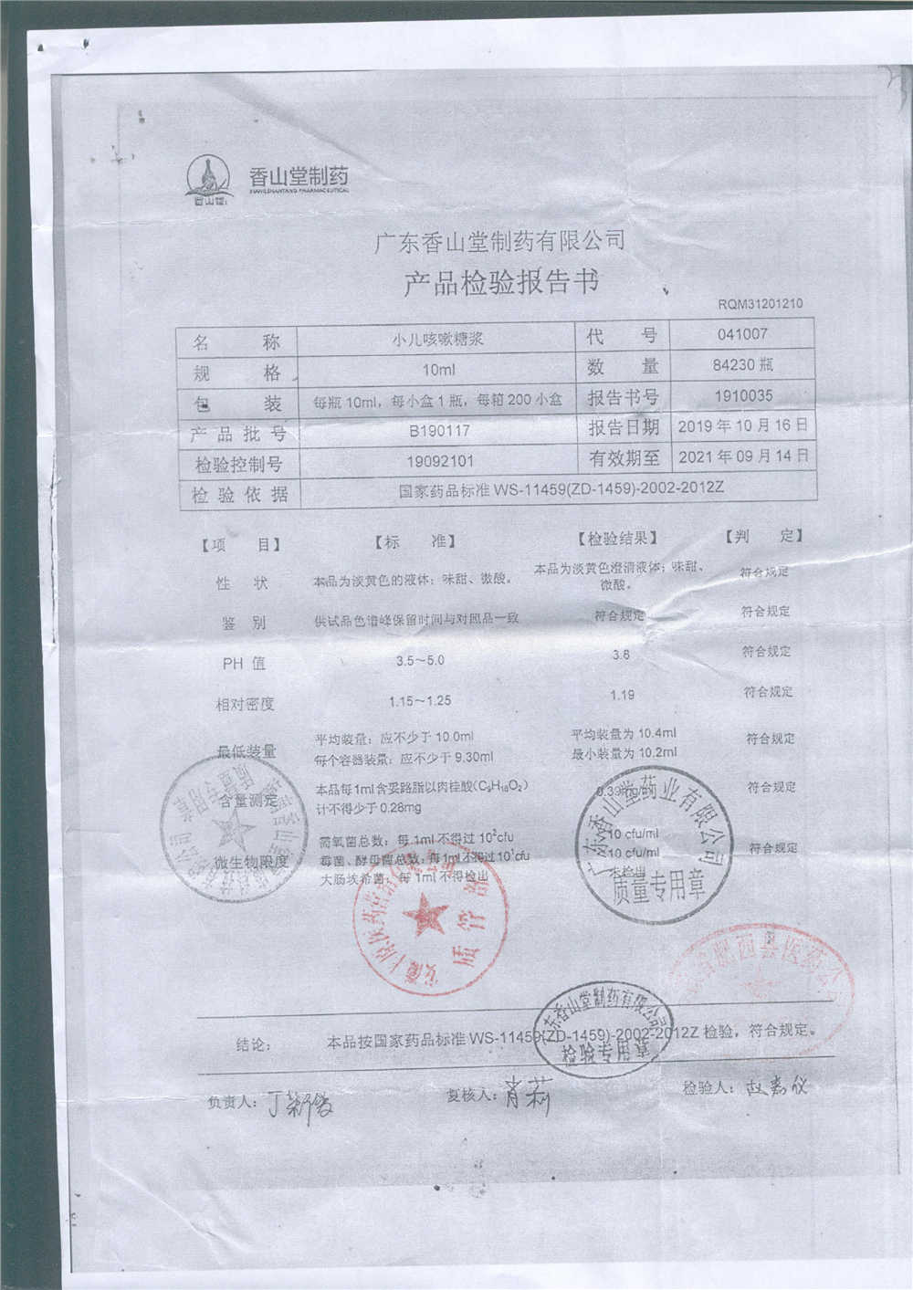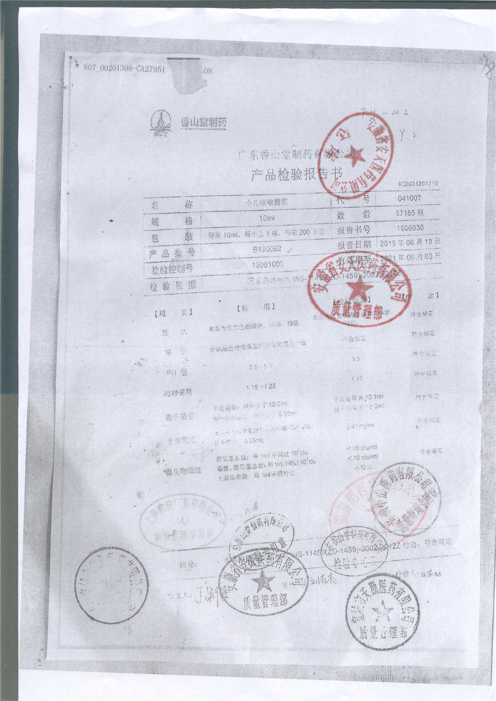 | 小兒咳嗽糖漿 | 10ml | B190117 | 查看詳情 |