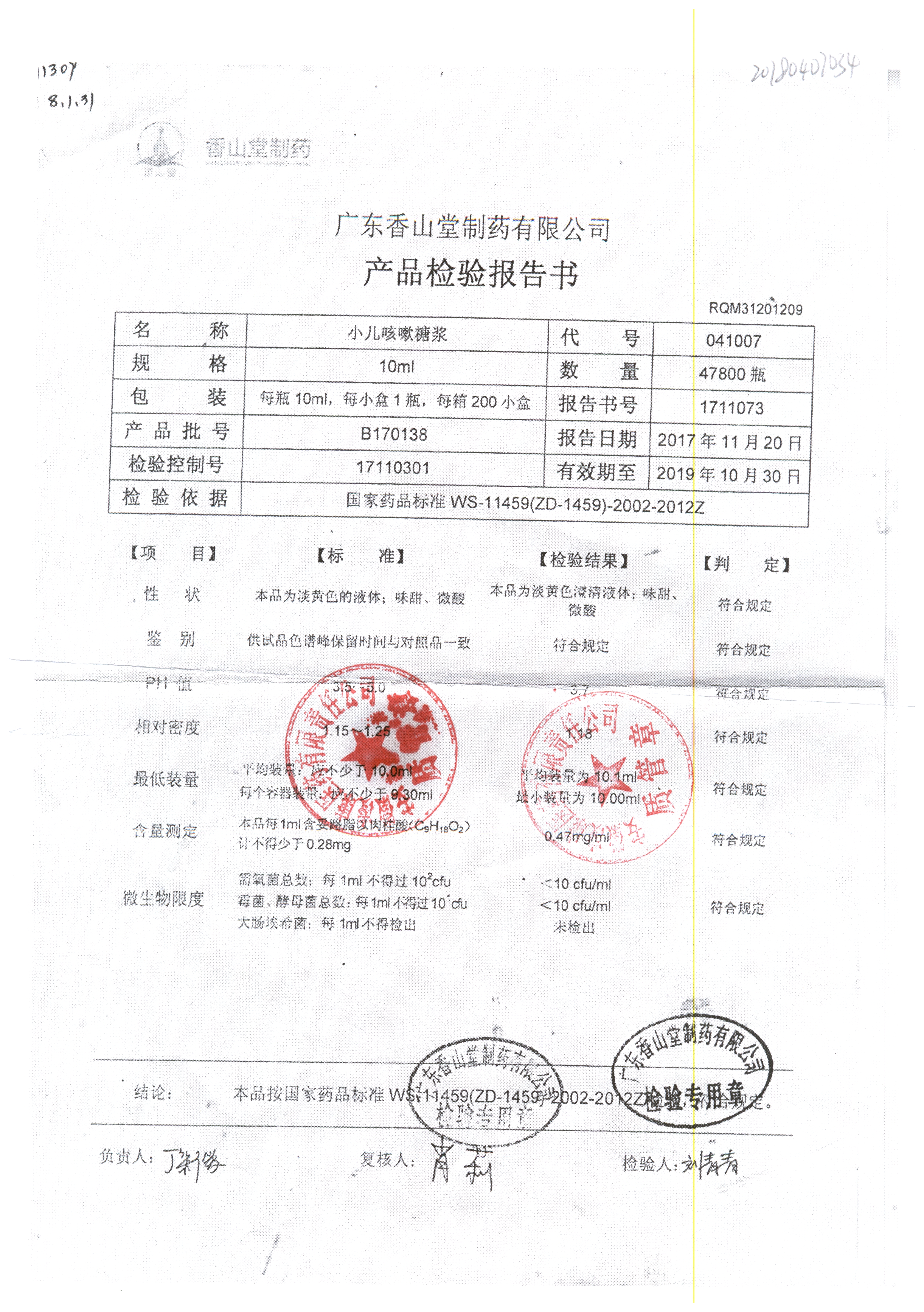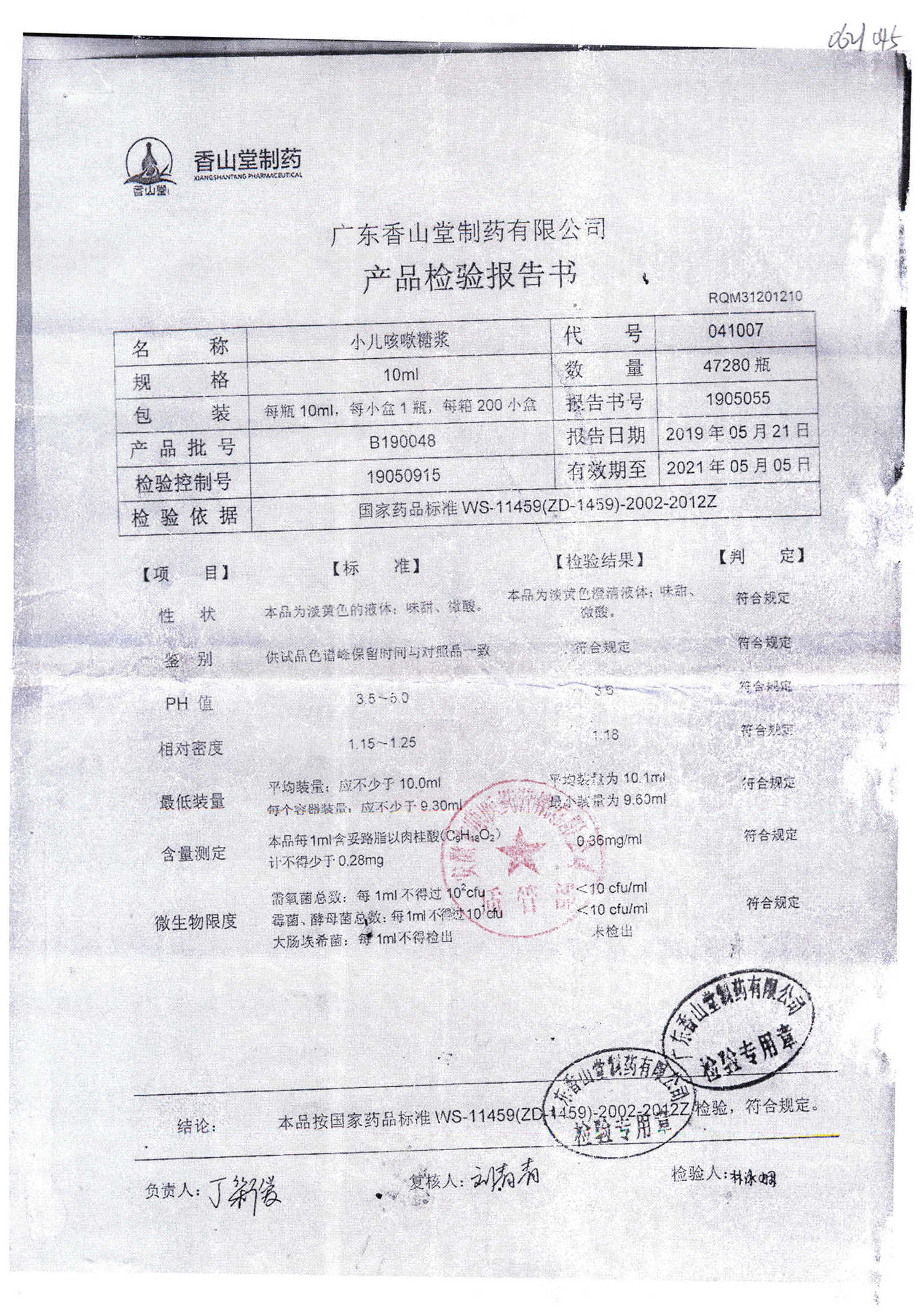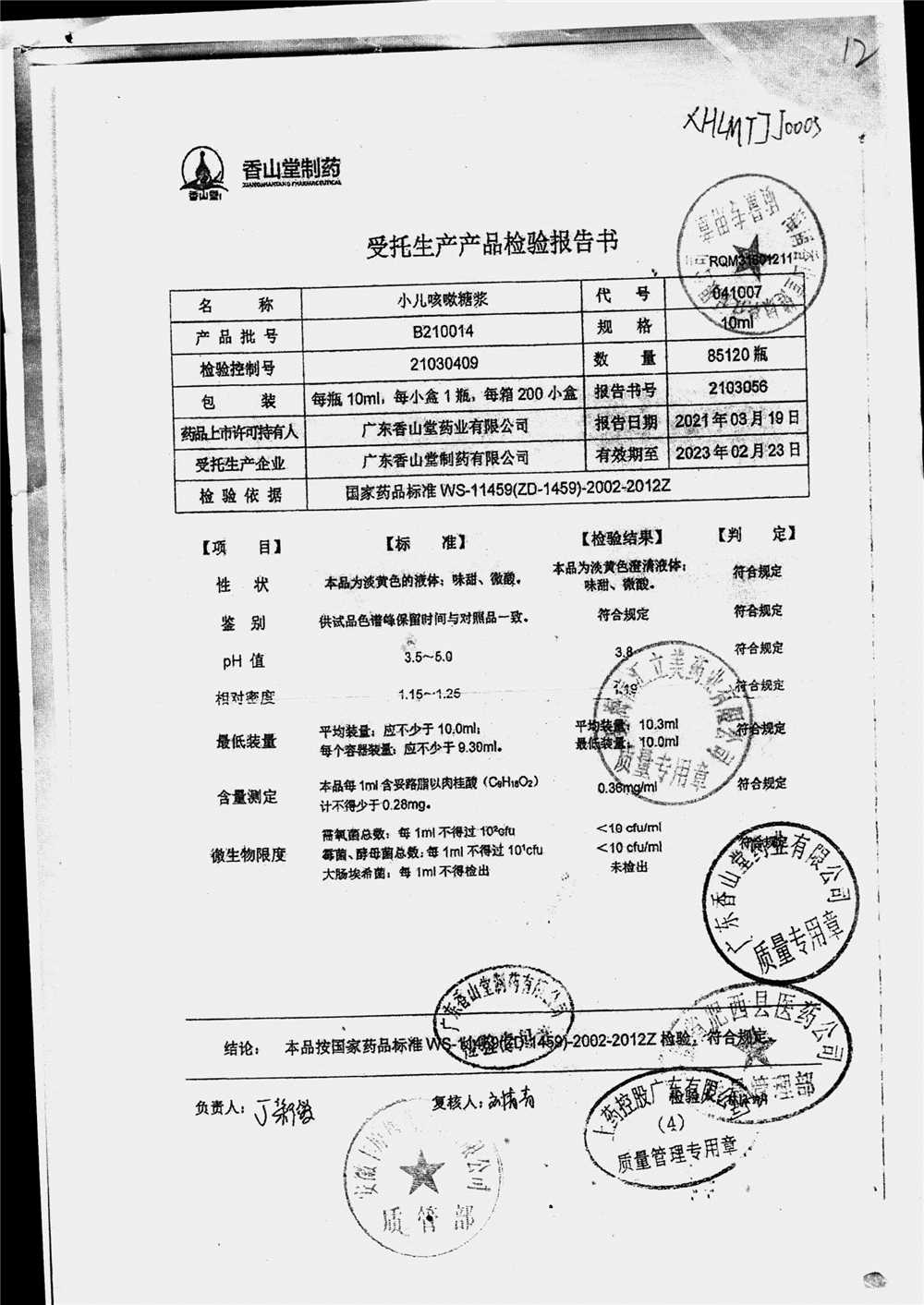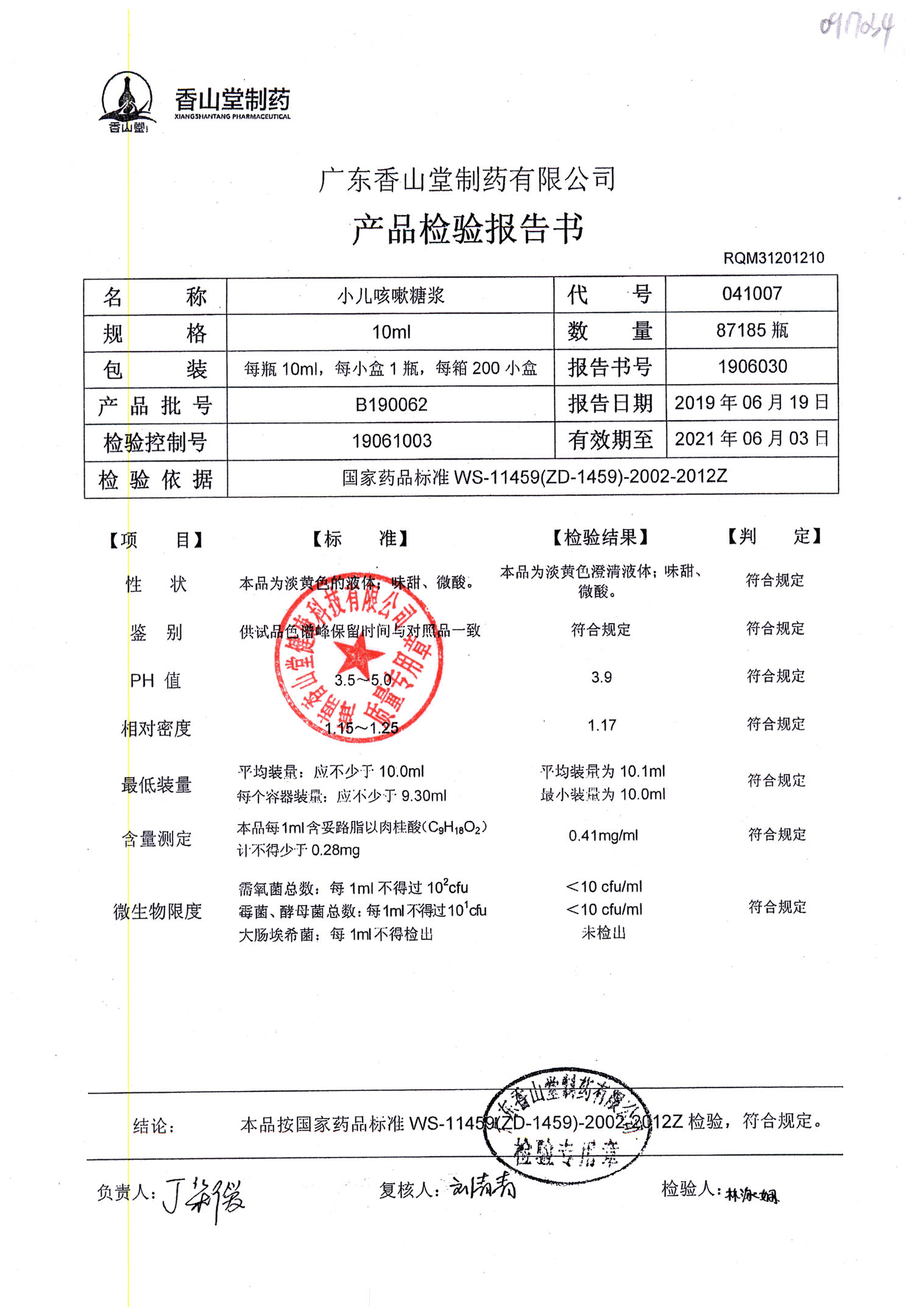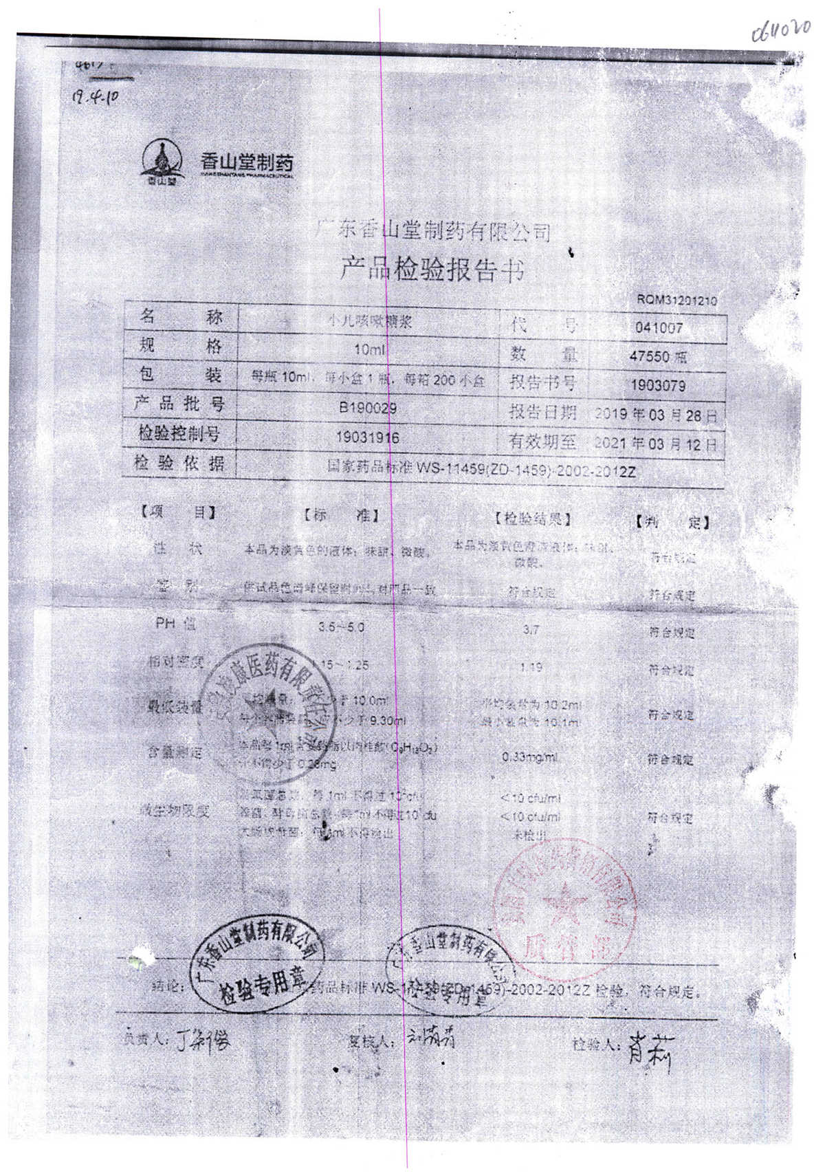 | 小兒咳嗽糖漿 | 10ml | B190117 | 查看詳情 |