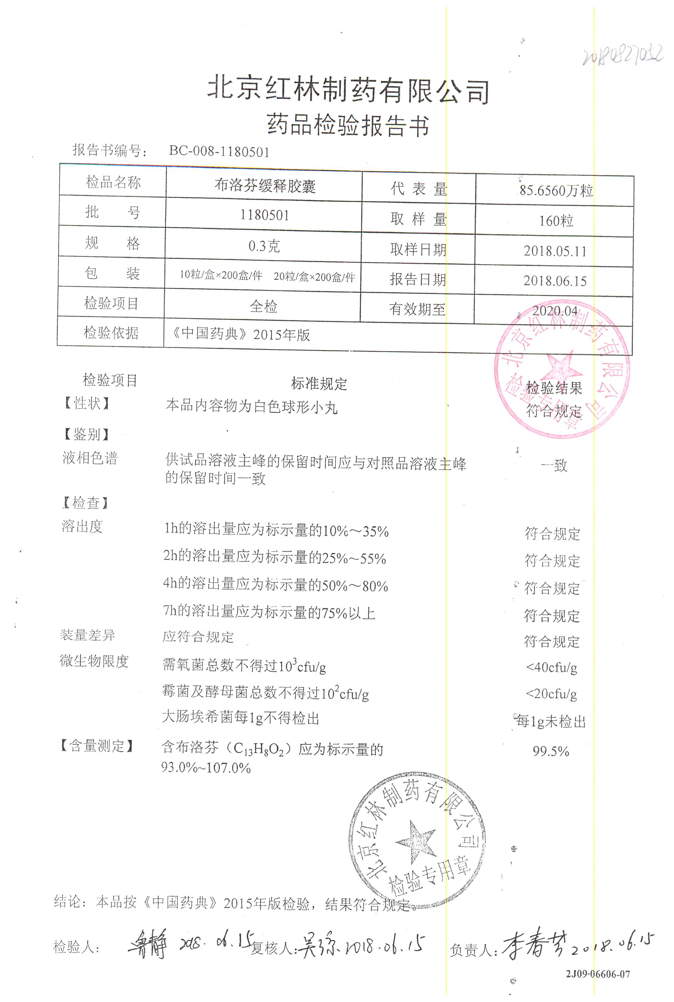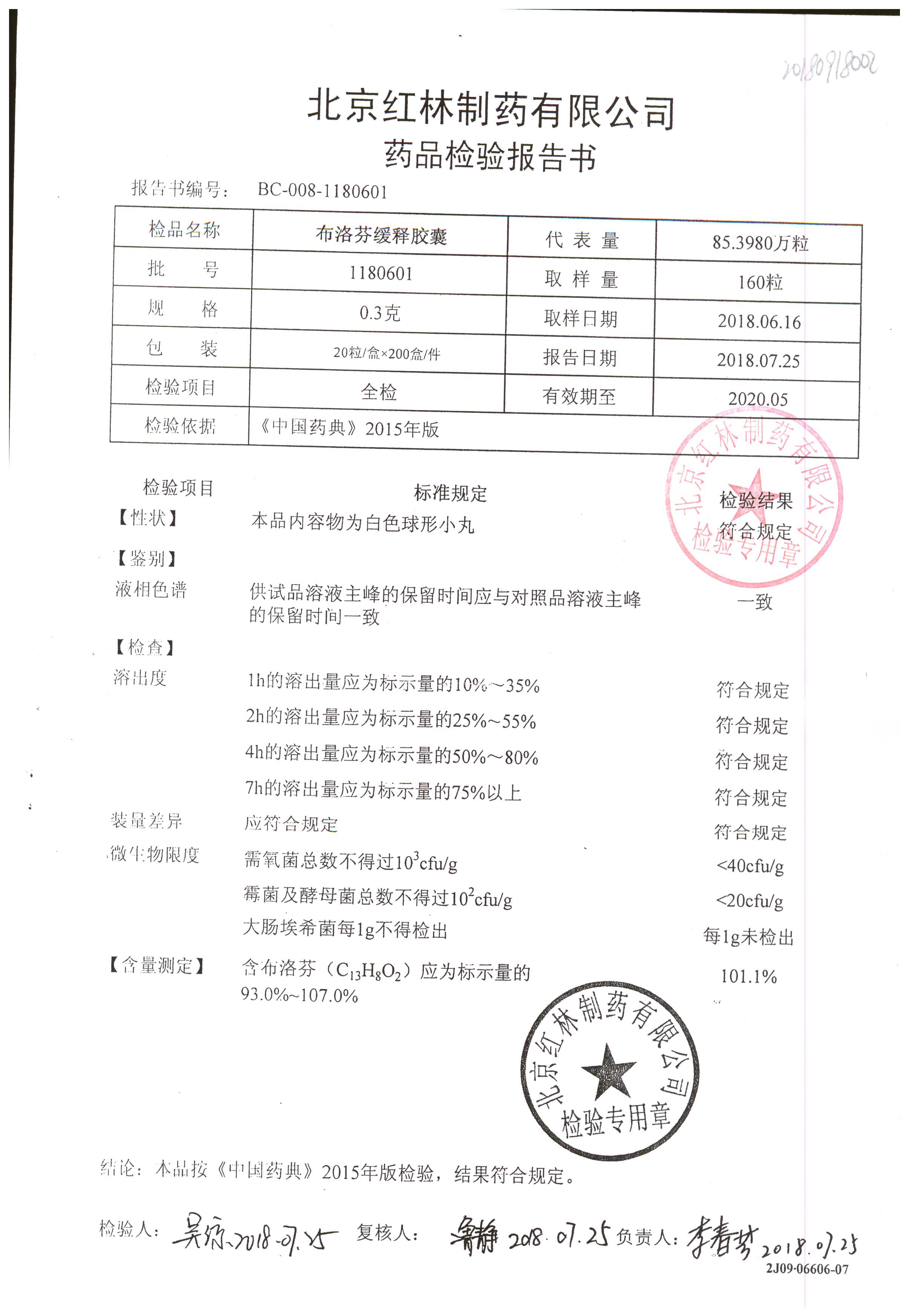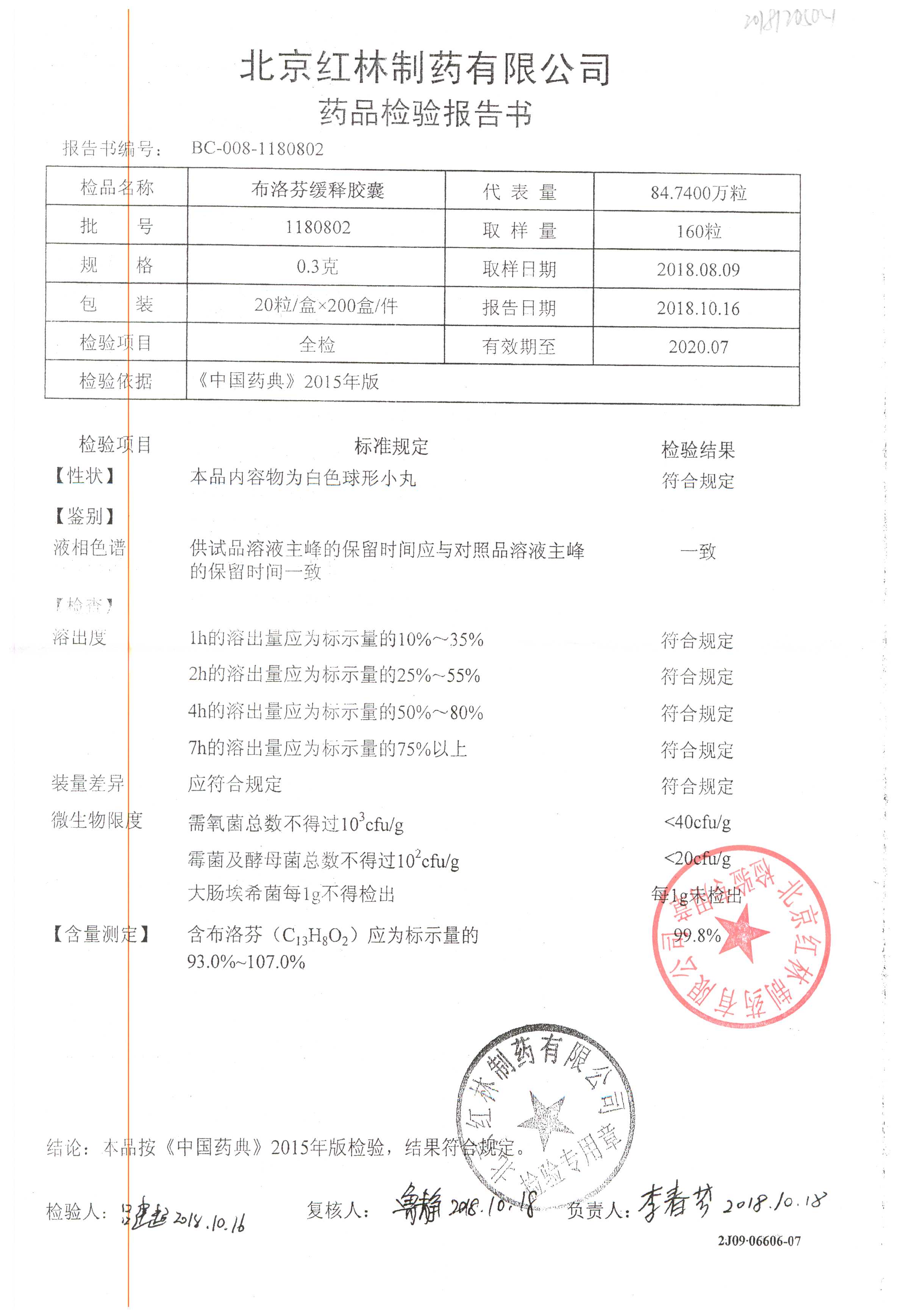 | 布洛芬緩釋膠囊 | 0.3g*20粒 | 1180601(2/2) | 查看詳情 |