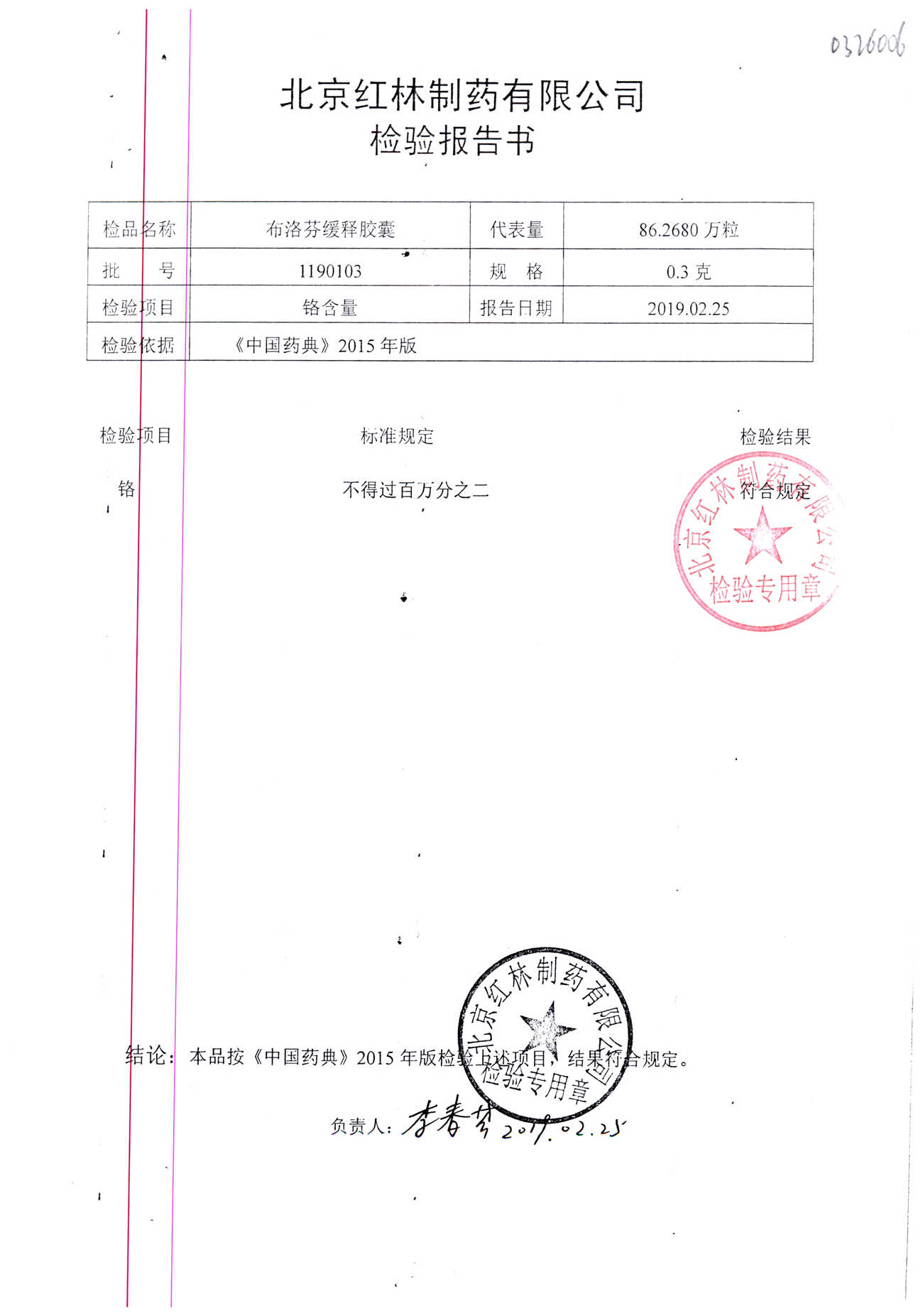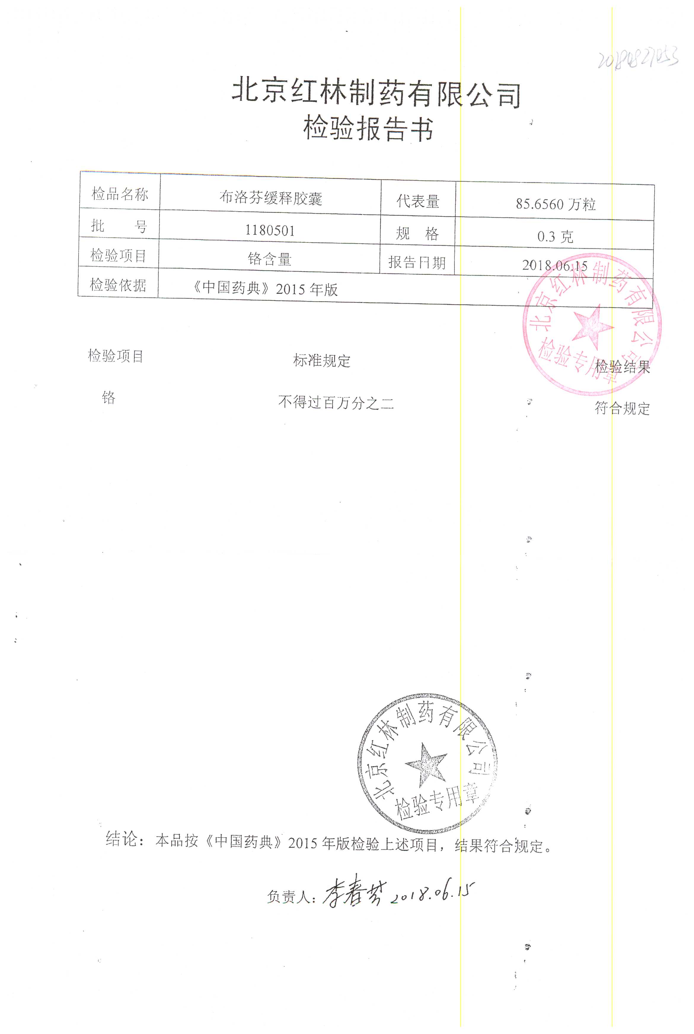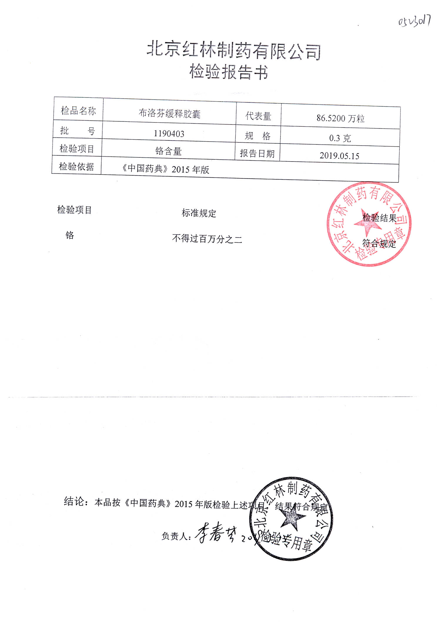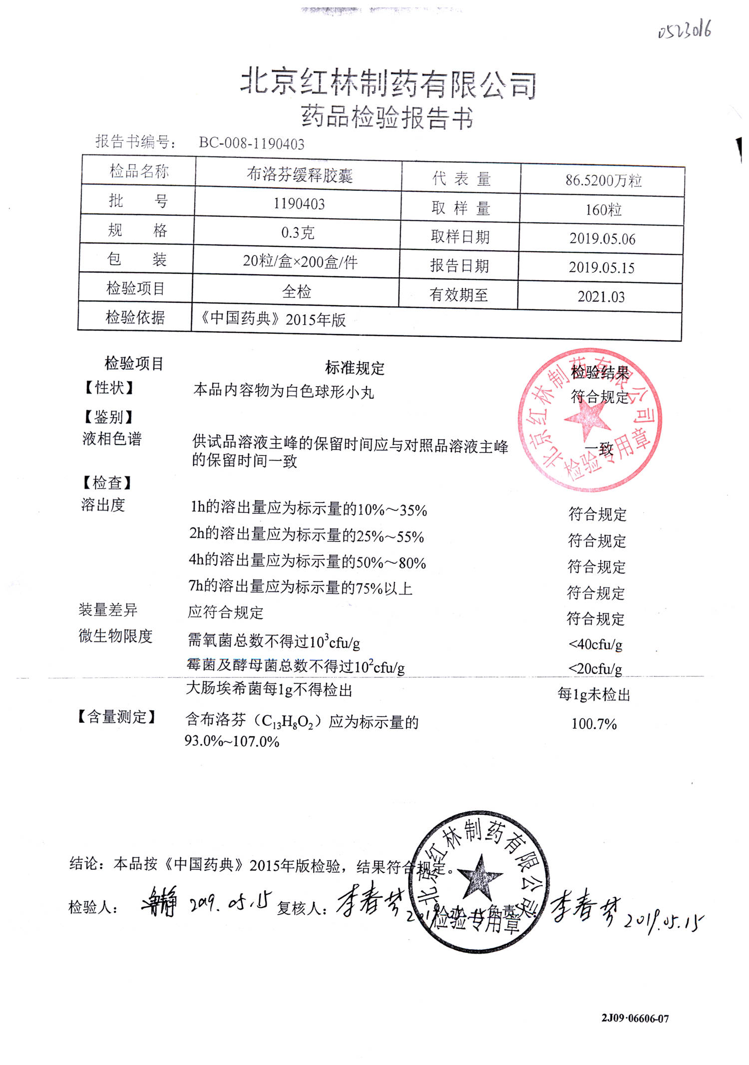 | 布洛芬緩釋膠囊 | 0.3g*20粒 | 1180603(2/2) | 查看詳情 |