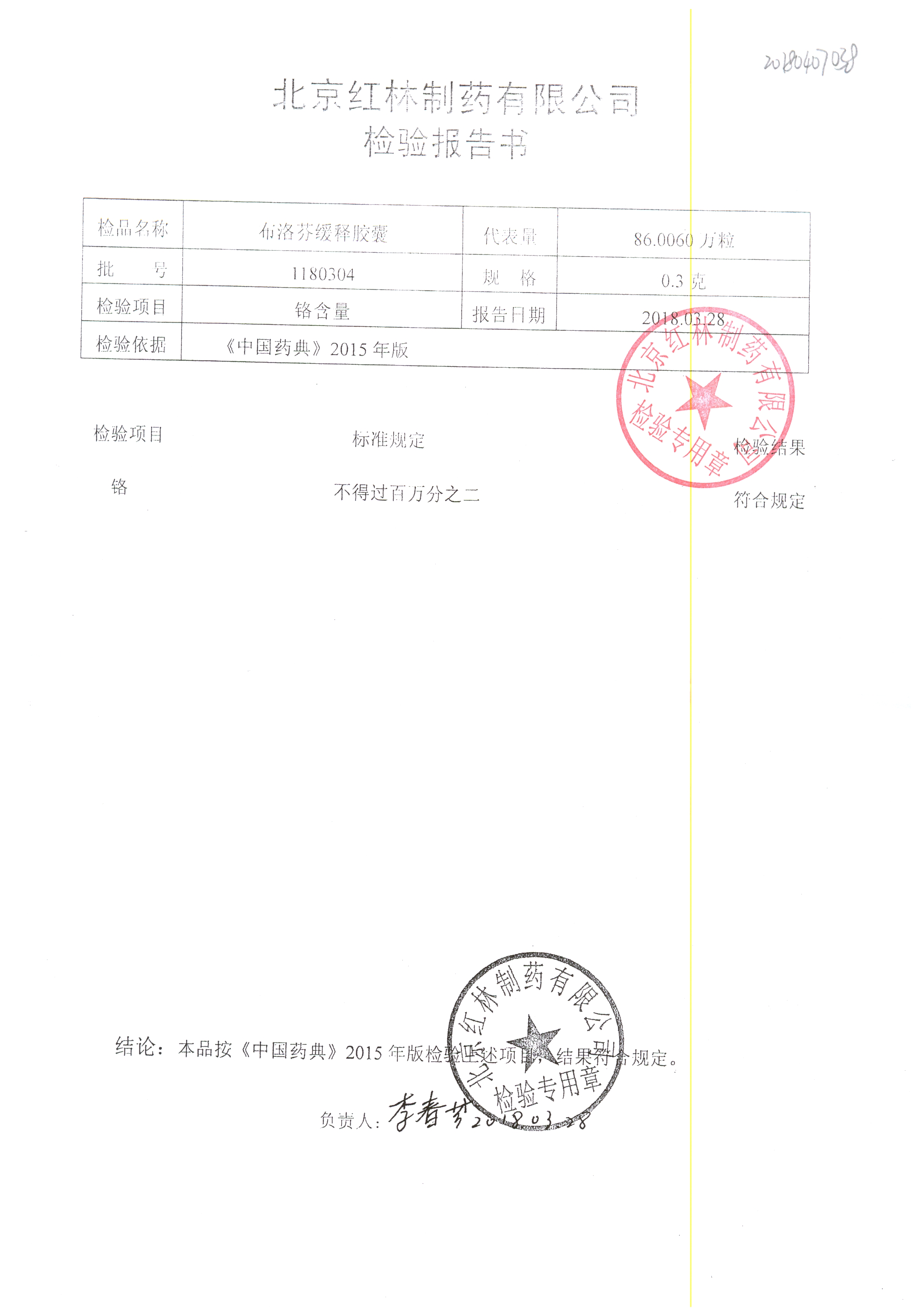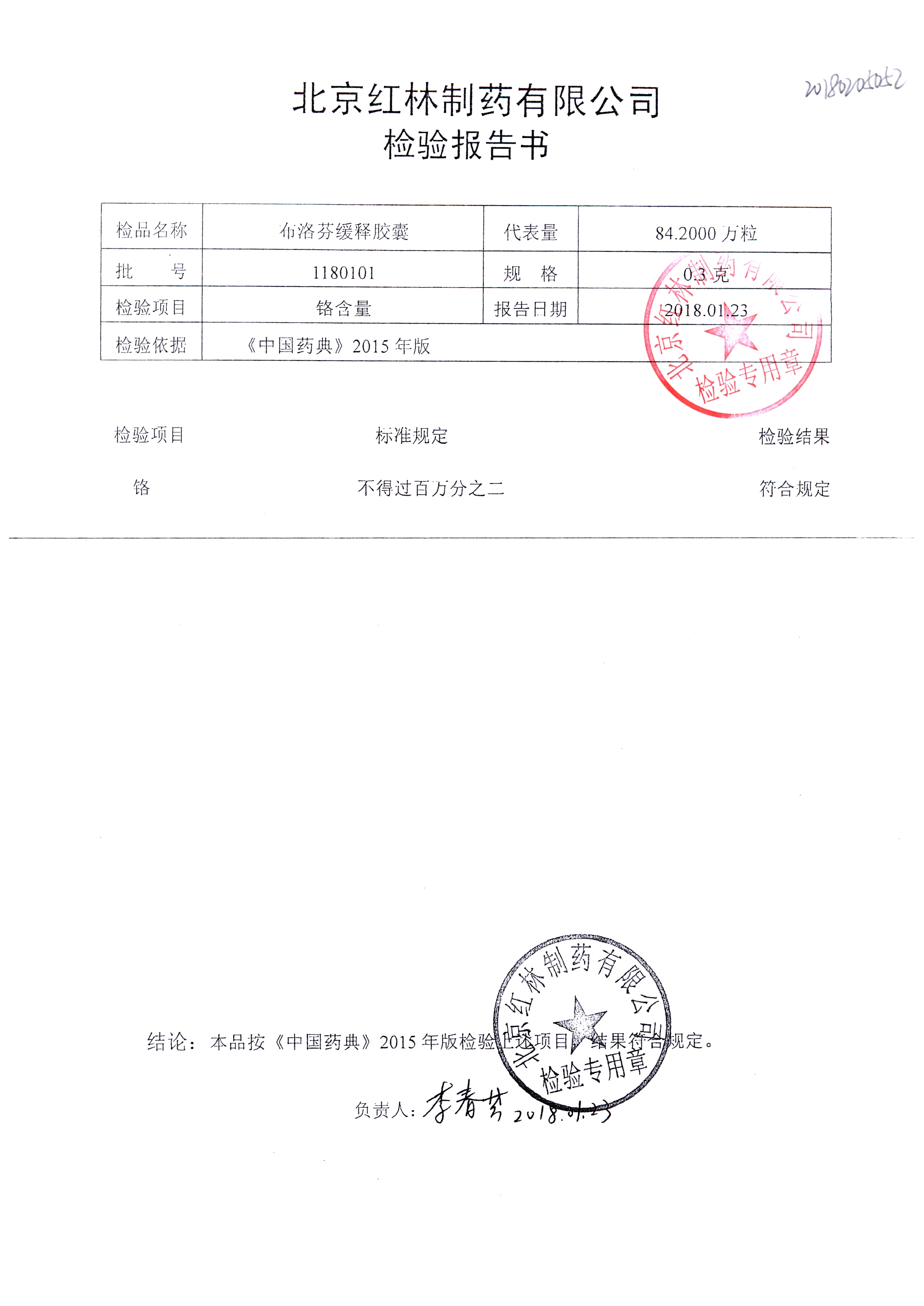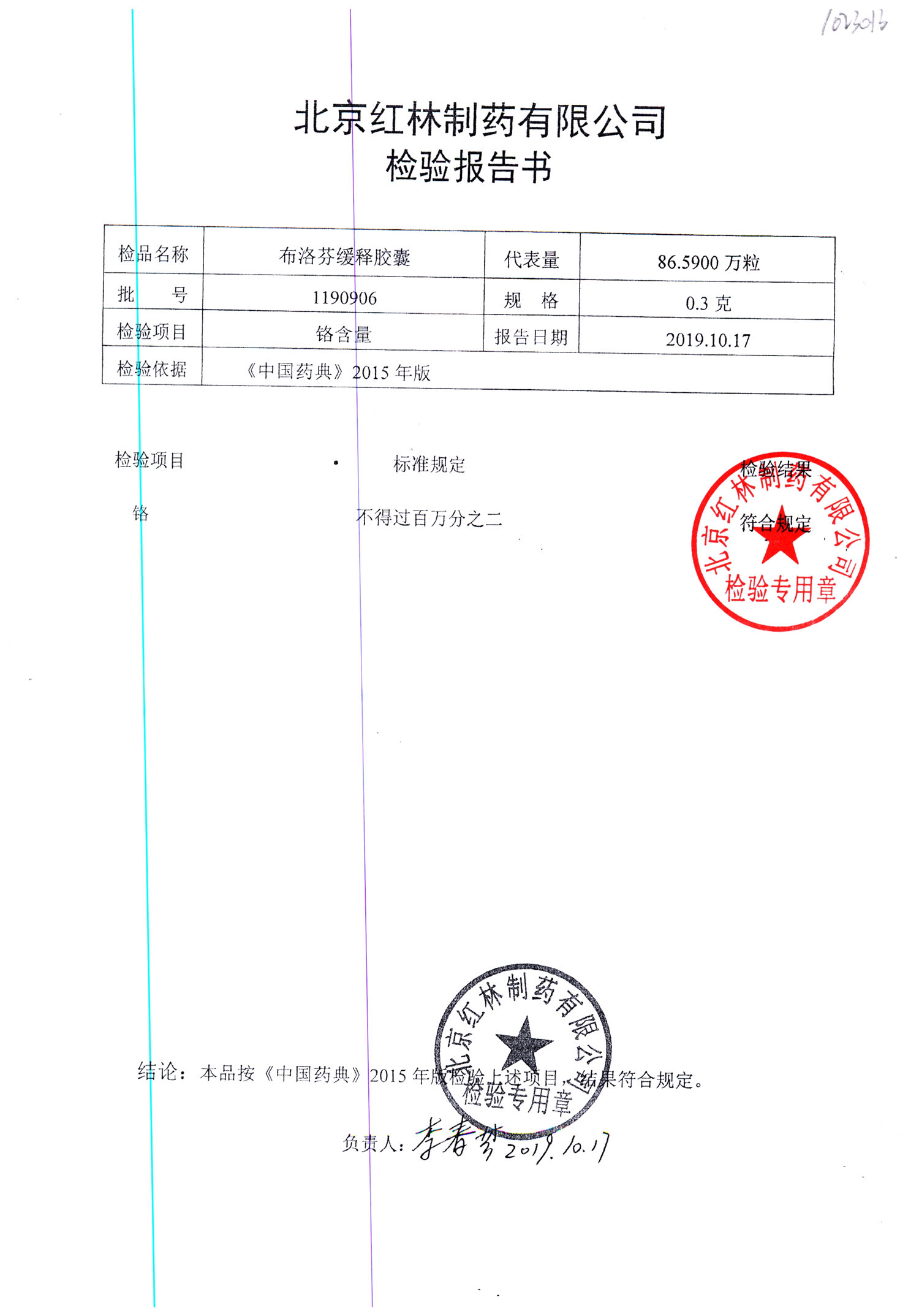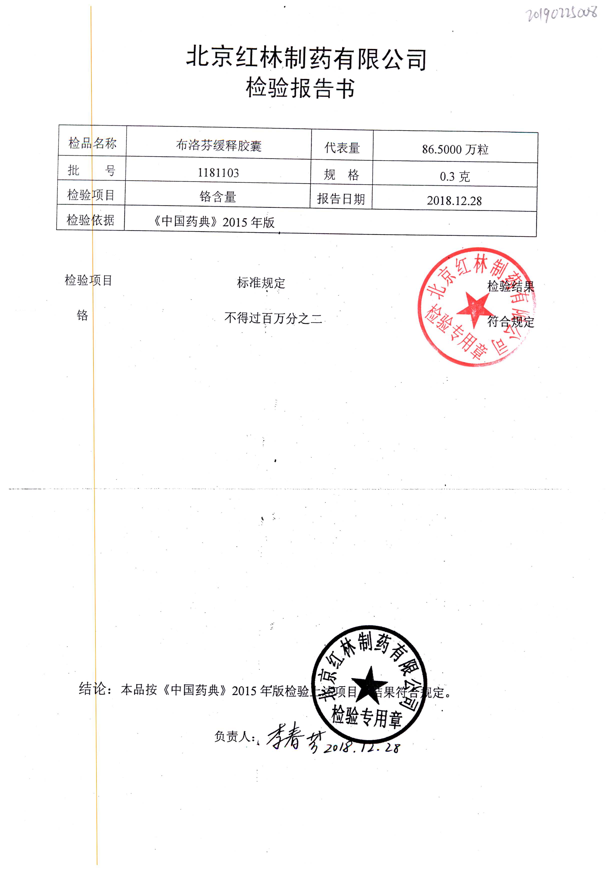 | 布洛芬緩釋膠囊 | 0.3g*20粒 | 1180603(2/2) | 查看詳情 |