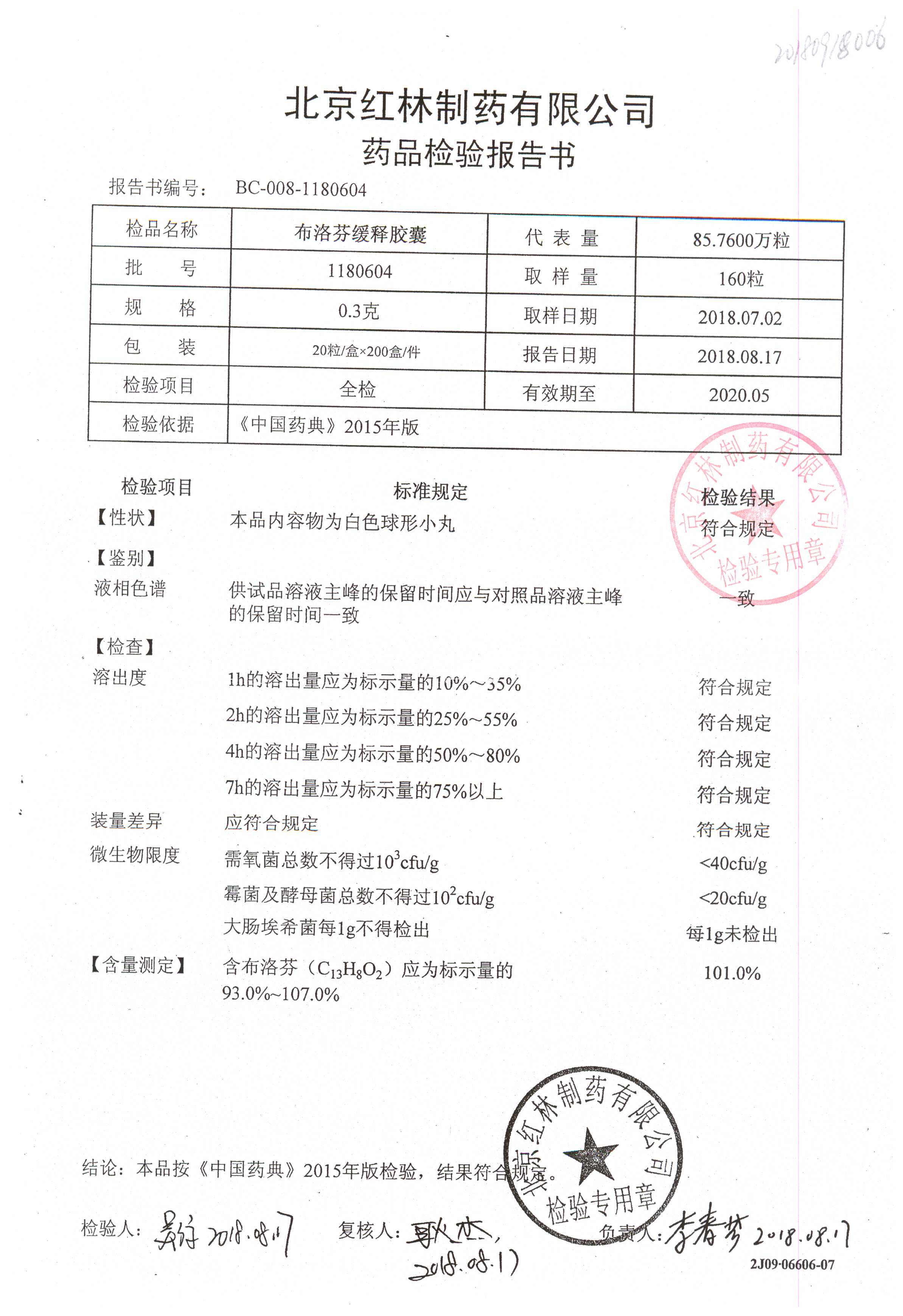 | 布洛芬緩釋膠囊 | 0.3g*20粒 | 1180604(2/2) | 查看詳情 |