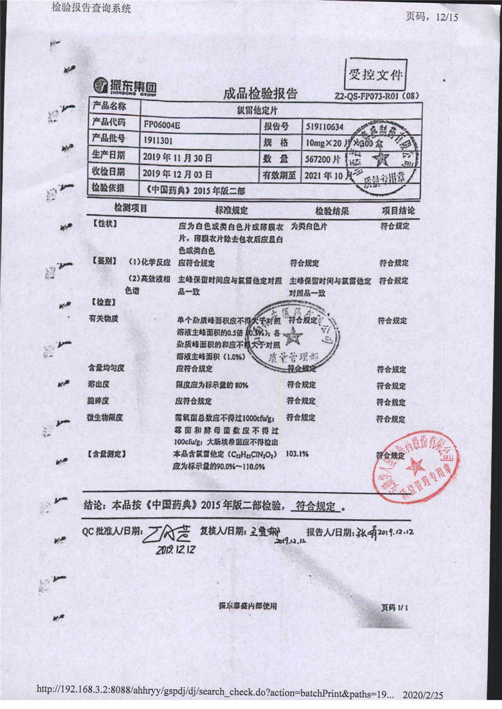 | 氯雷他定片 | 10mg*20s | 1809111(2/2) | 查看詳情 |