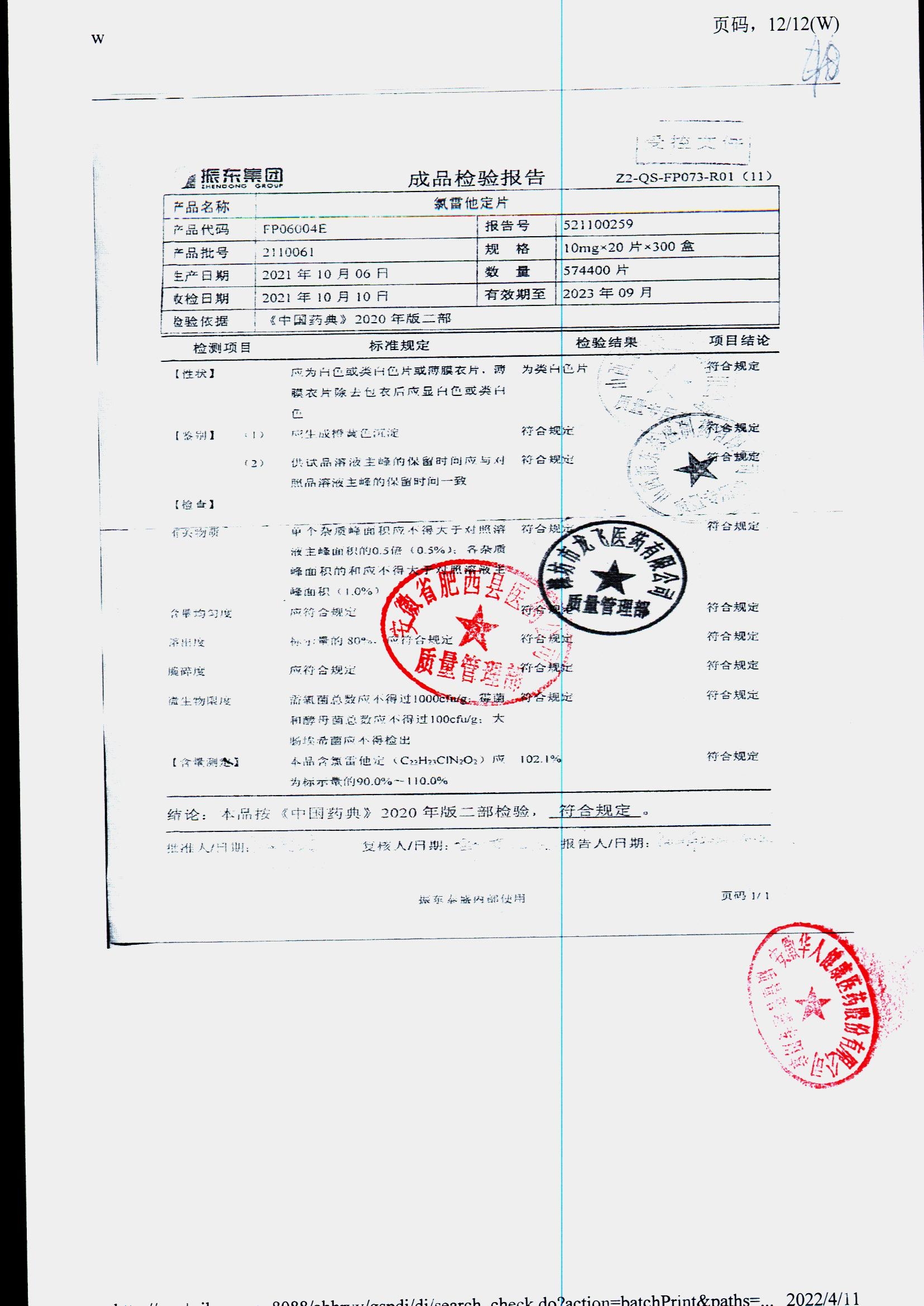 | 氯雷他定片 | 10mg*20s | 2107101 | 查看詳情 |