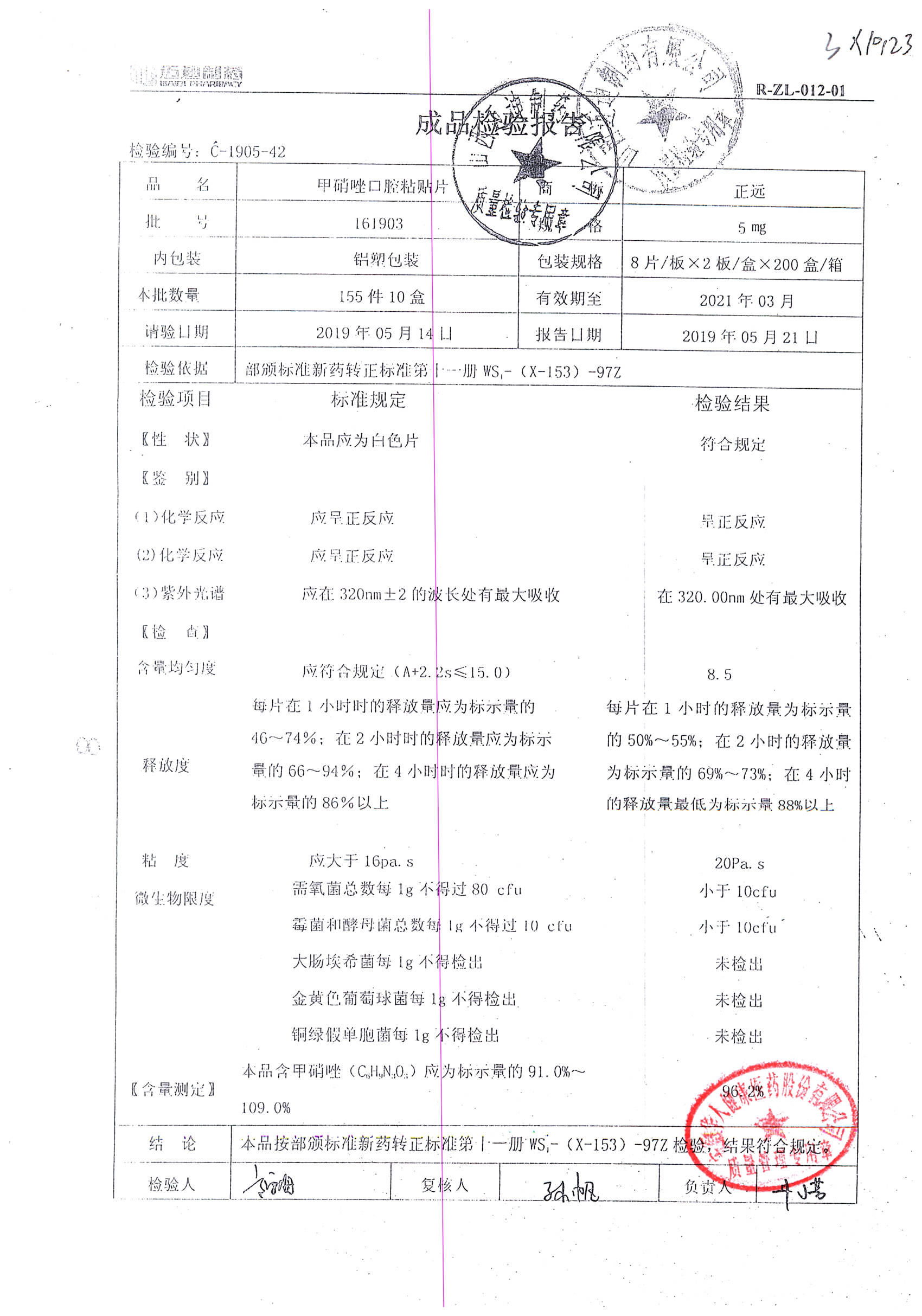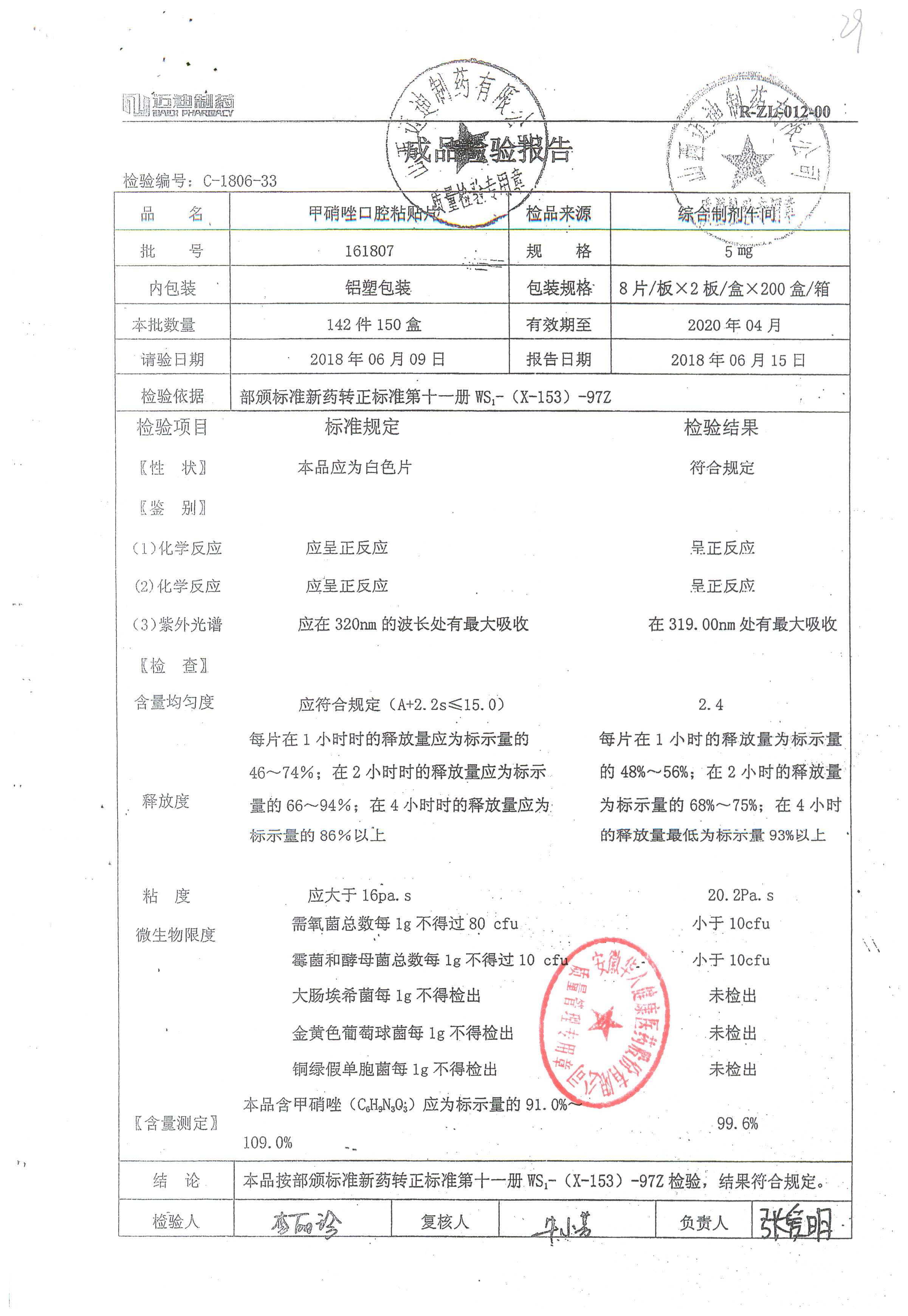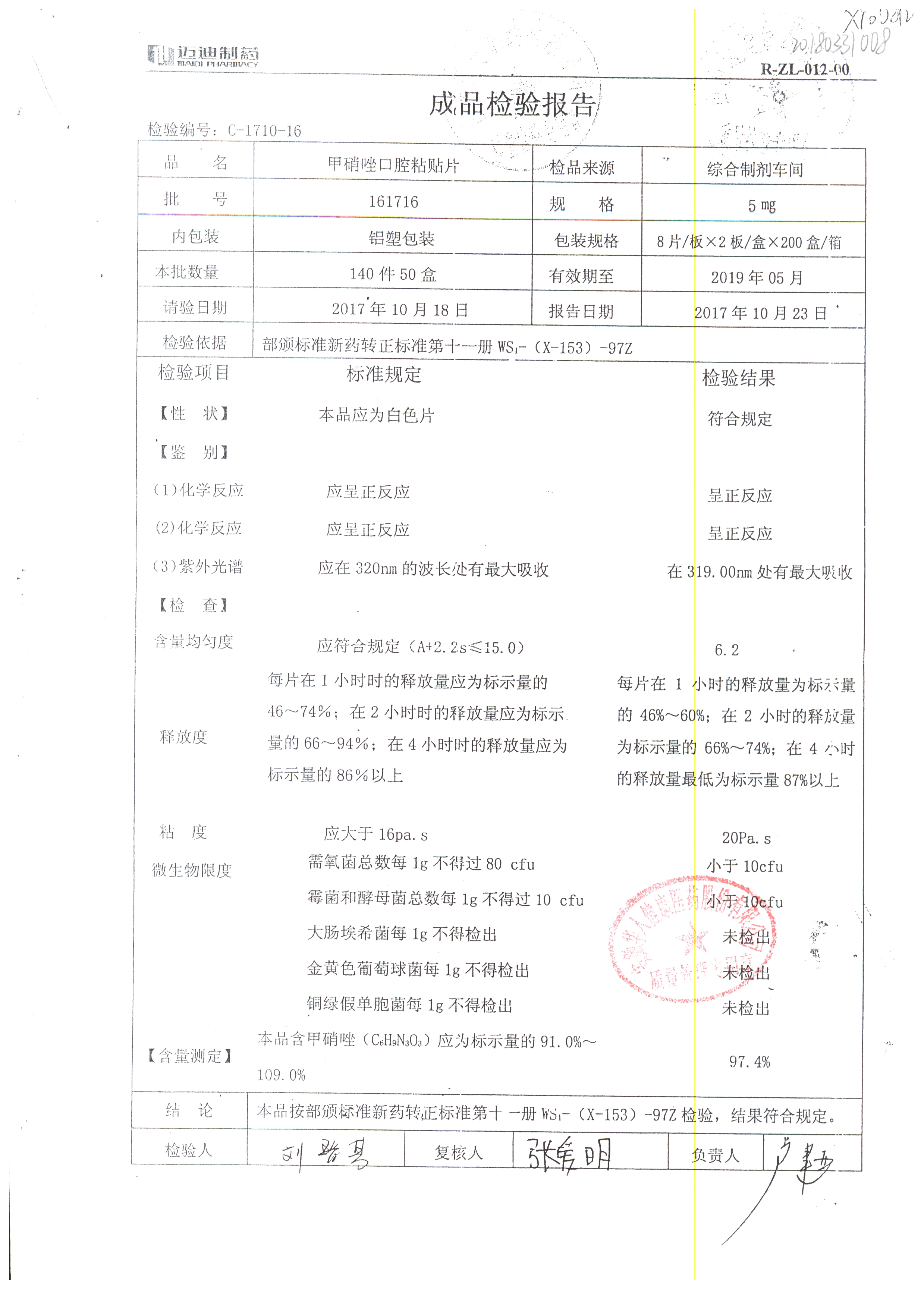 | 甲硝唑口腔粘貼片 | 5mg*16片 | 161903 | 查看詳情 |