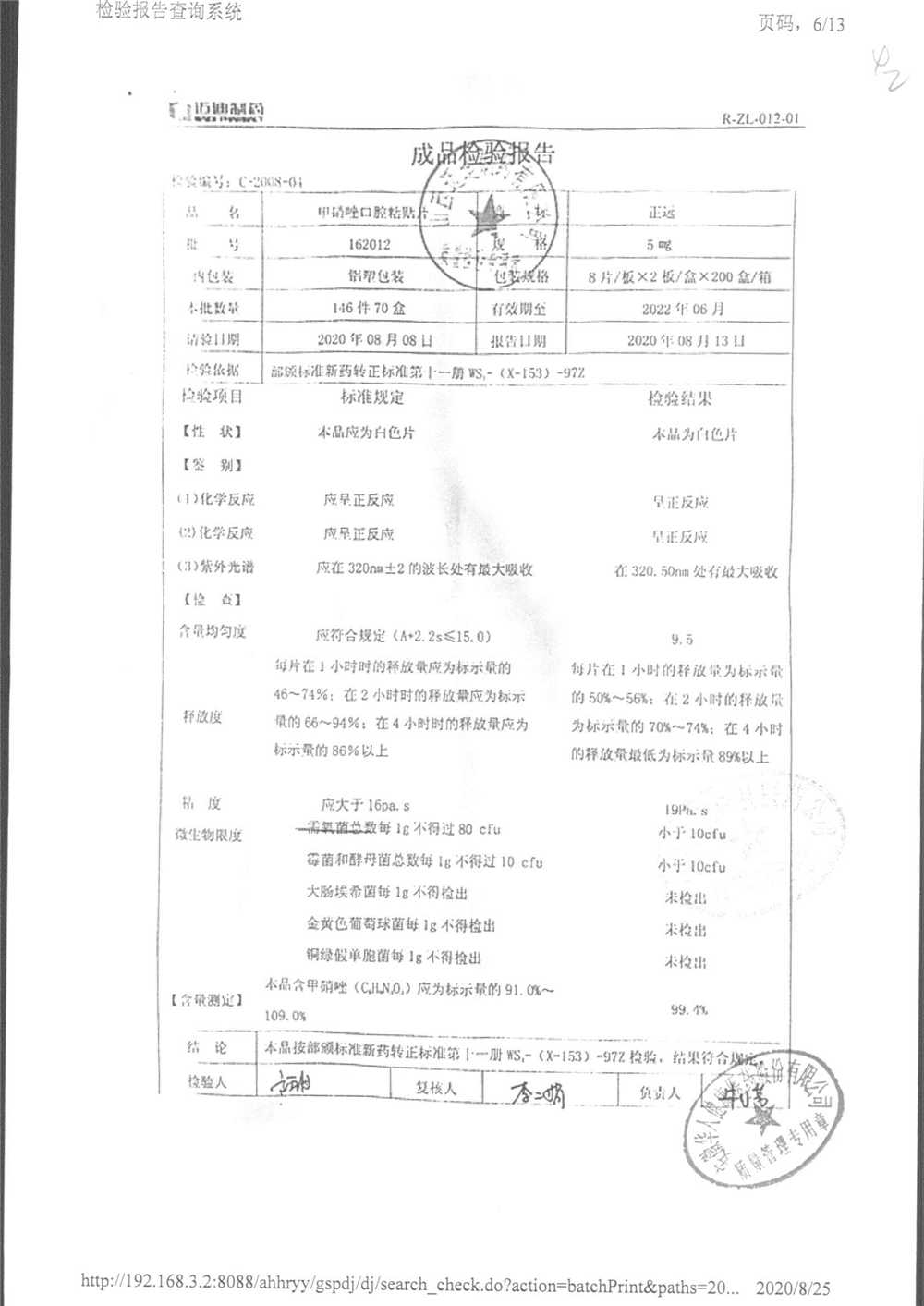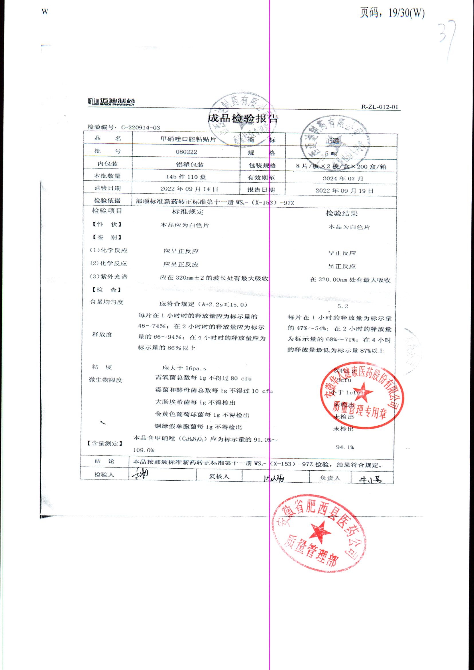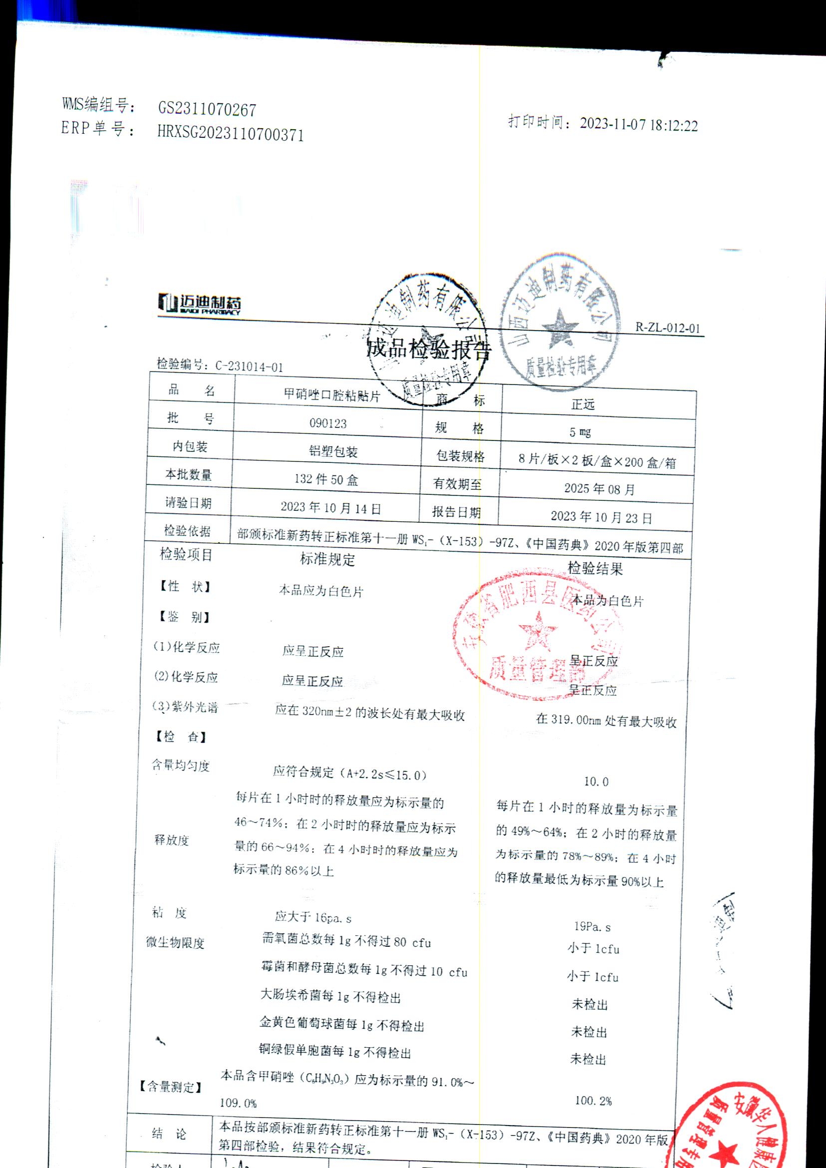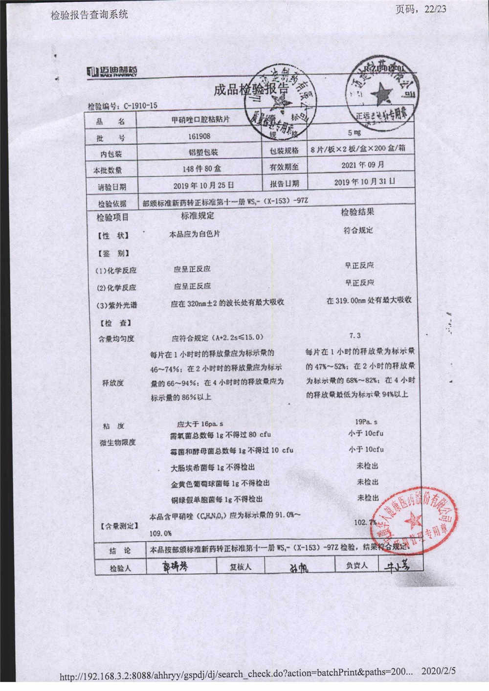 | 甲硝唑口腔粘貼片 | 5mg*16片 | 161903 | 查看詳情 |