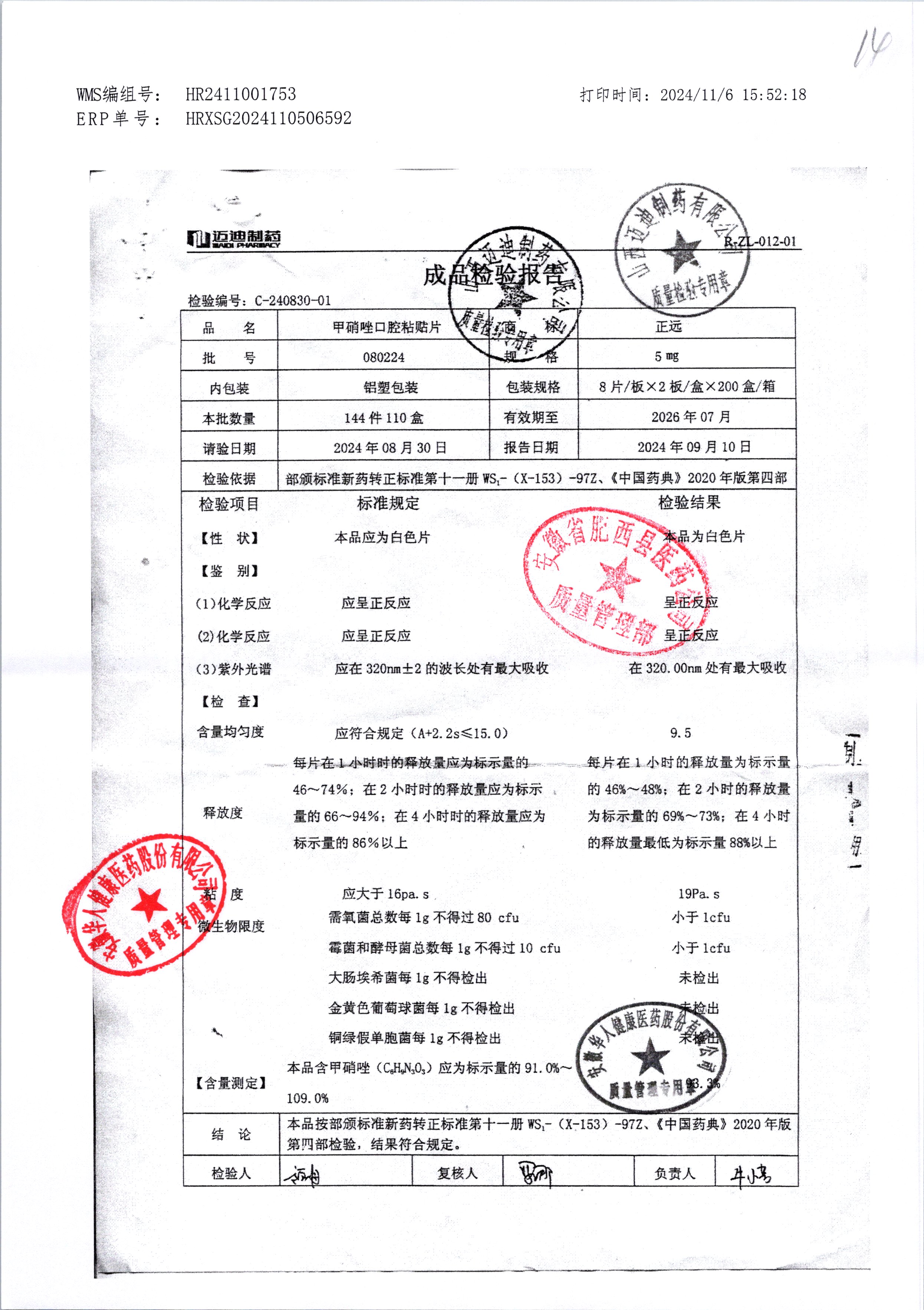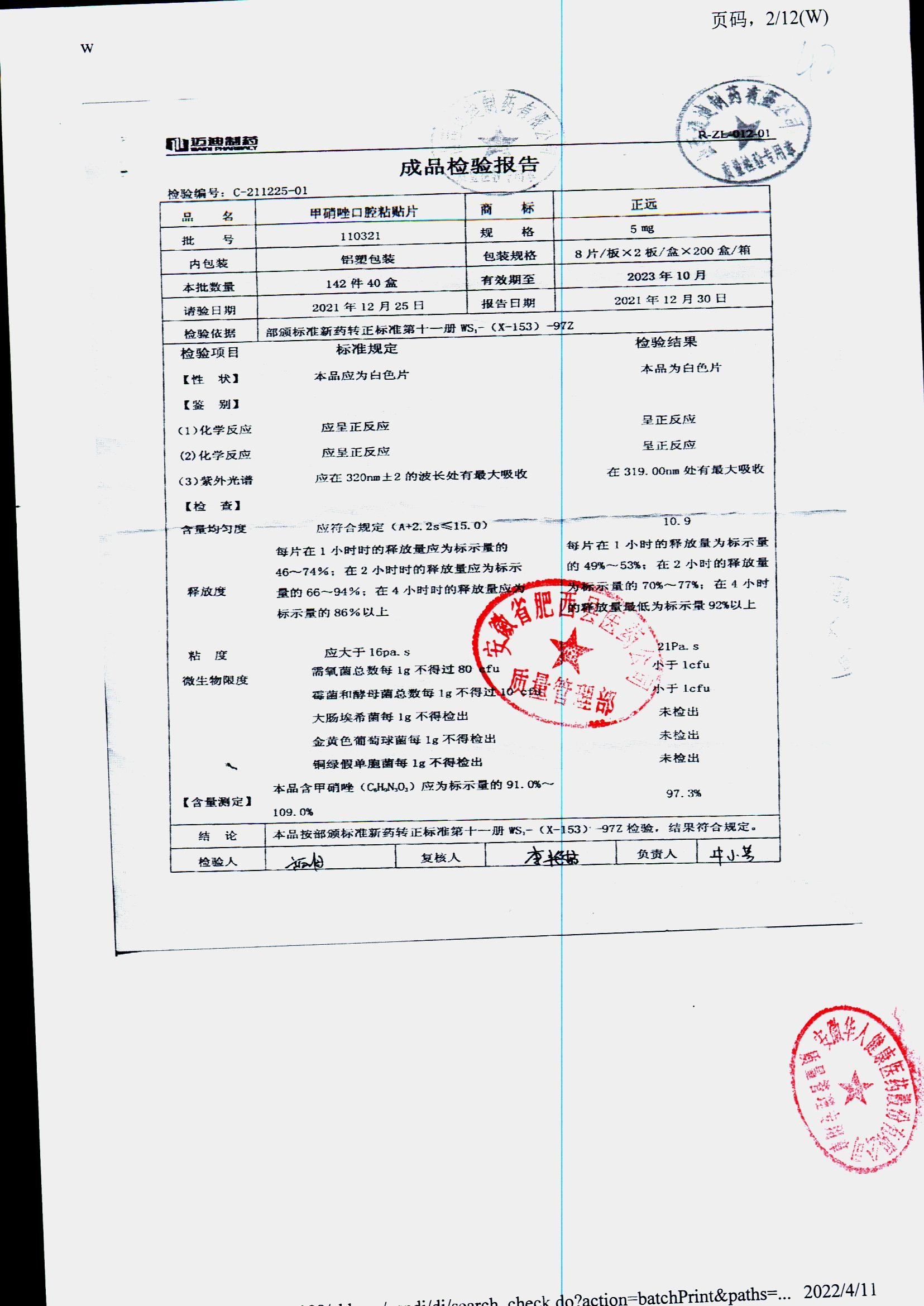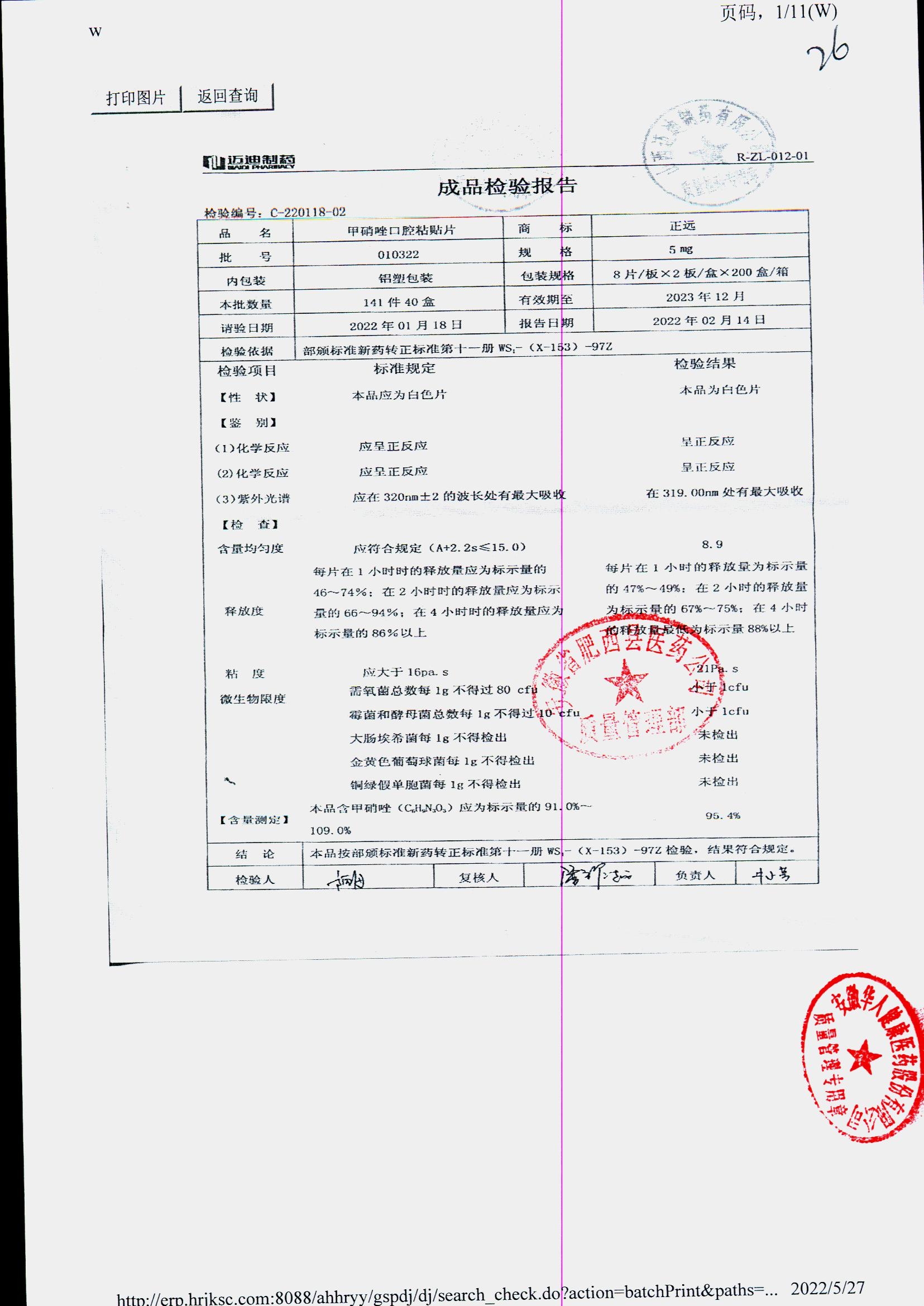 | 名稱 | 規(guī)格 | 批號 | 藥檢報告 |