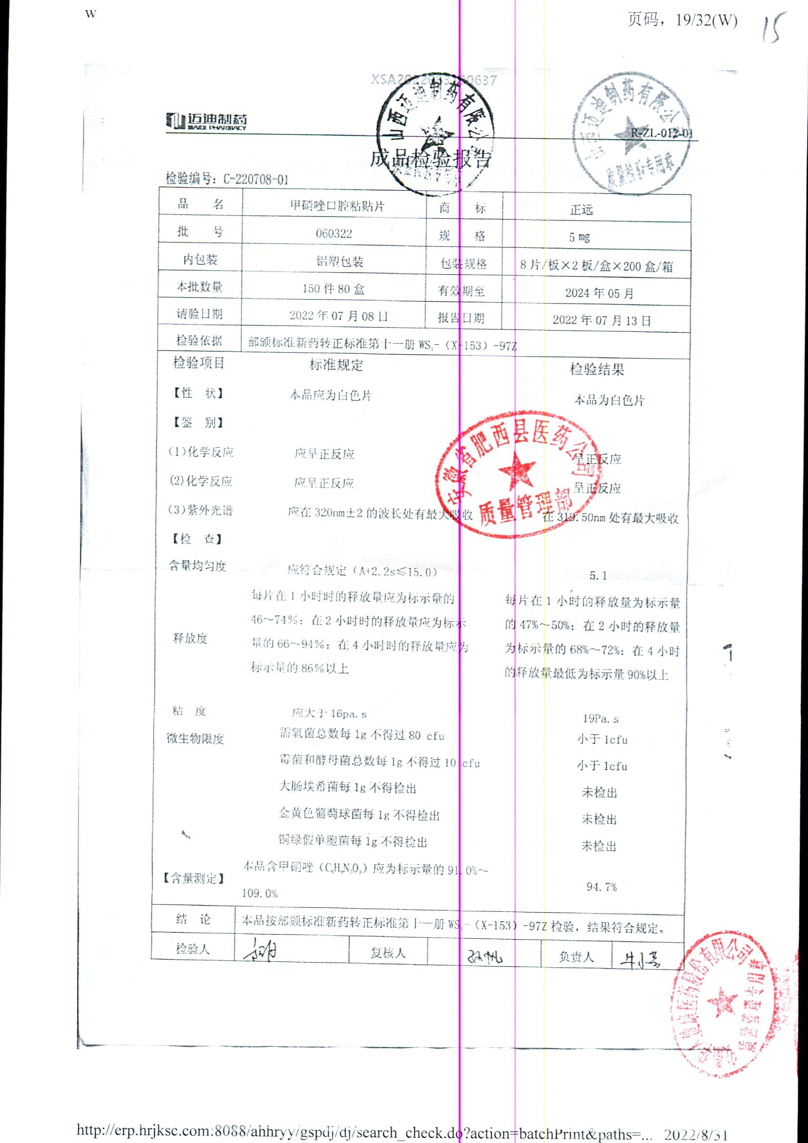 | 甲硝唑口腔粘貼片 | 5mg*16片 | 080222 | 查看詳情 |