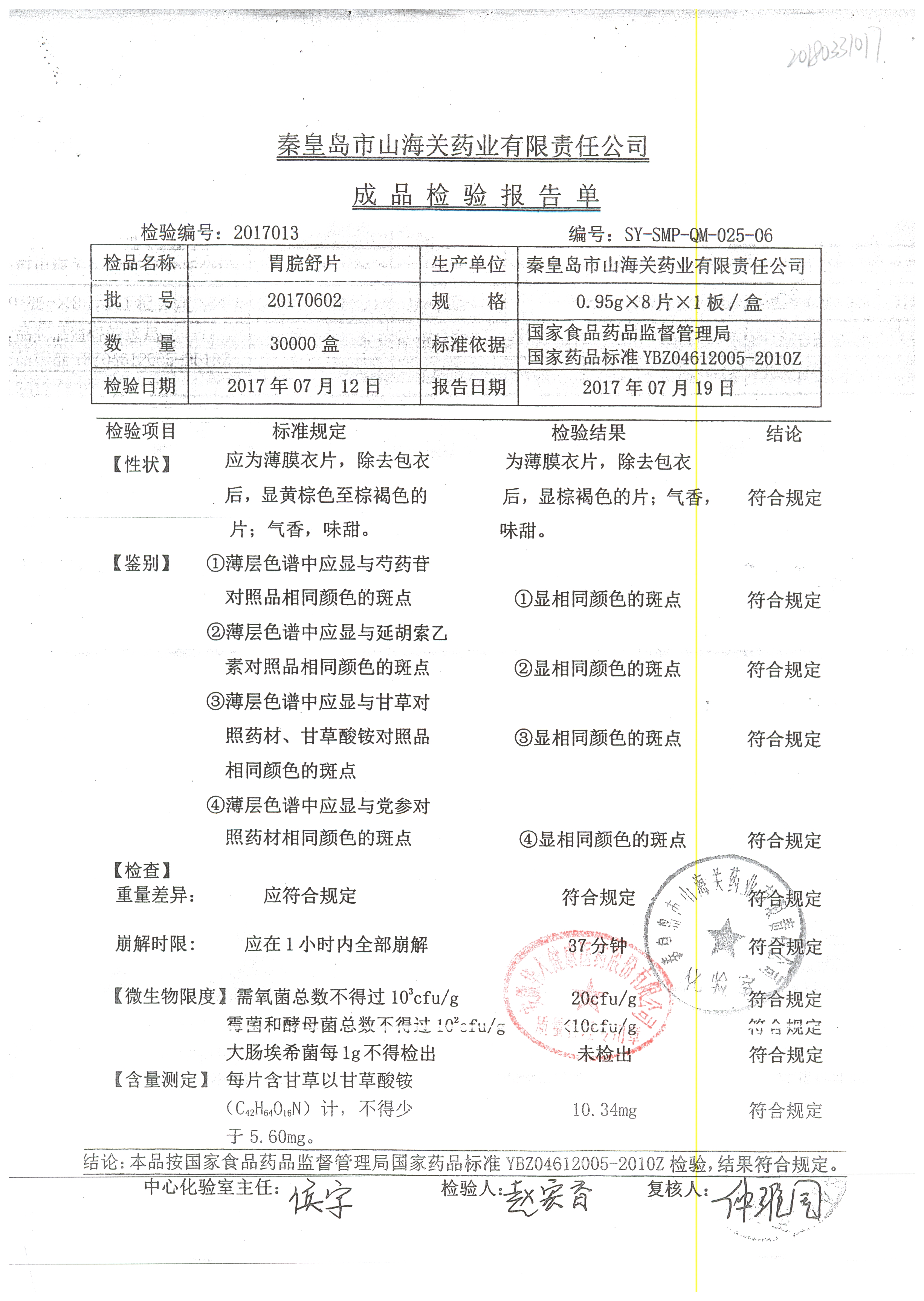 胃脘舒片 0.95g*8s 20170602 查看詳情